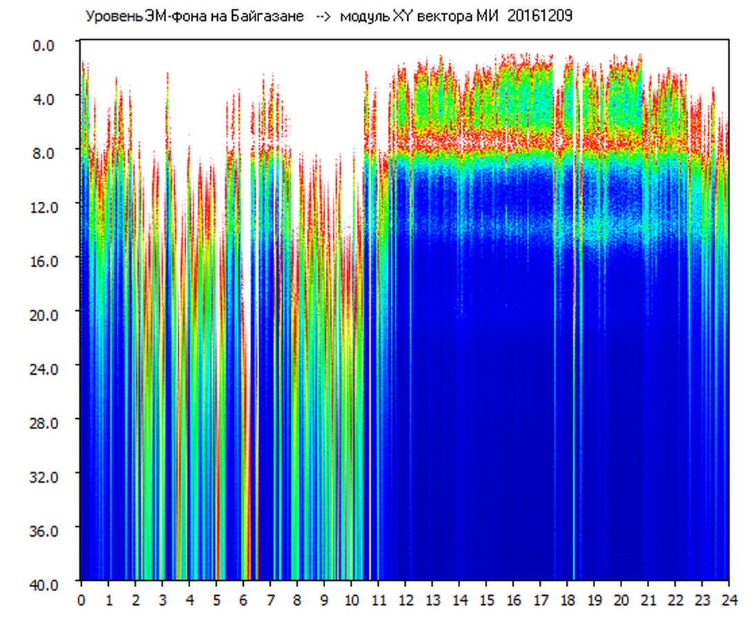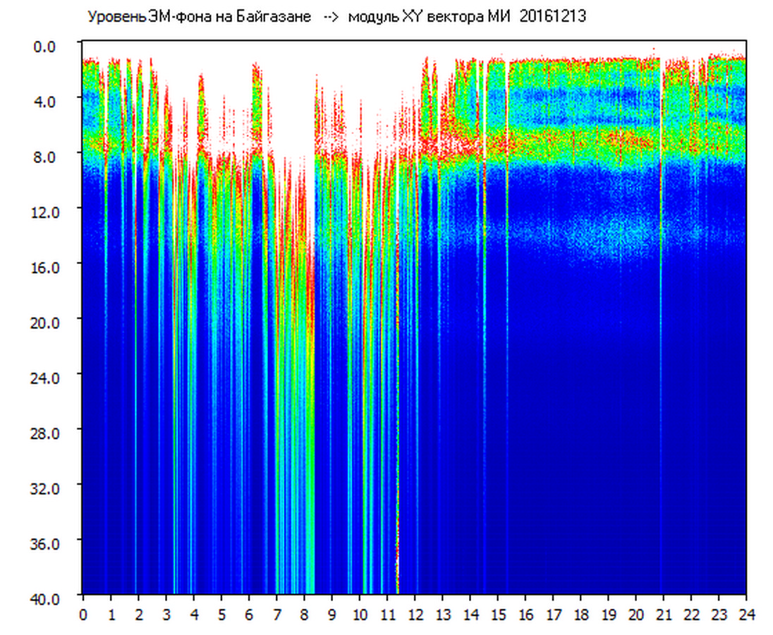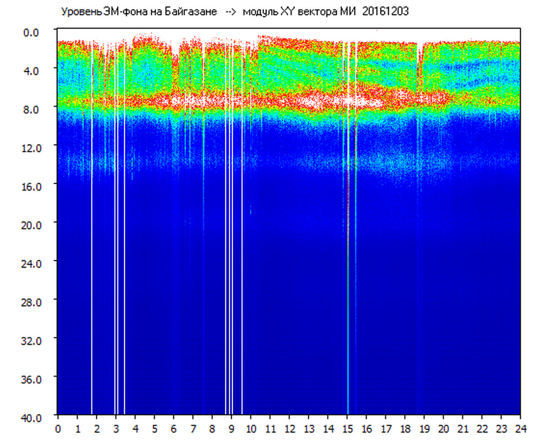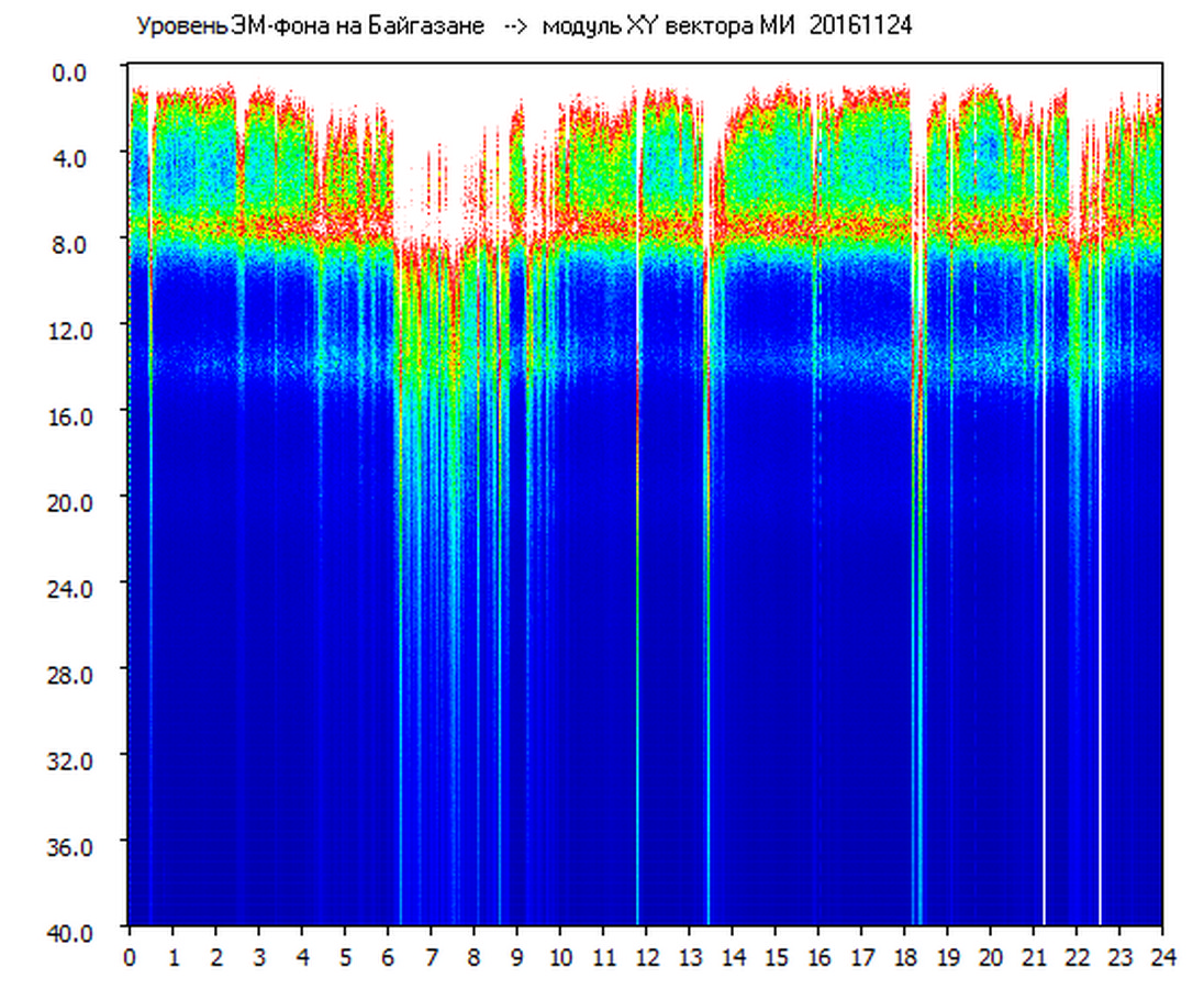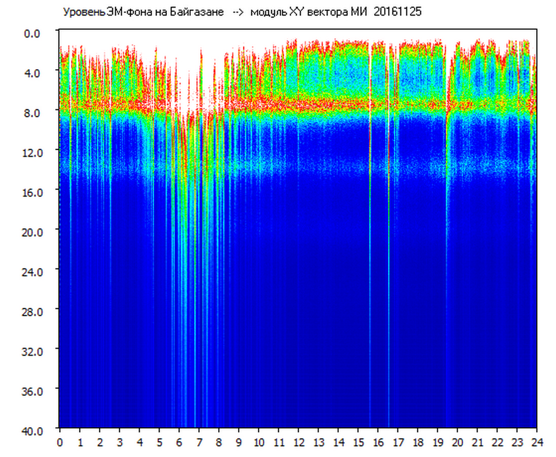 Динамические спектры электромагнитного фона в полосе частот 0 – 40 Гц (Шумановские резонансы)