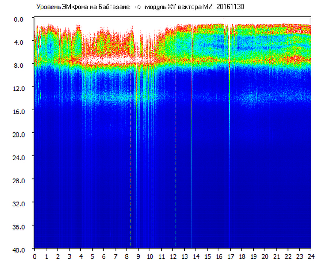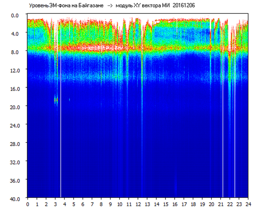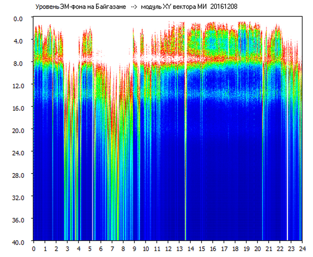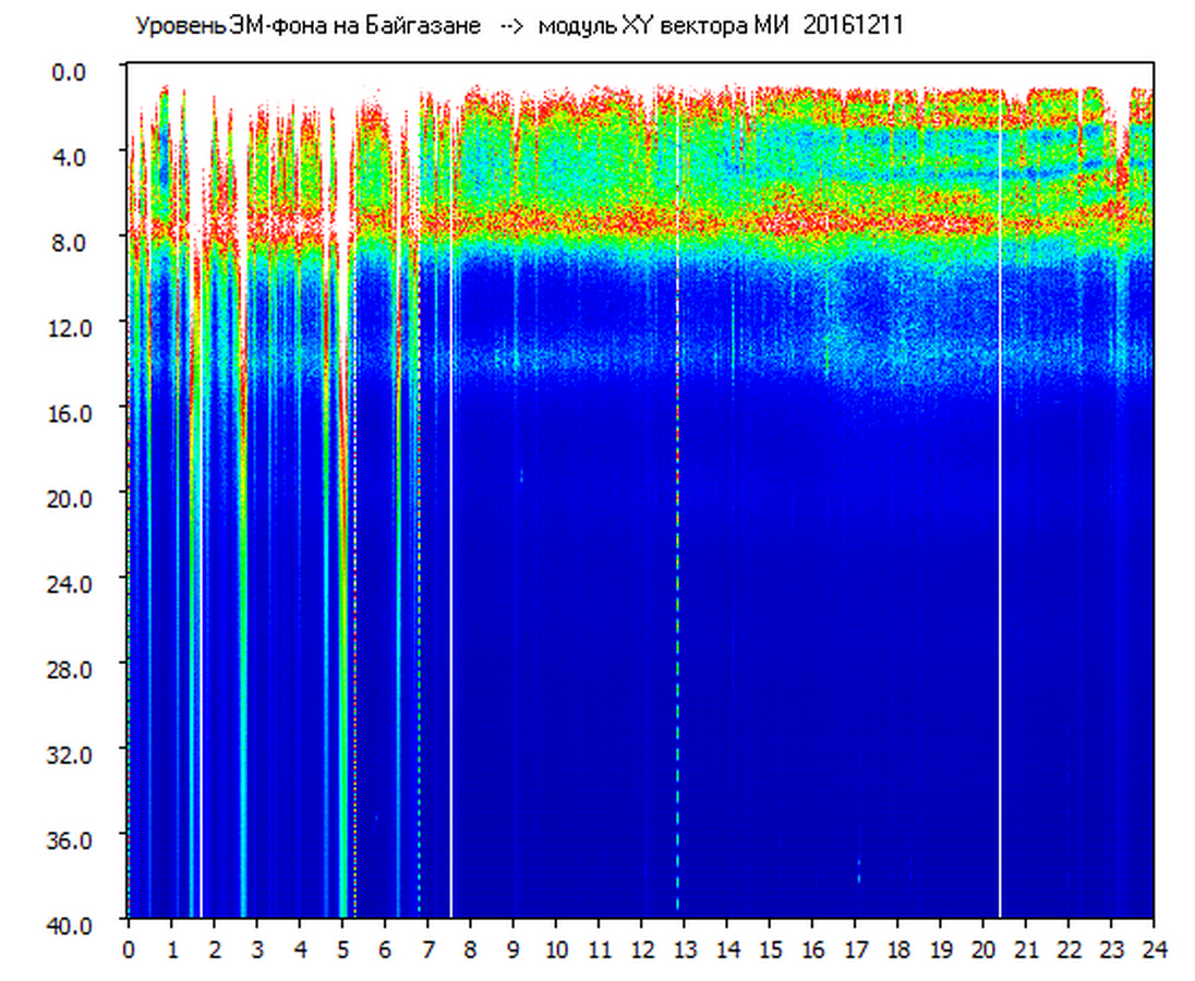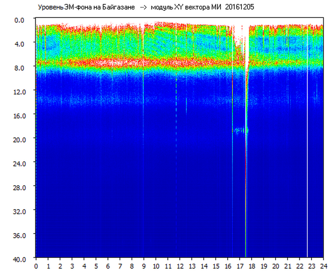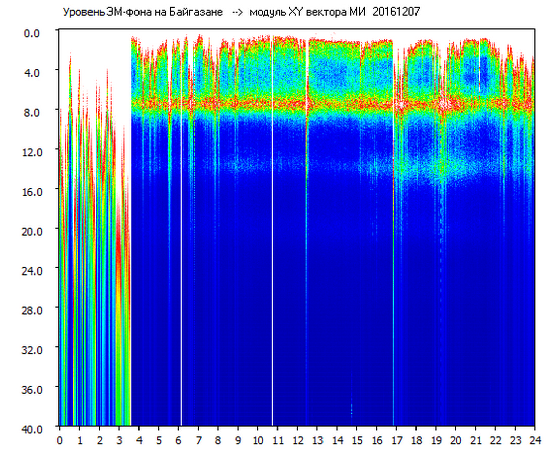 Динамические спектры электромагнитного фона в полосе частот 0 – 40 Гц (Шумановские резонансы)