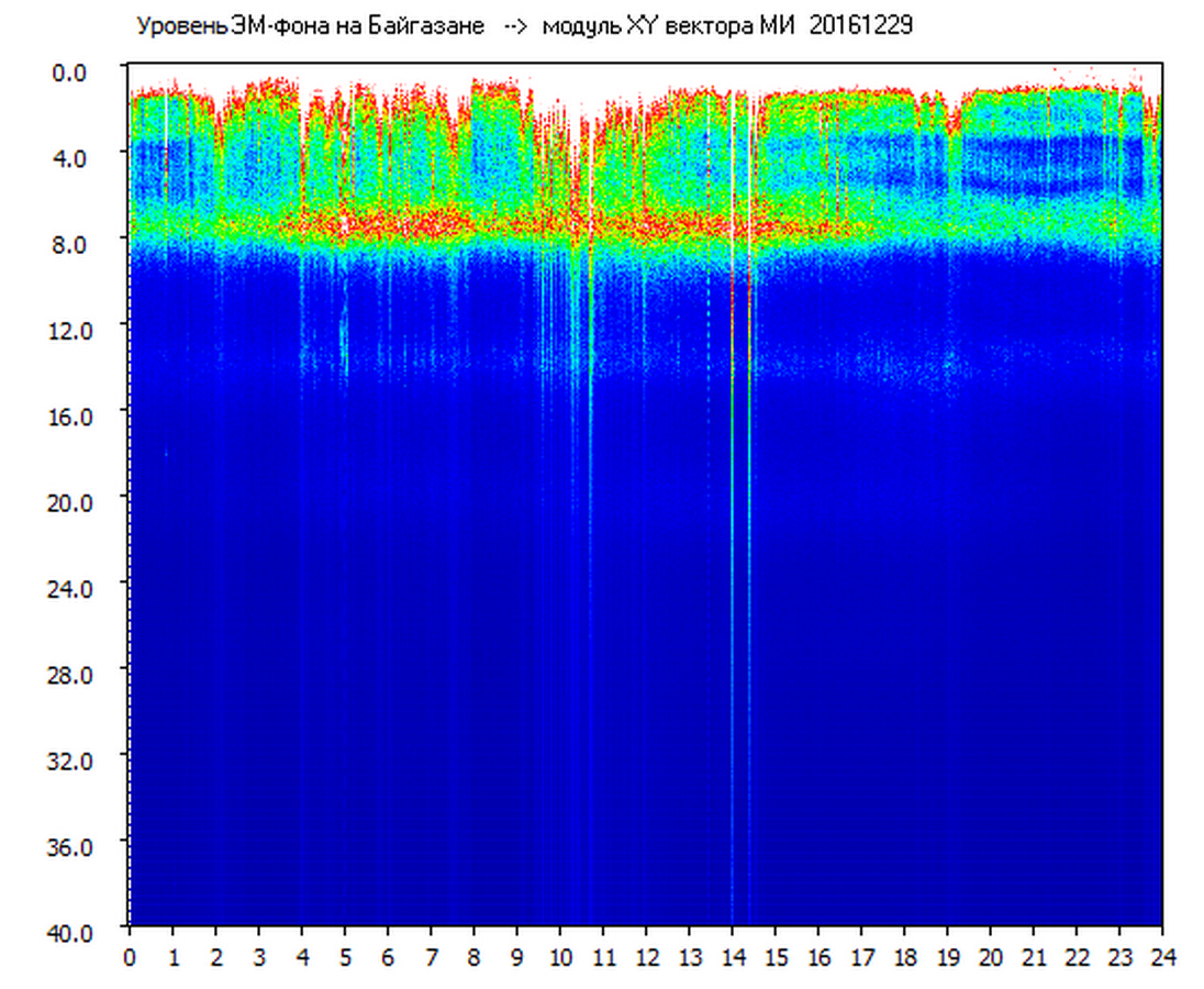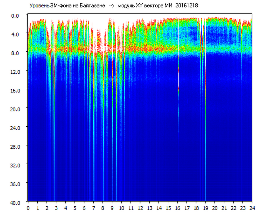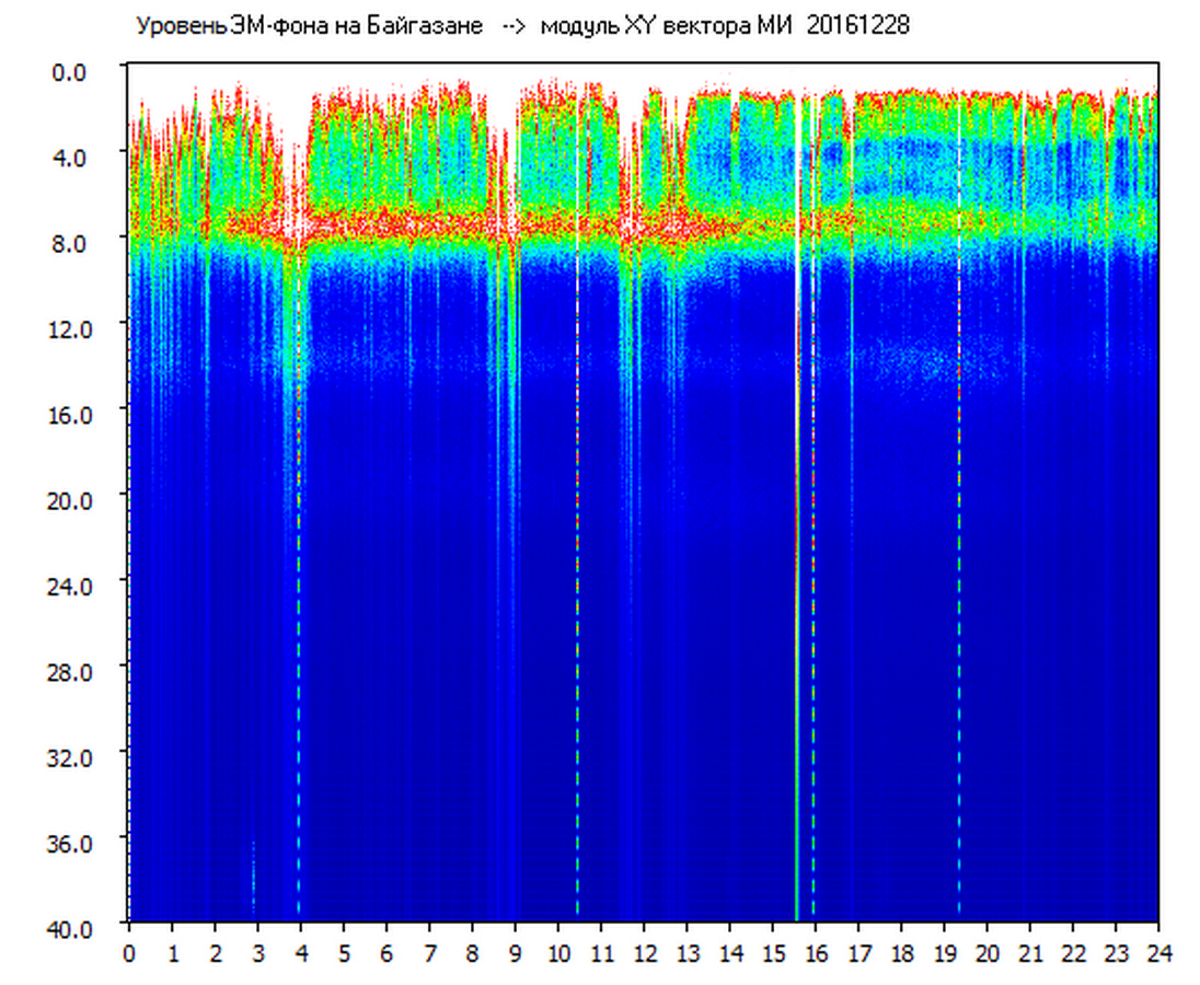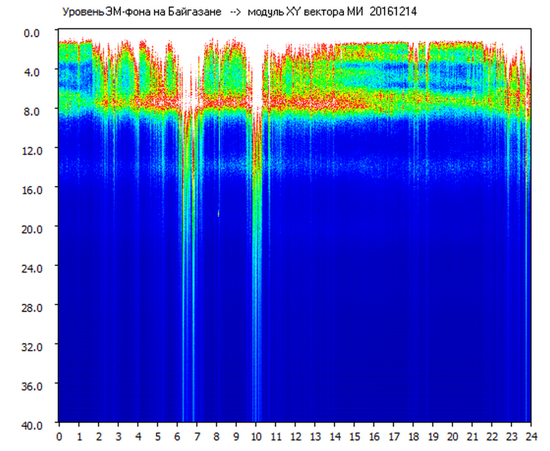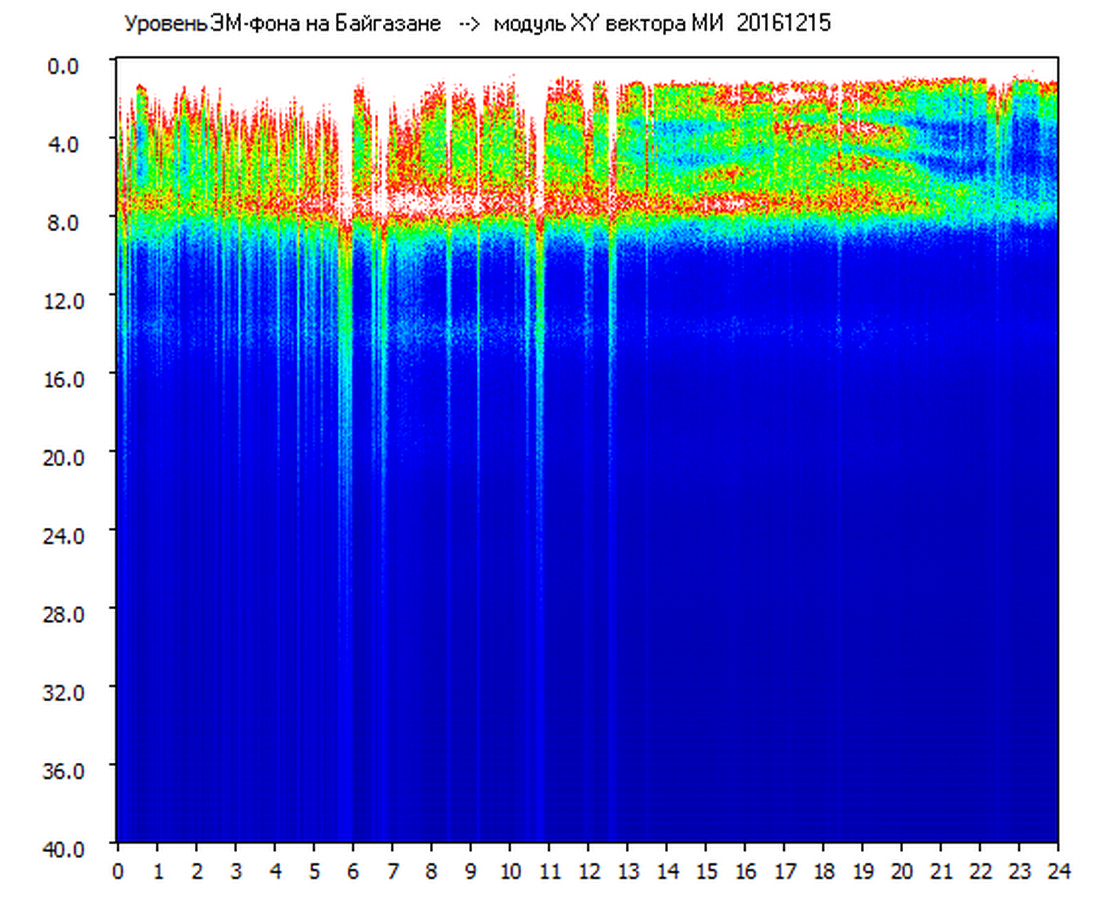 Динамические спектры электромагнитного фона в полосе частот 0 – 40 Гц (Шумановские резонансы)