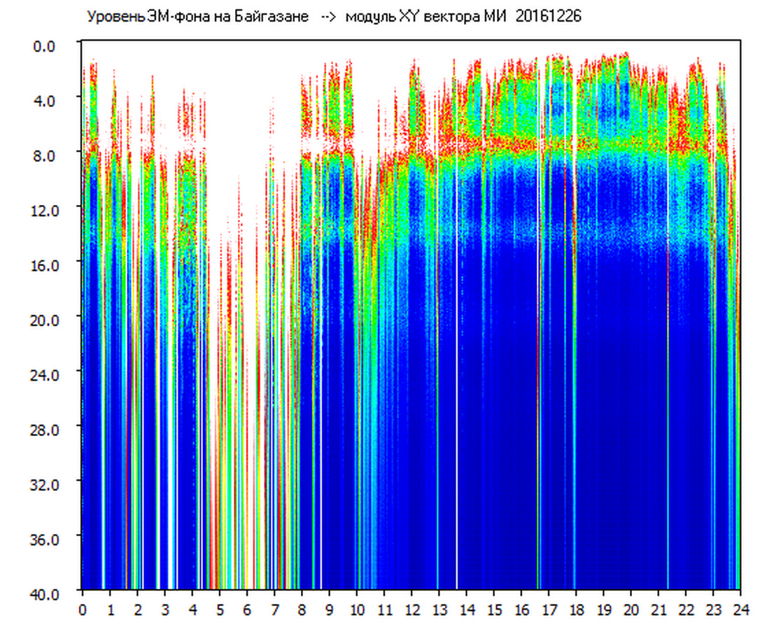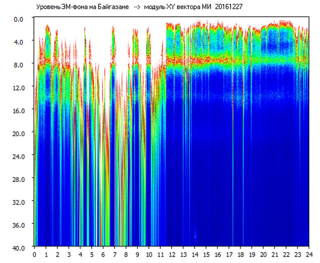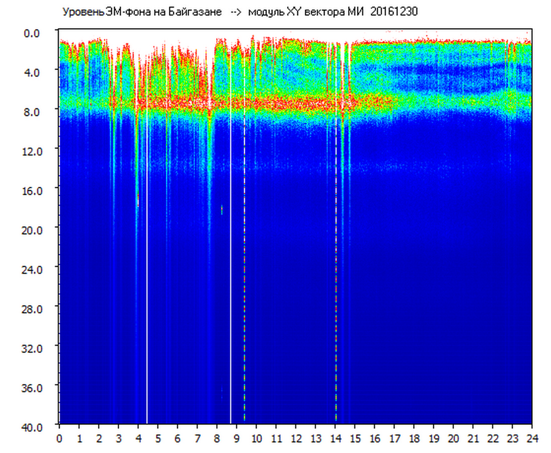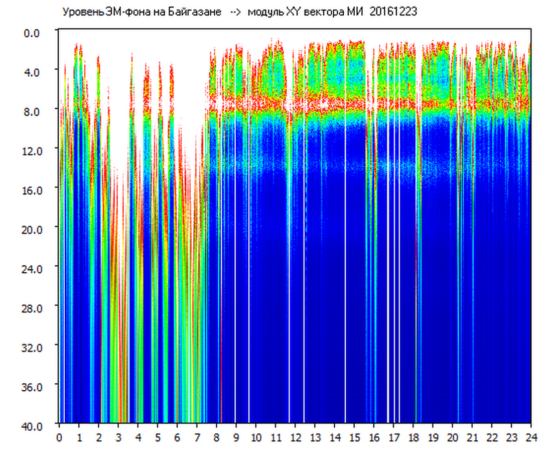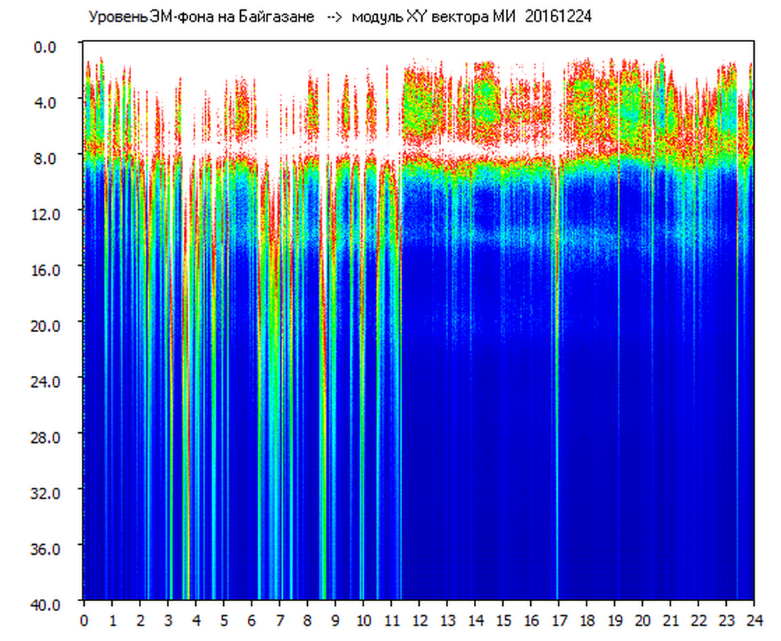 Динамические спектры электромагнитного фона в полосе частот 0 – 40 Гц (Шумановские резонансы)