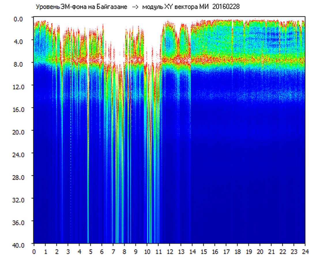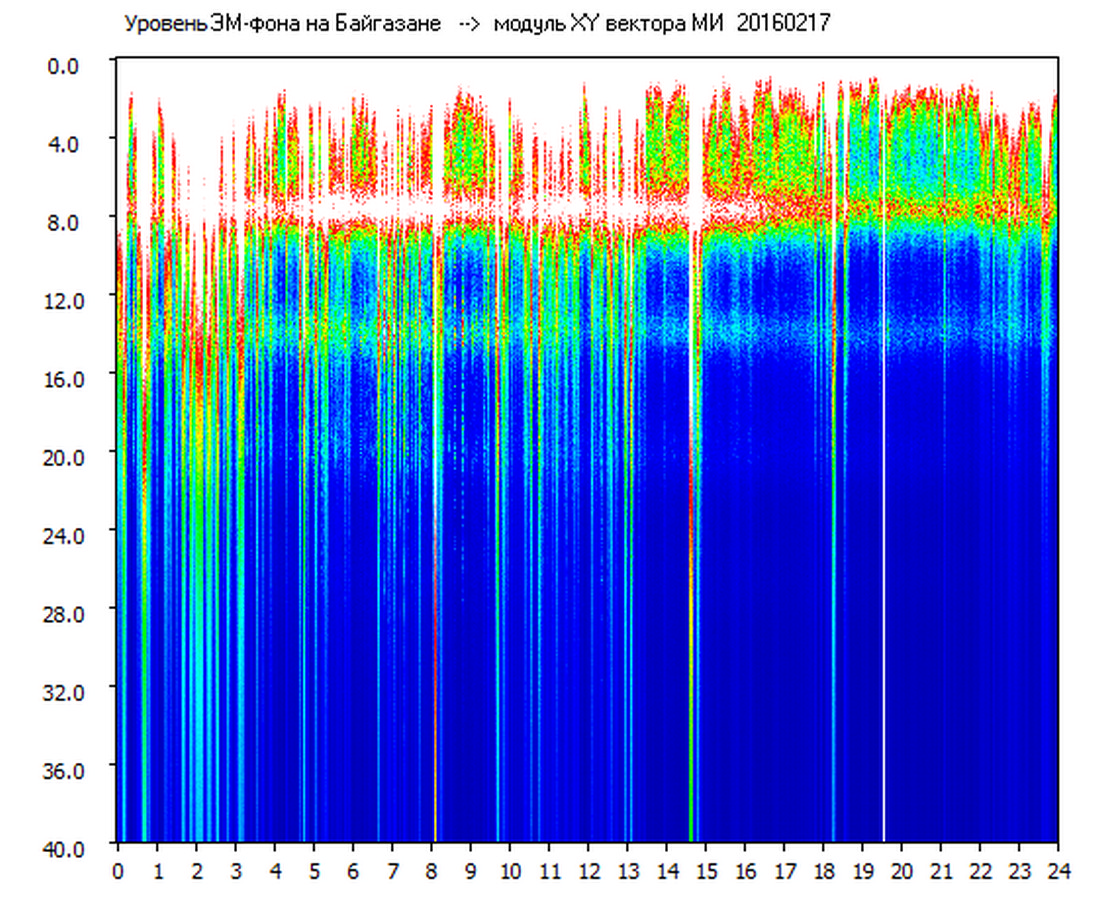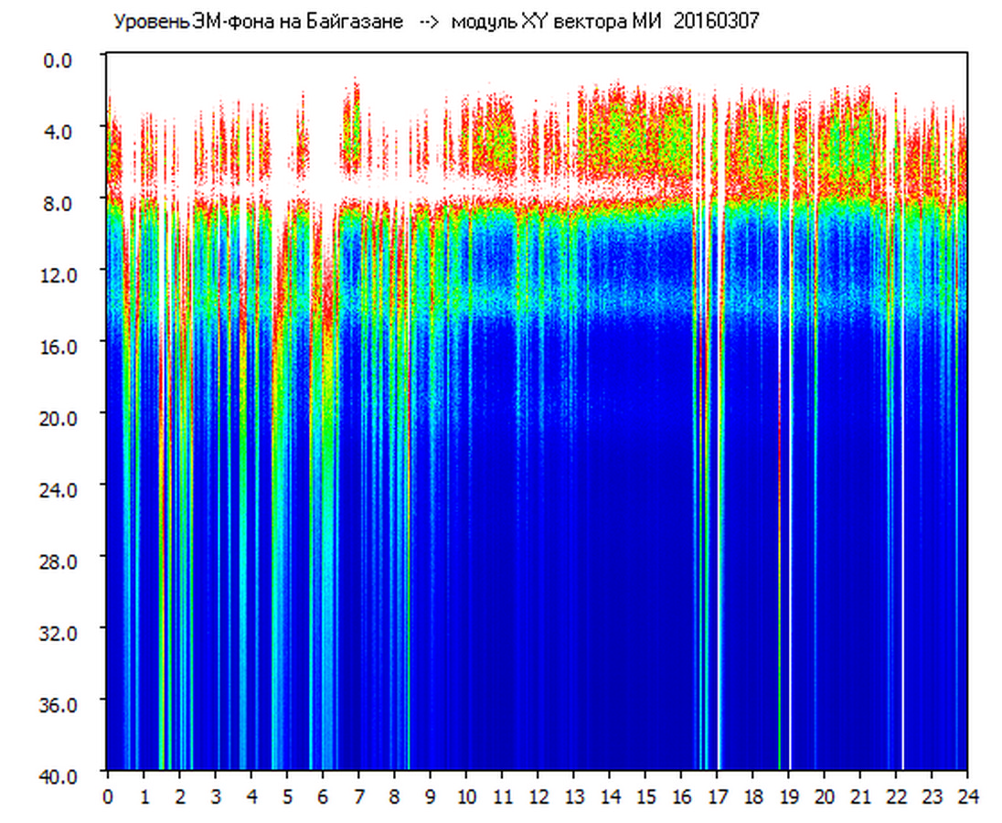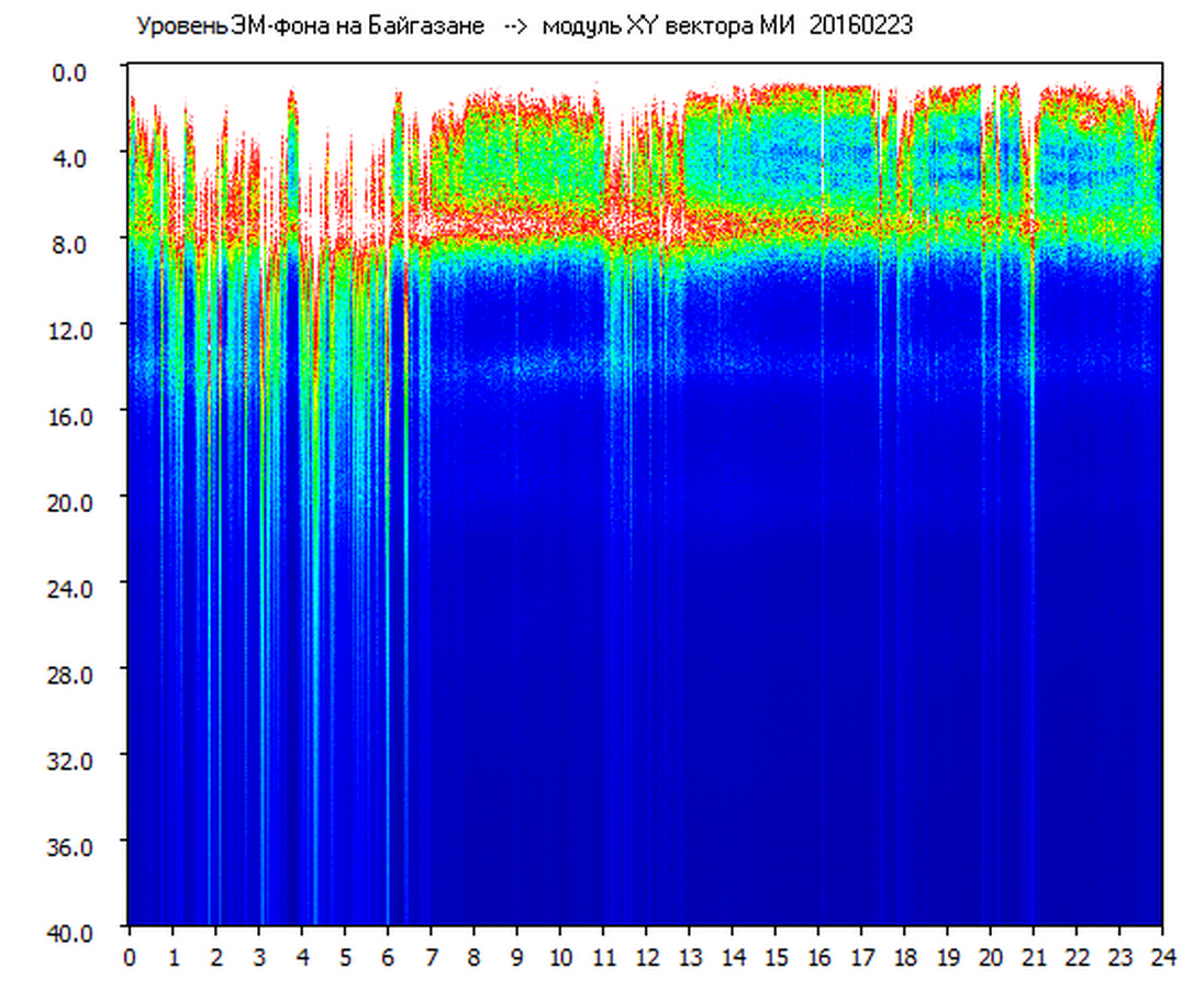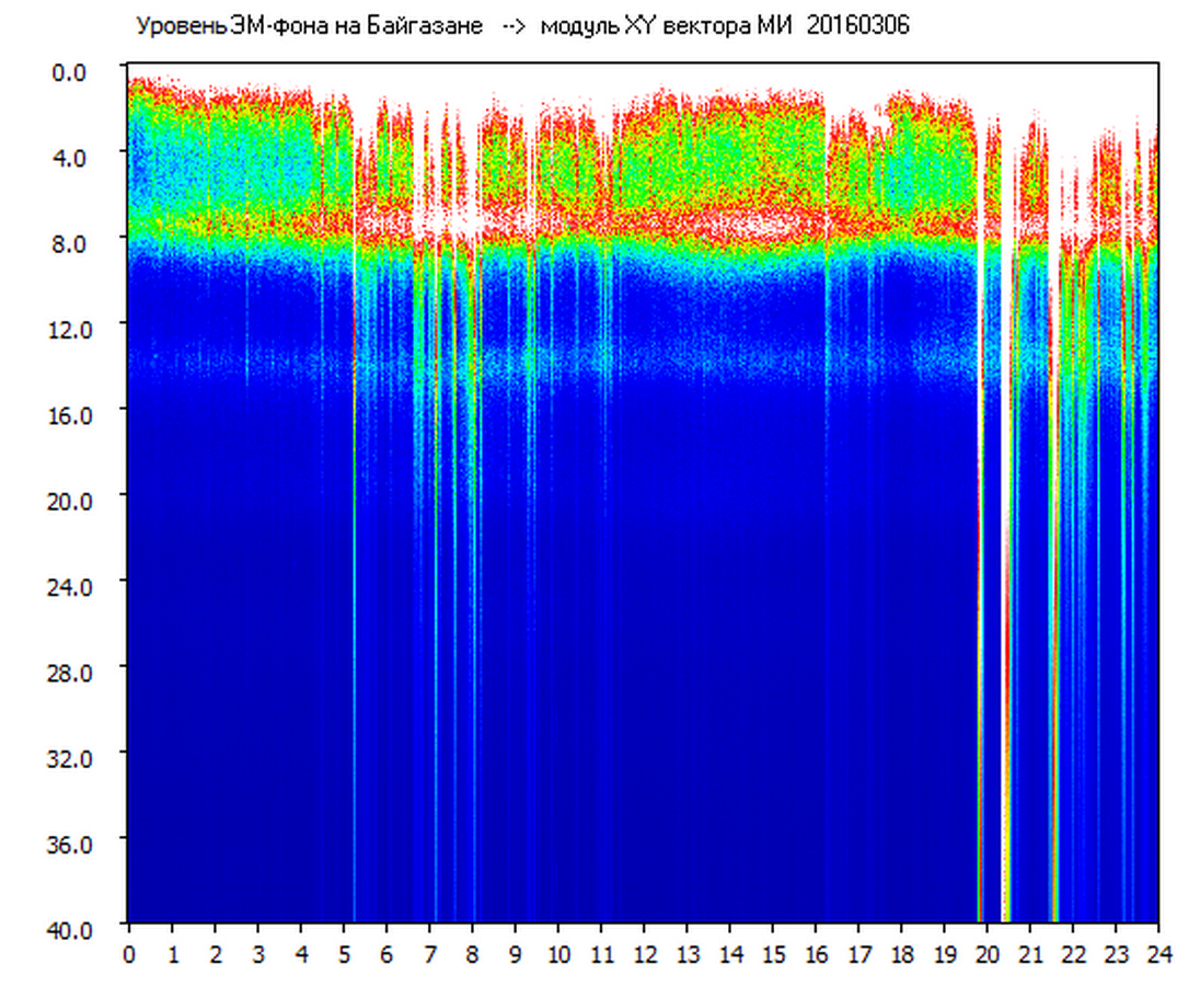 Динамические спектры электромагнитного фона в полосе частот 0 – 40 Гц (Шумановские резонансы)
