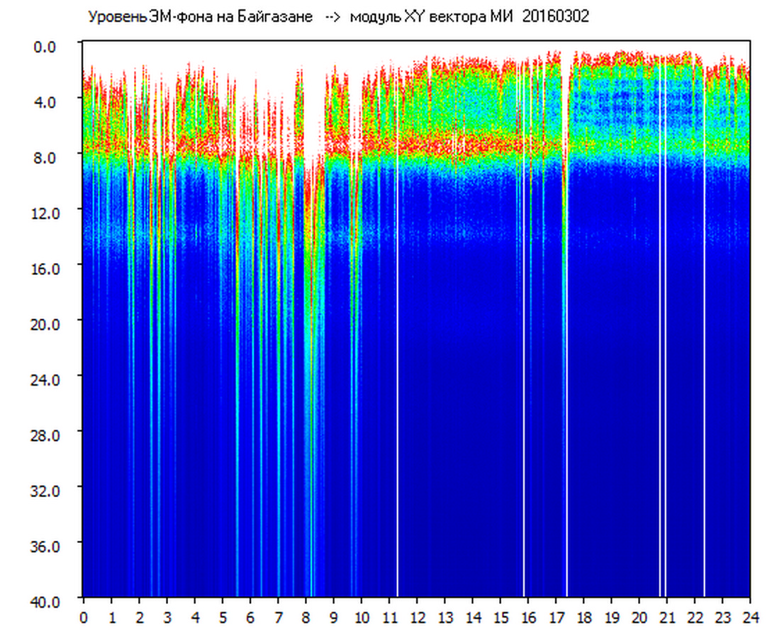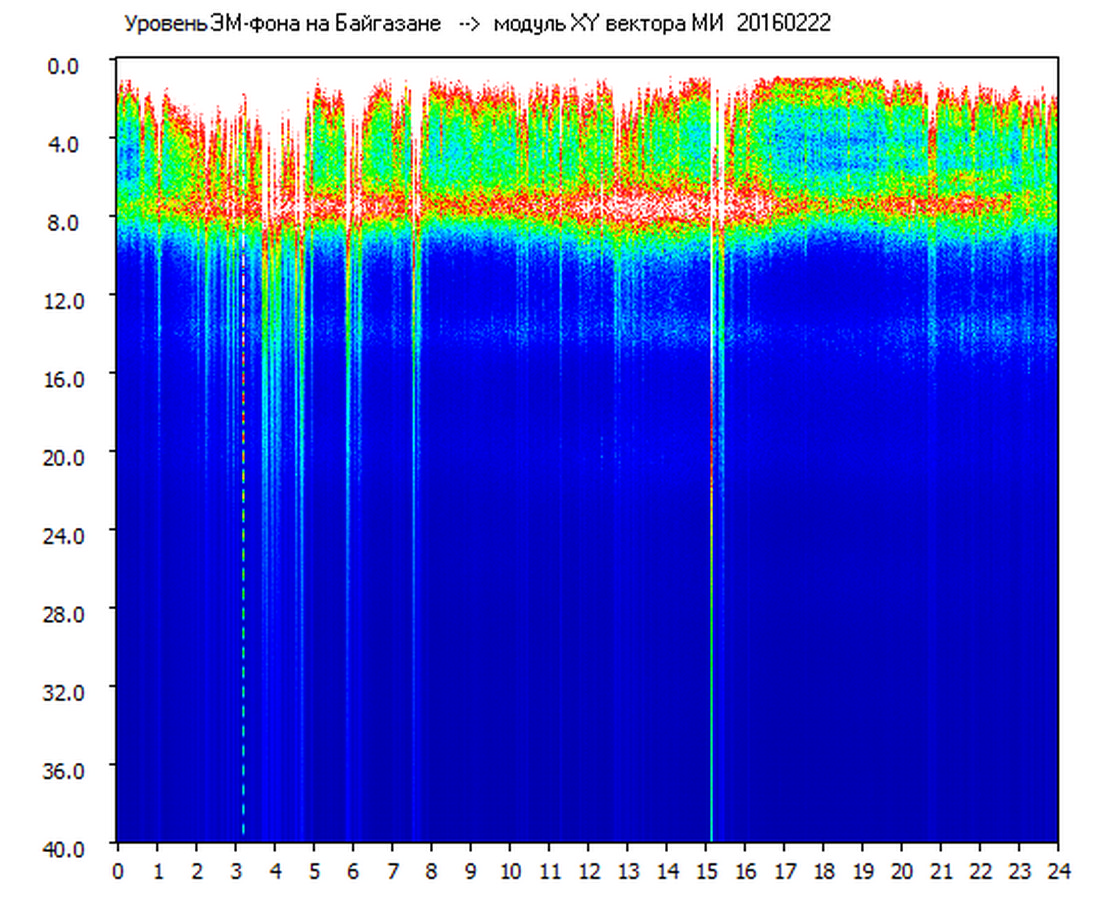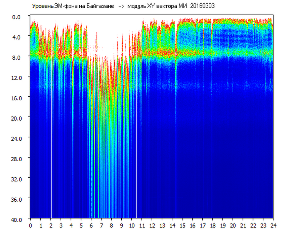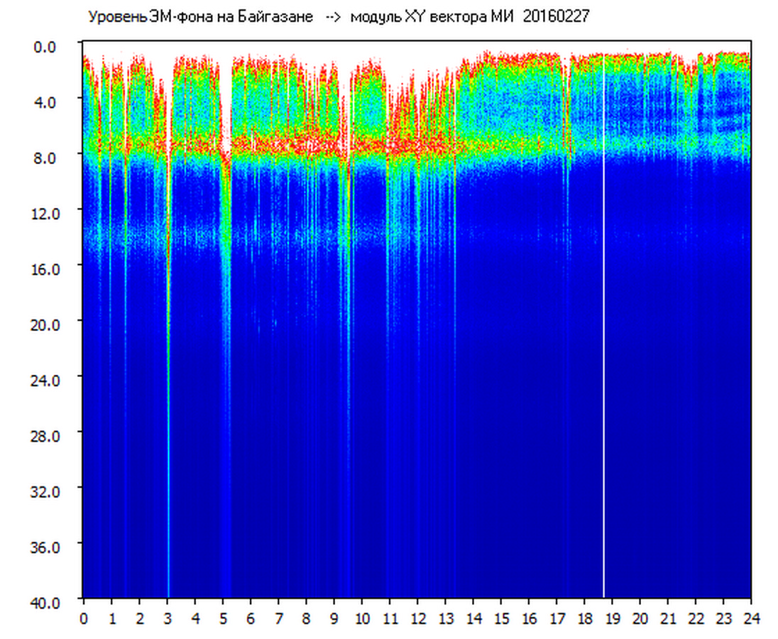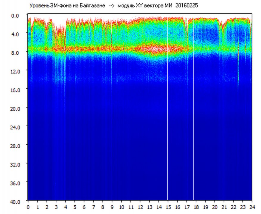 Динамические спектры электромагнитного фона в полосе частот 0 – 40 Гц (Шумановские резонансы)