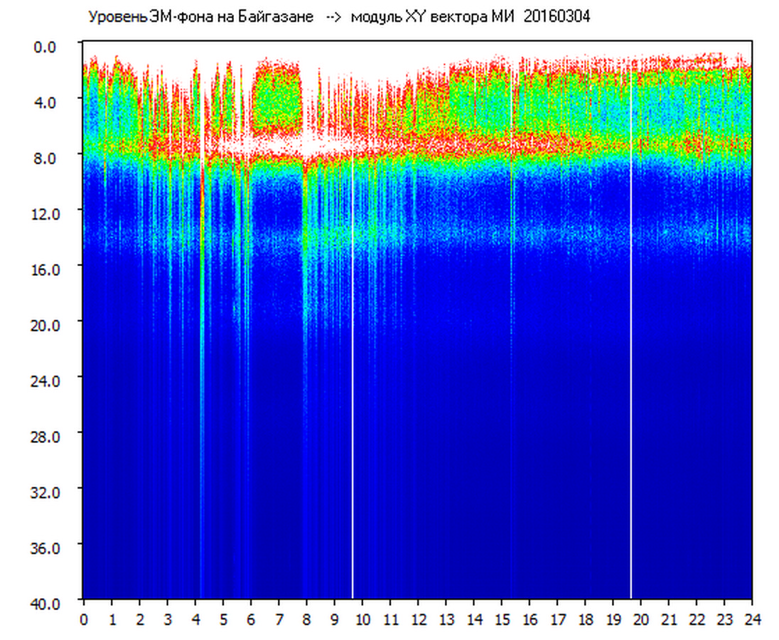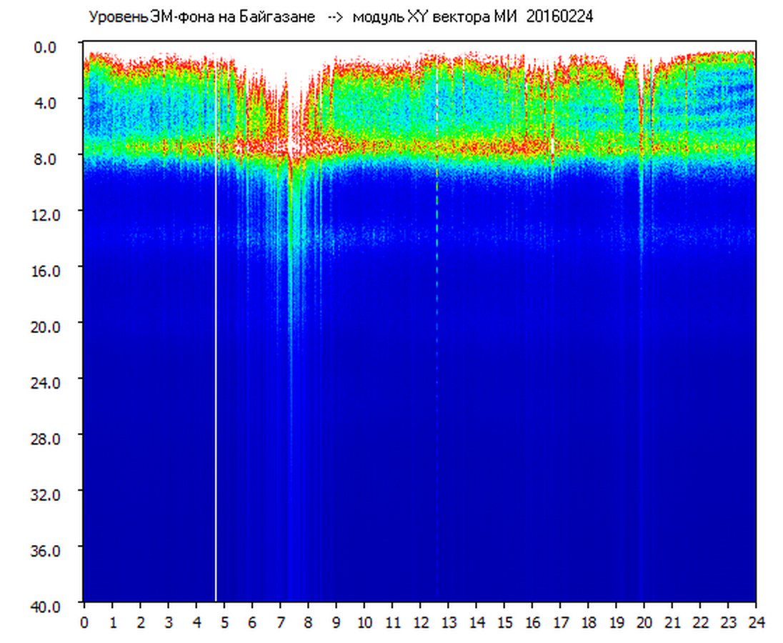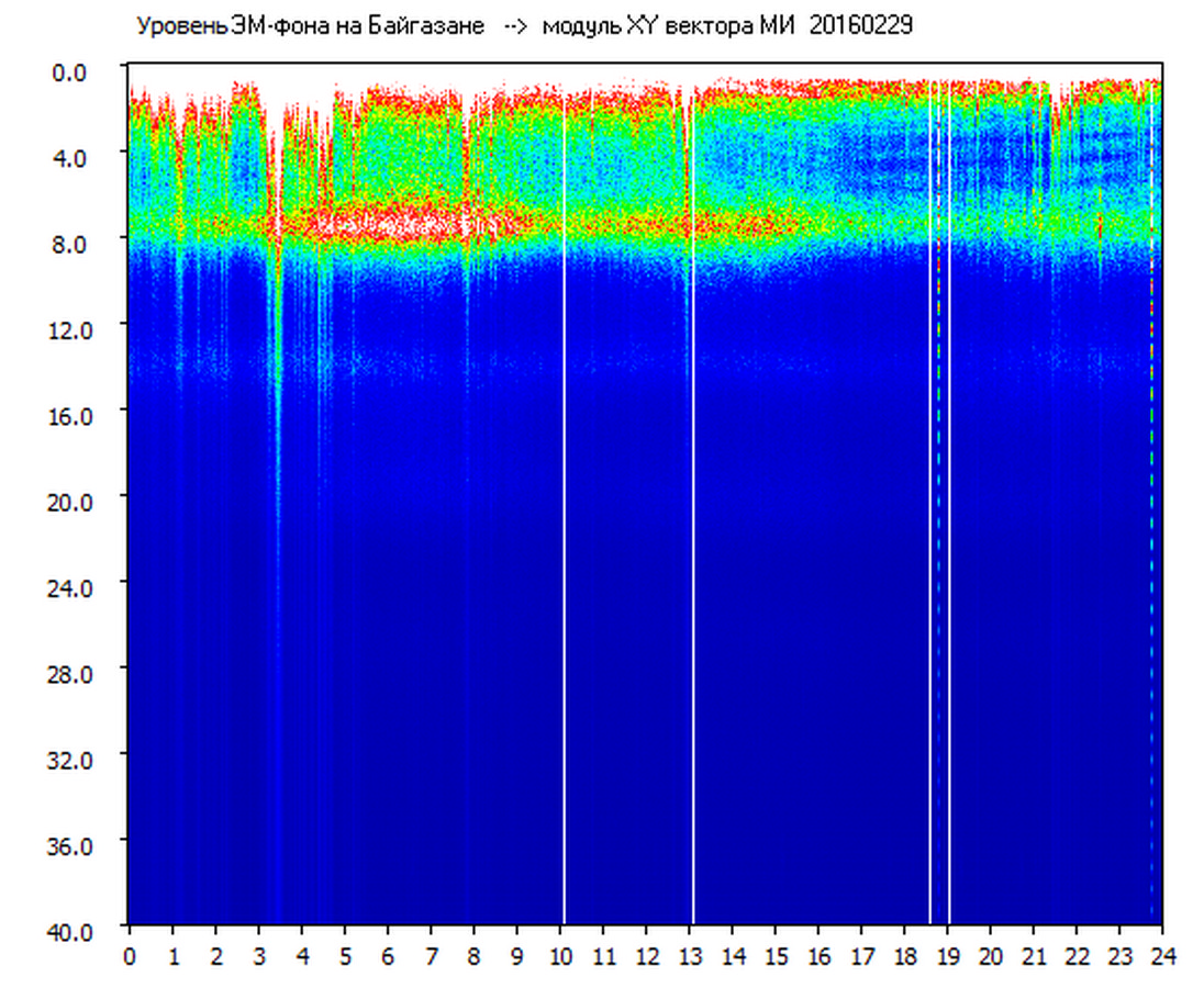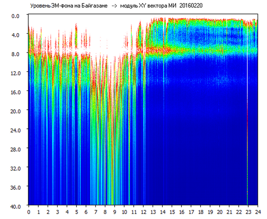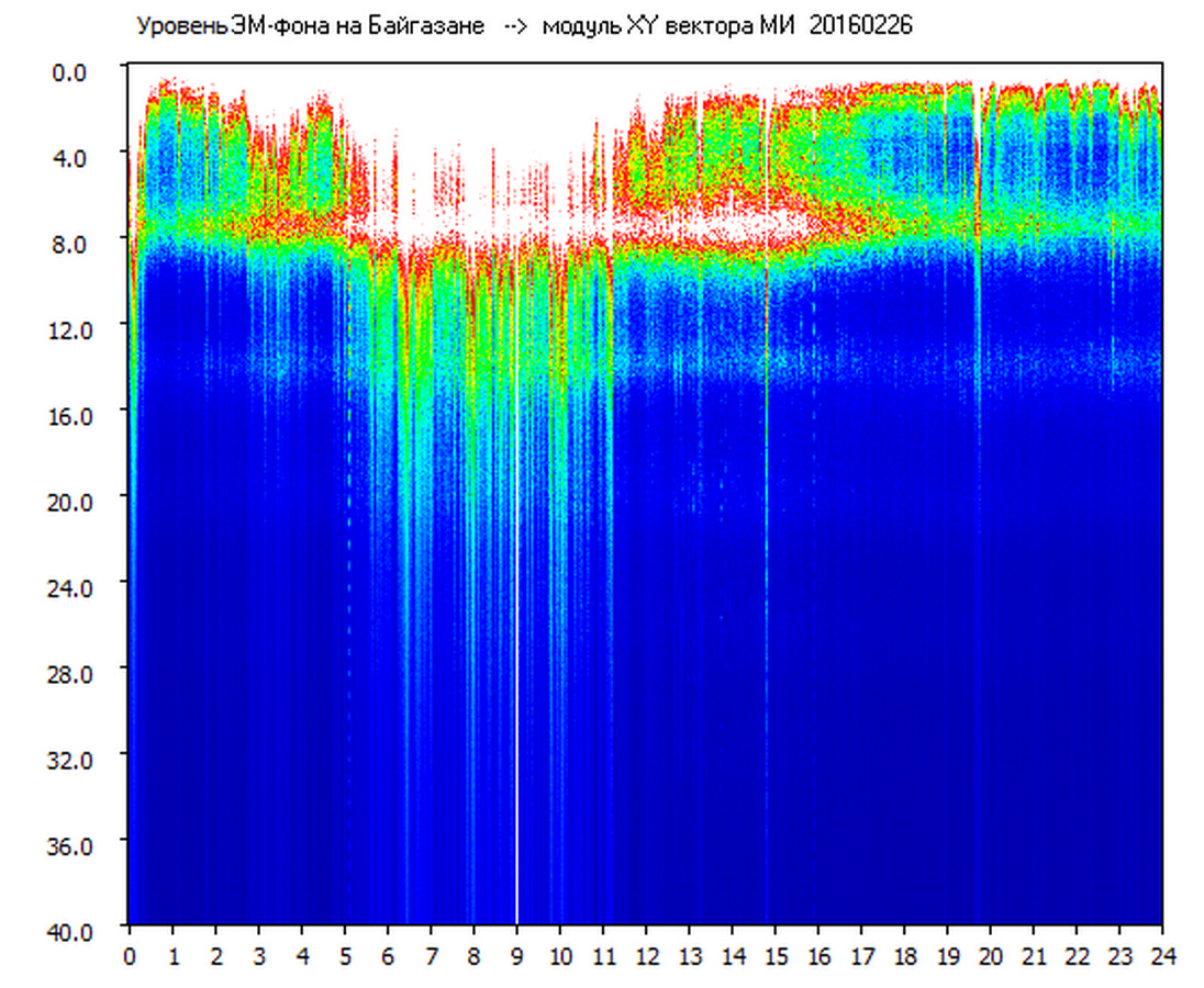 Динамические спектры электромагнитного фона в полосе частот 0 – 40 Гц (Шумановские резонансы)