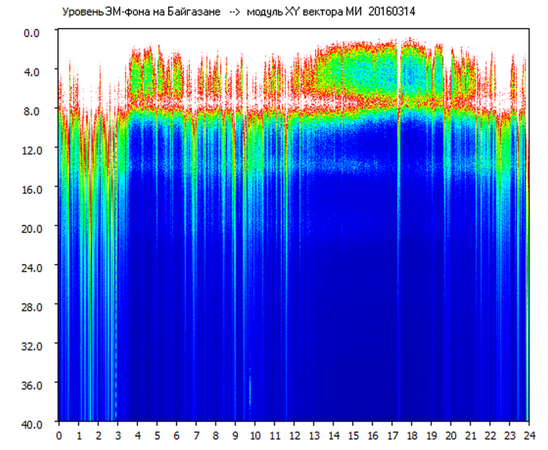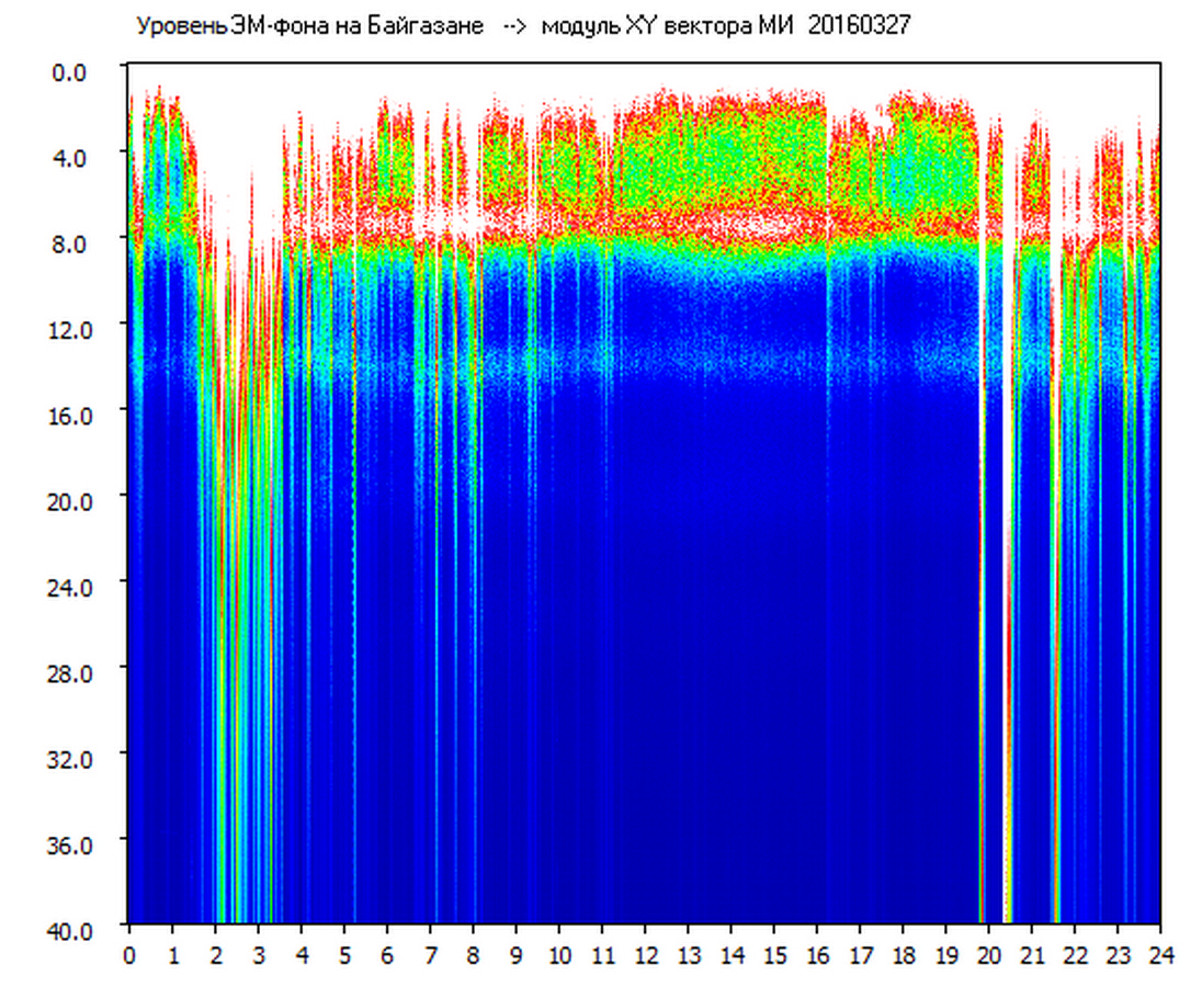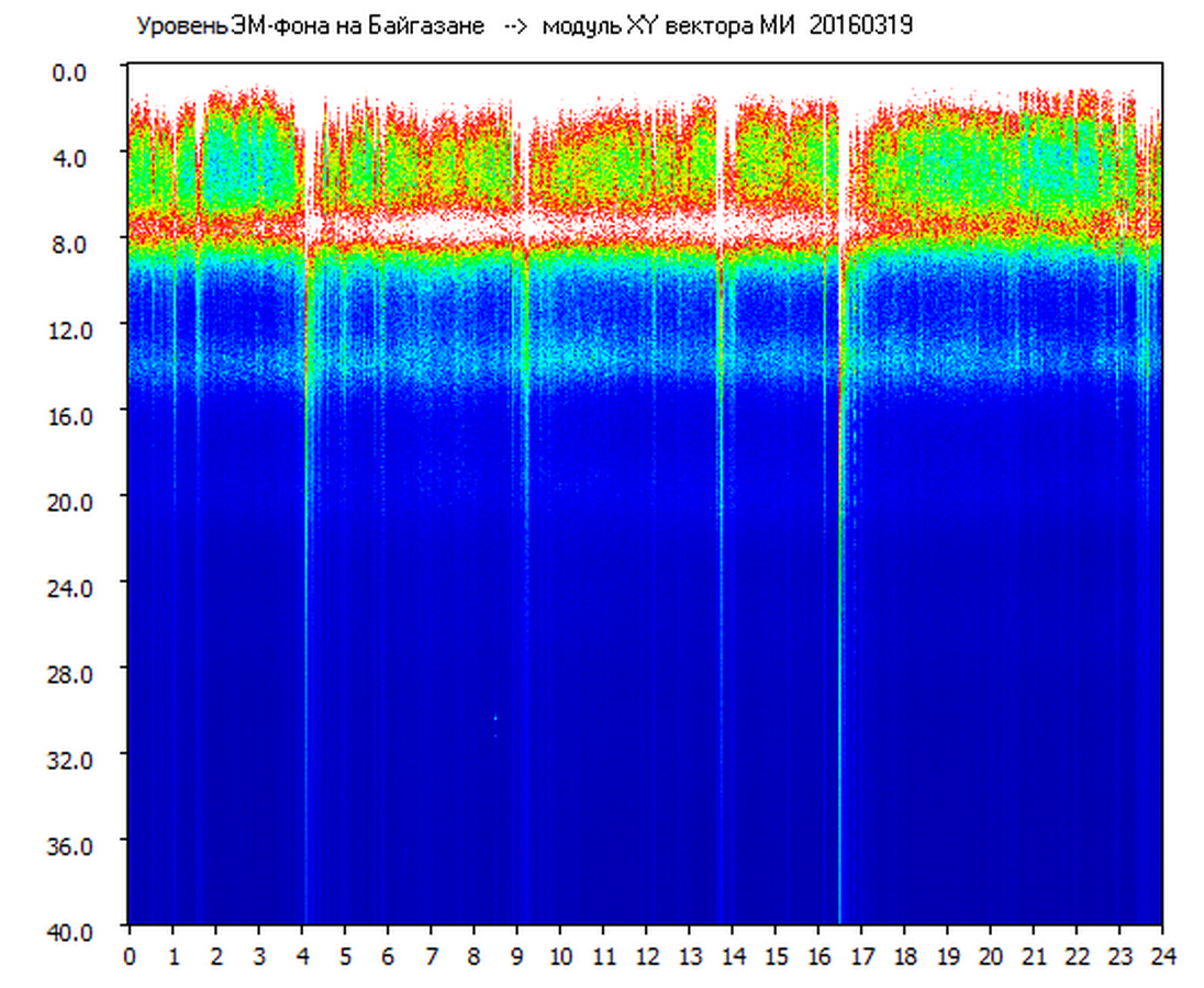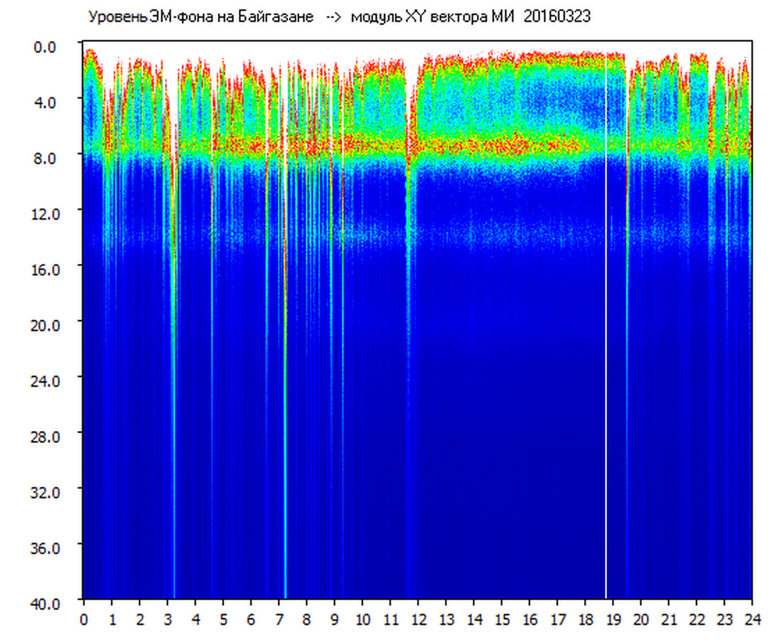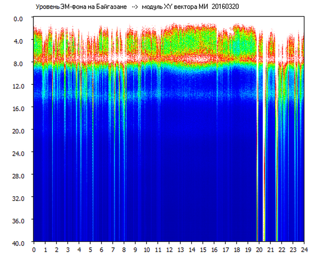 Динамические спектры электромагнитного фона в полосе частот 0 – 40 Гц (Шумановские резонансы)