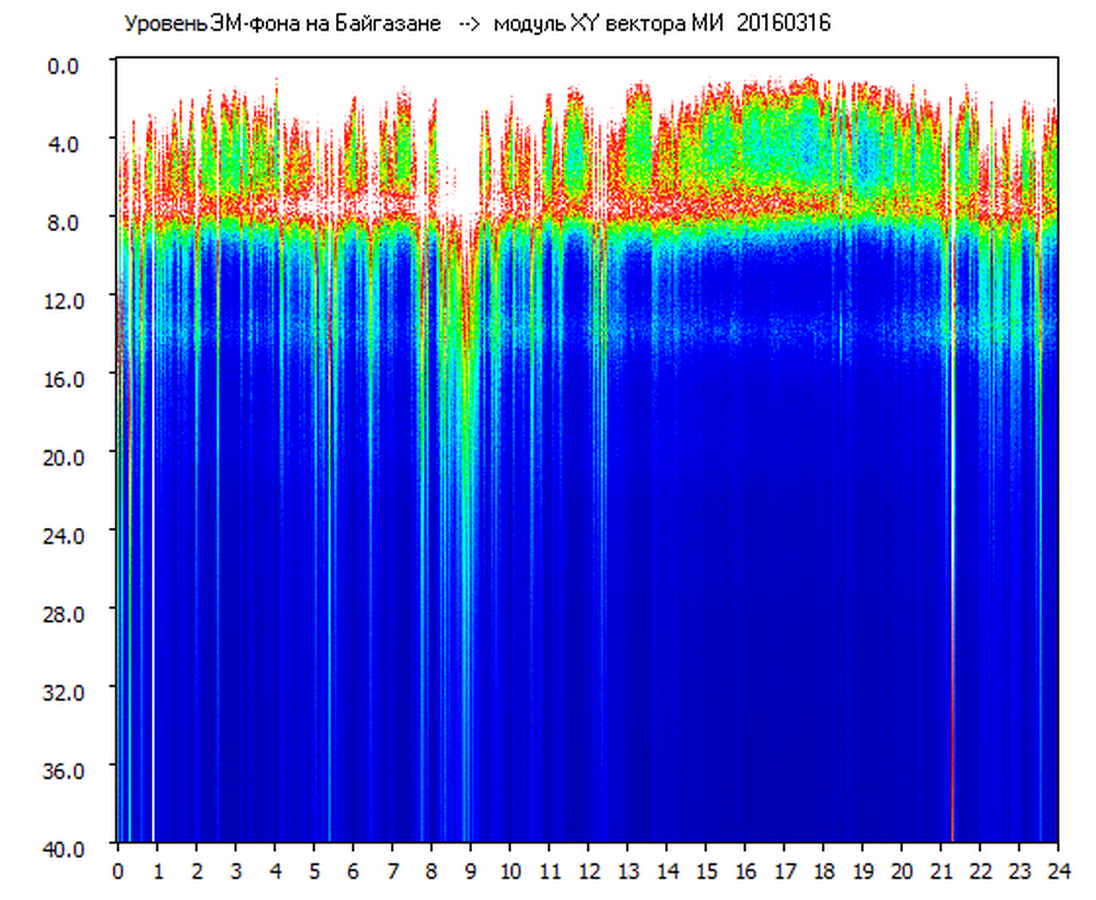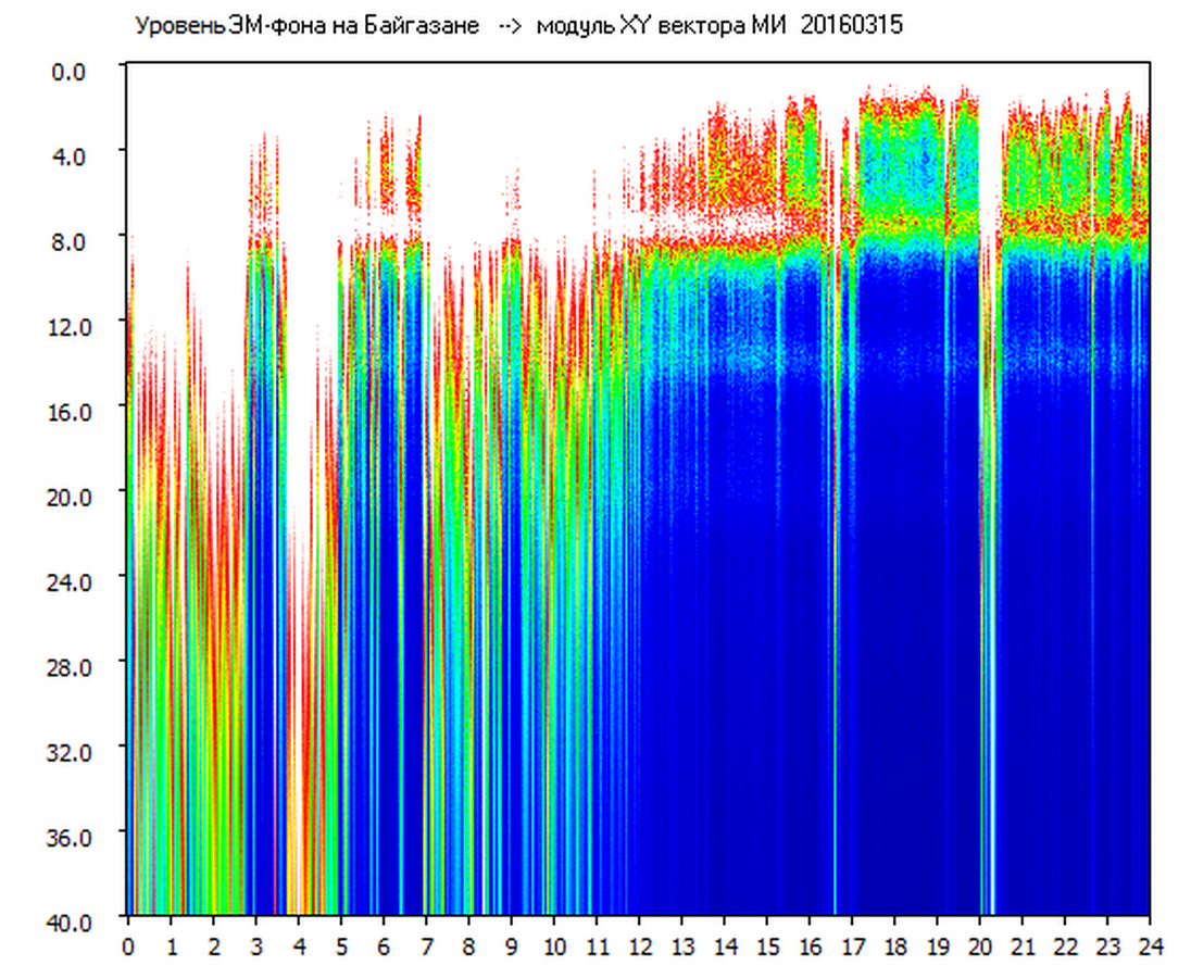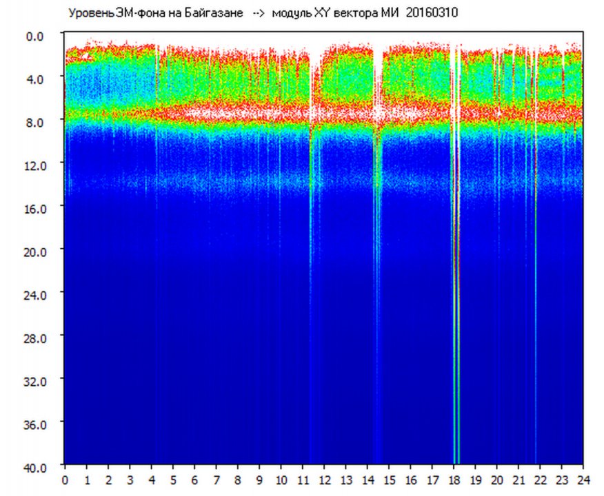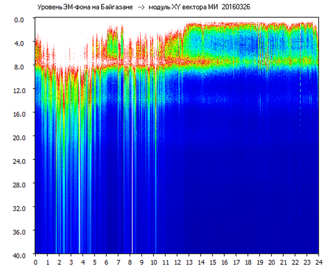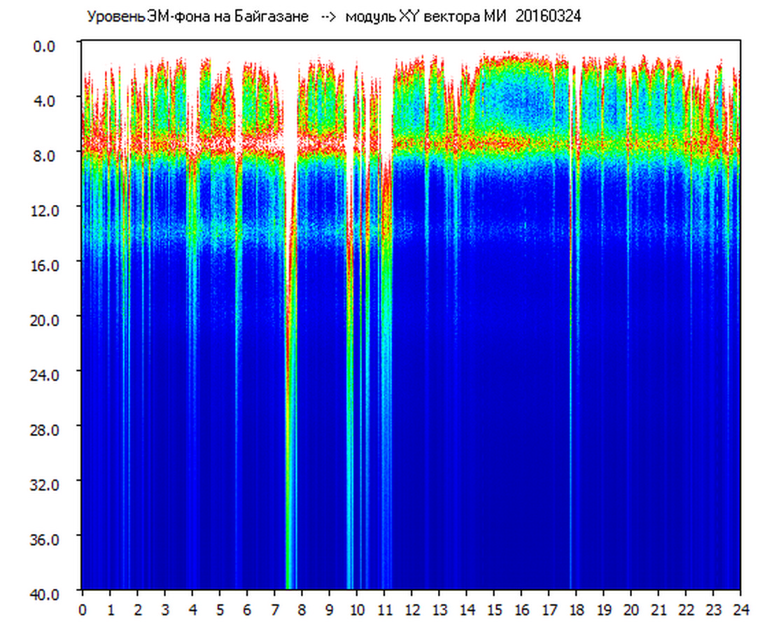 Динамические спектры электромагнитного фона в полосе частот 0 – 40 Гц (Шумановские резонансы)