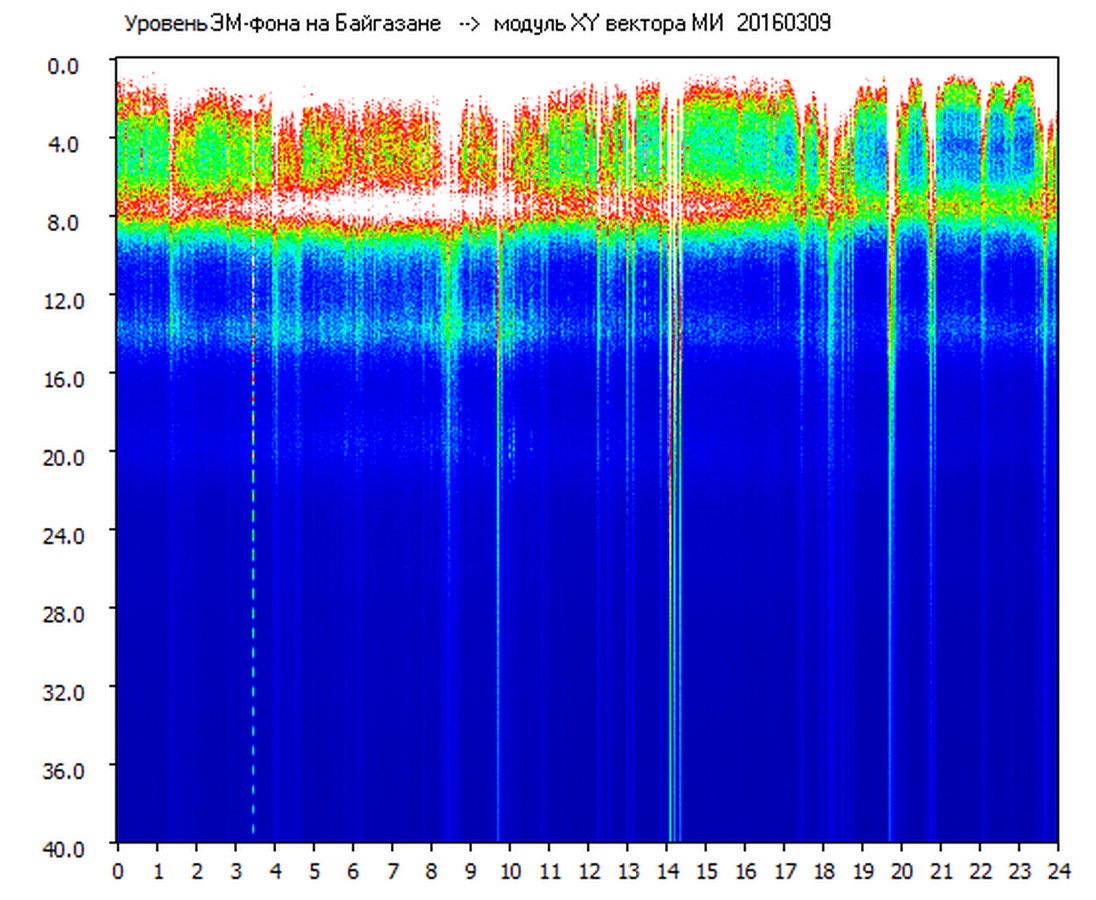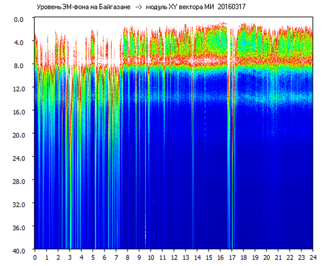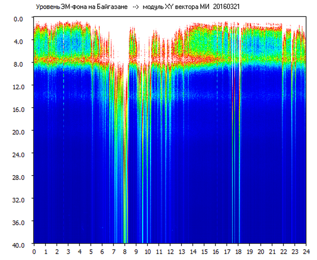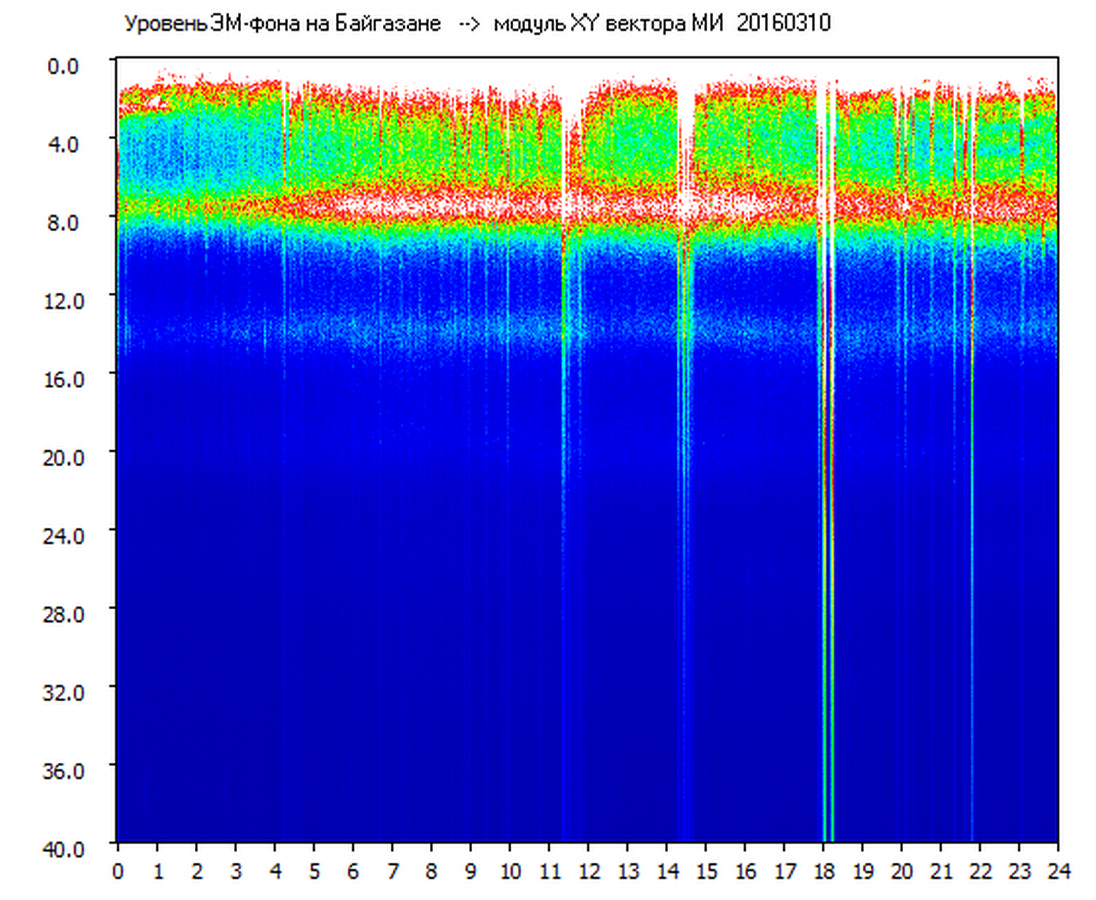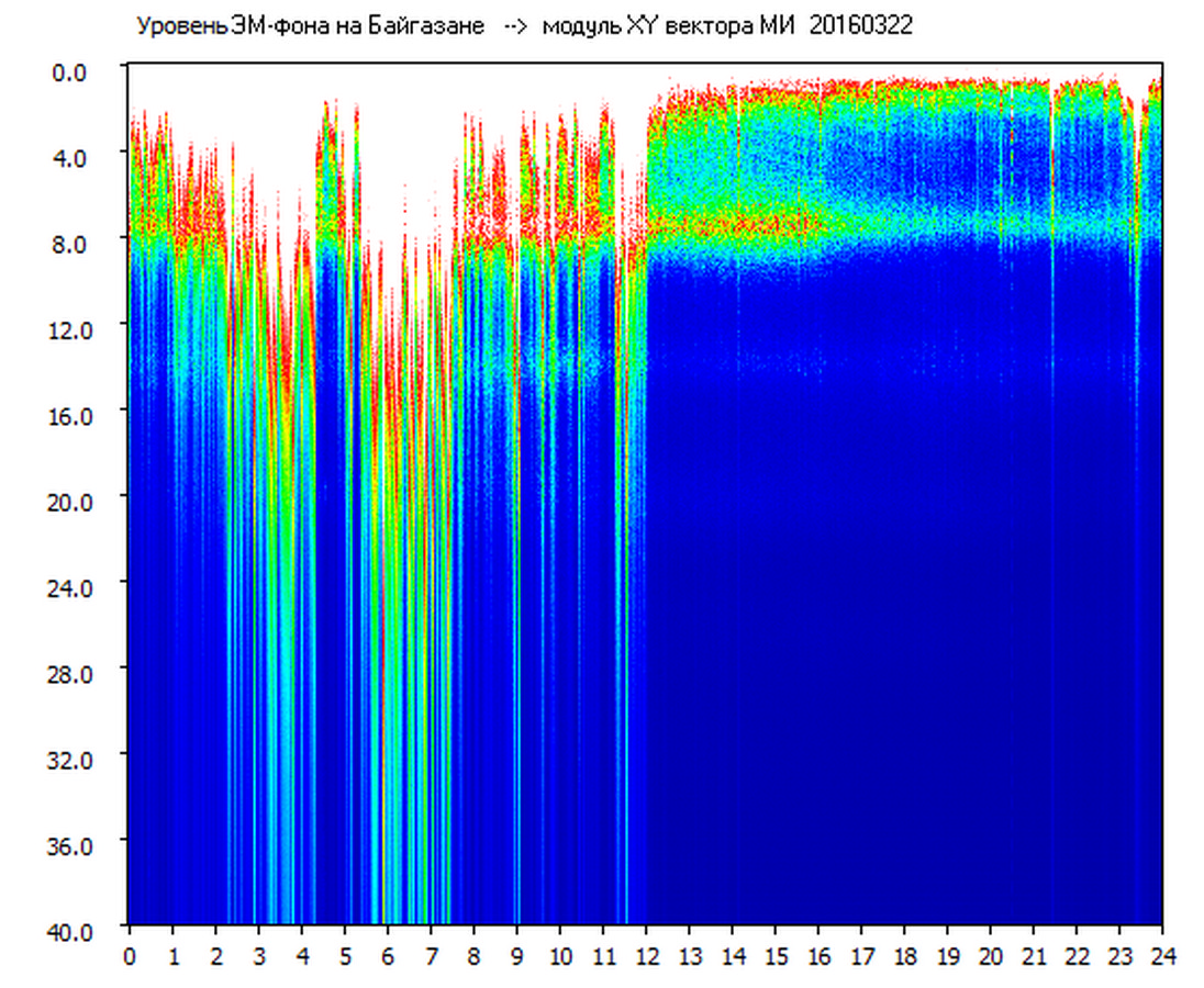 Динамические спектры электромагнитного фона в полосе частот 0 – 40 Гц (Шумановские резонансы)