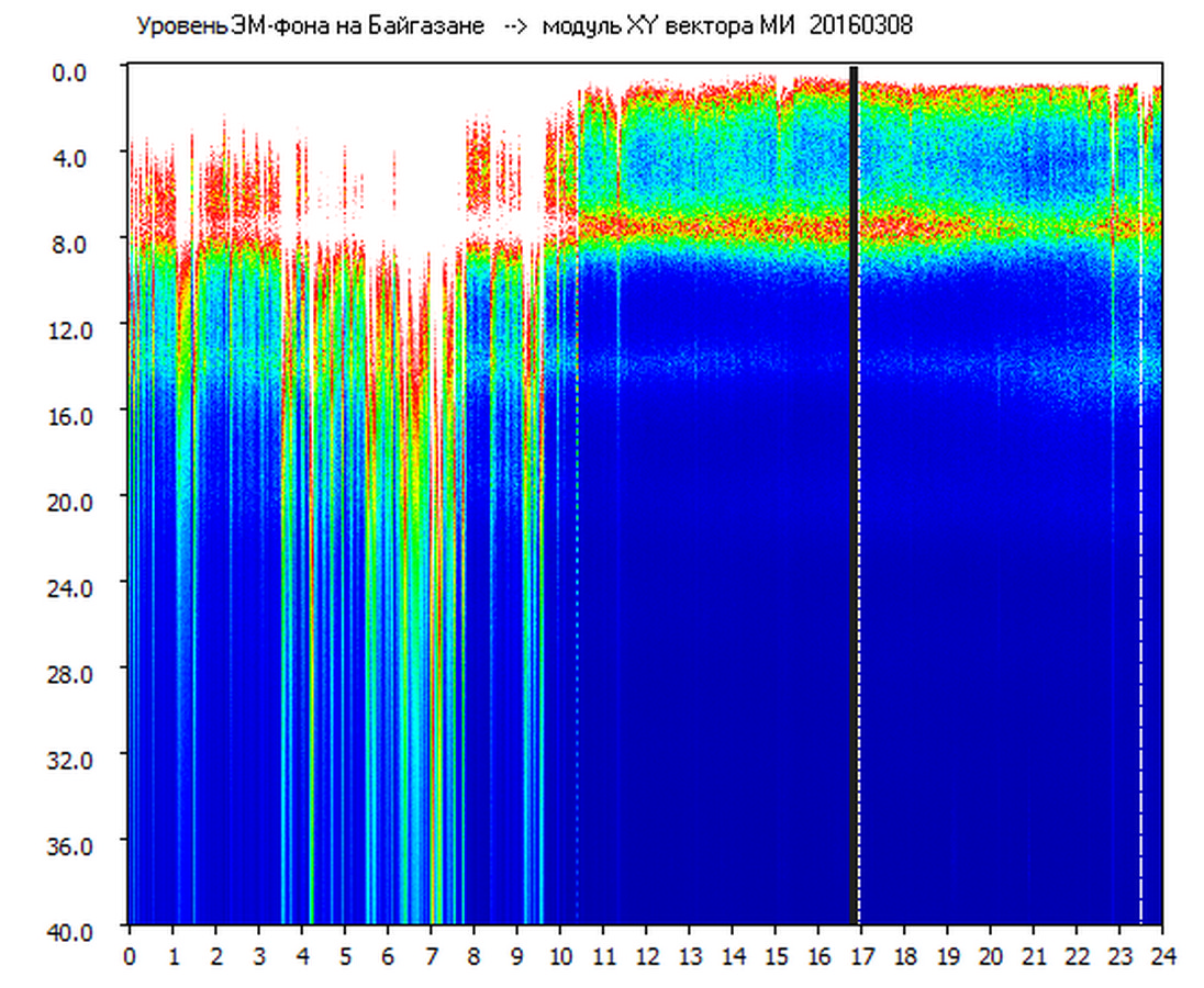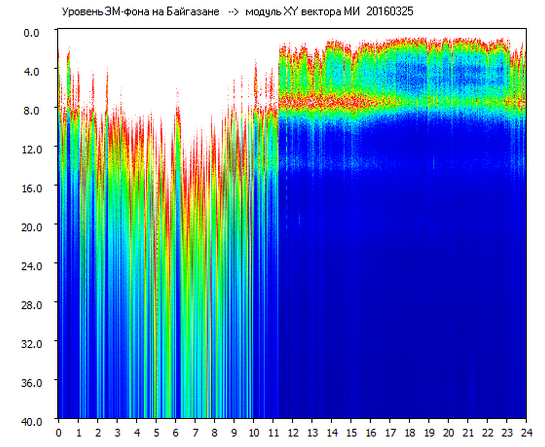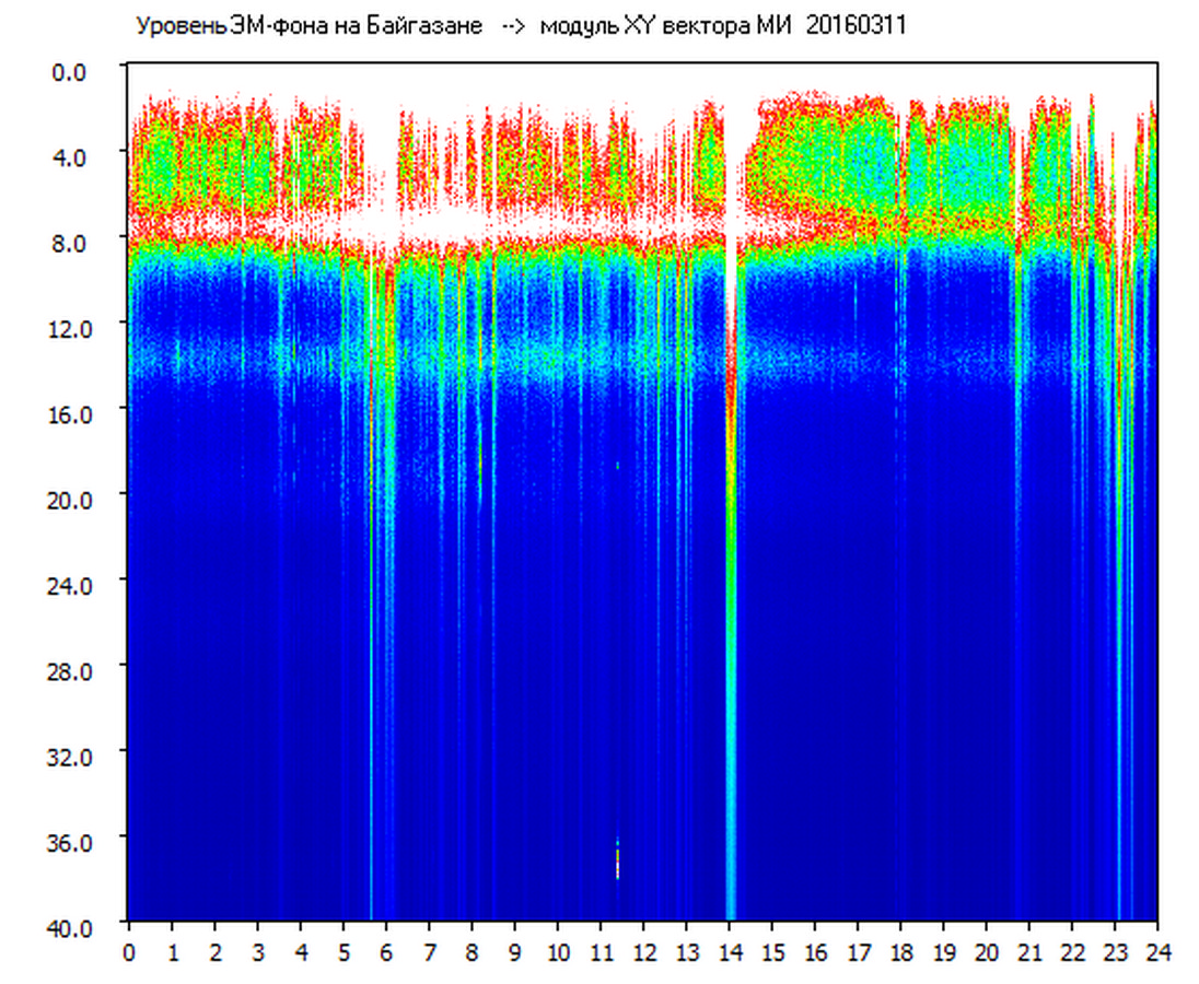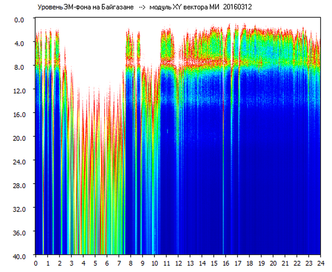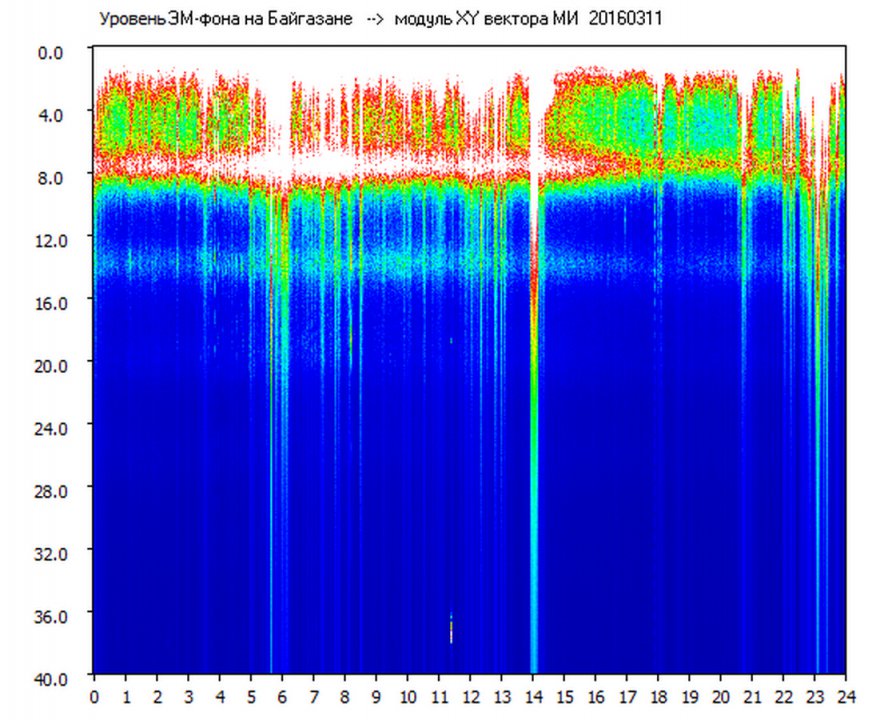 Динамические спектры электромагнитного фона в полосе частот 0 – 40 Гц (Шумановские резонансы)