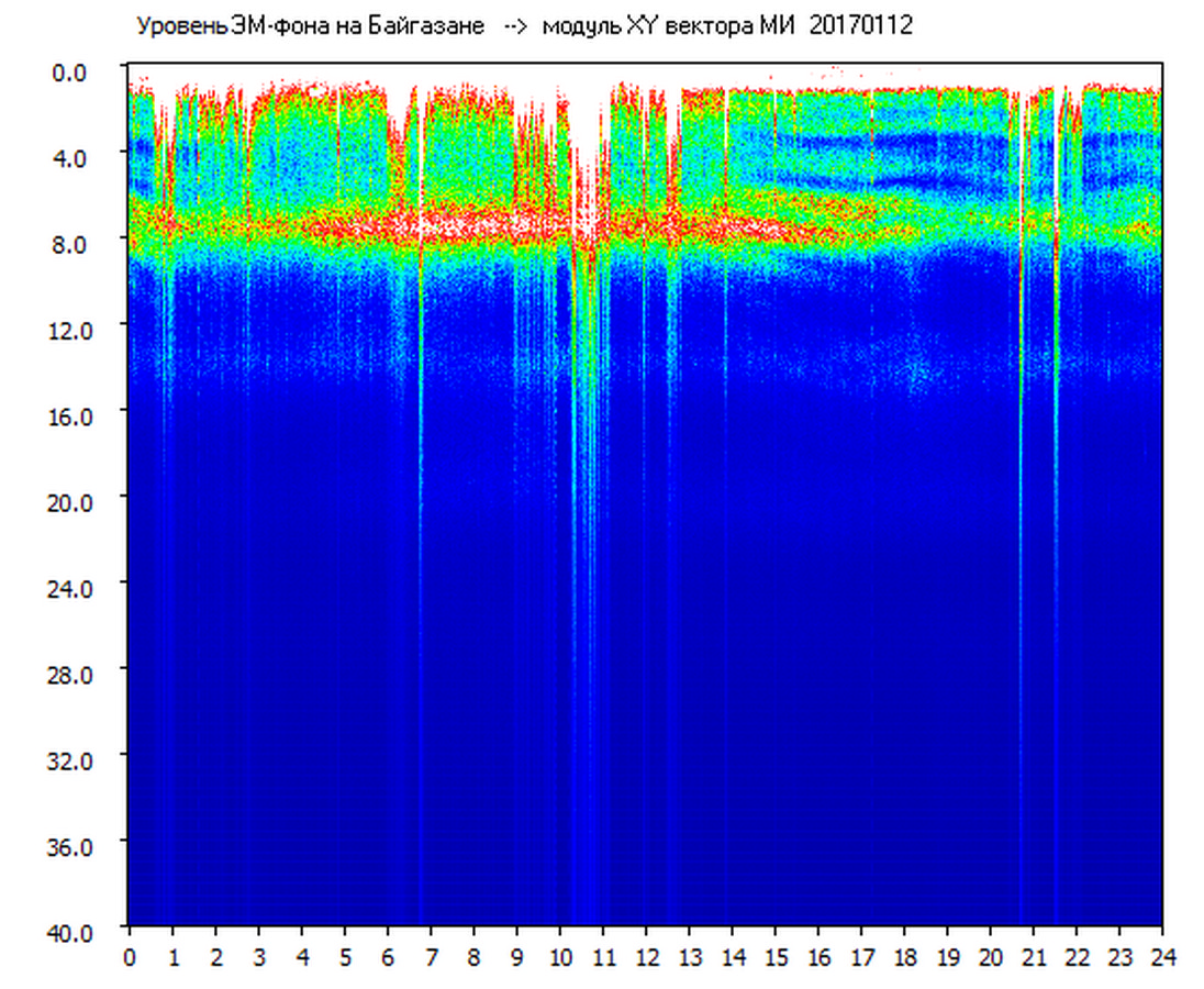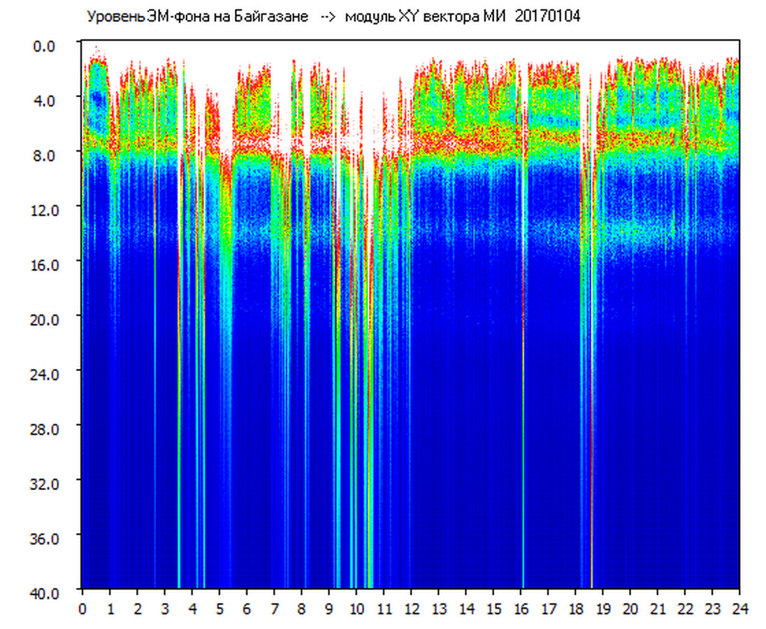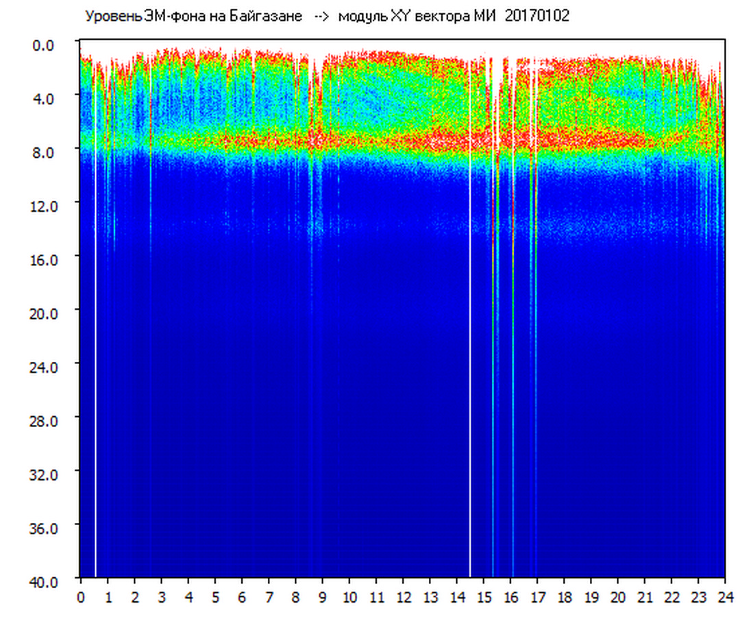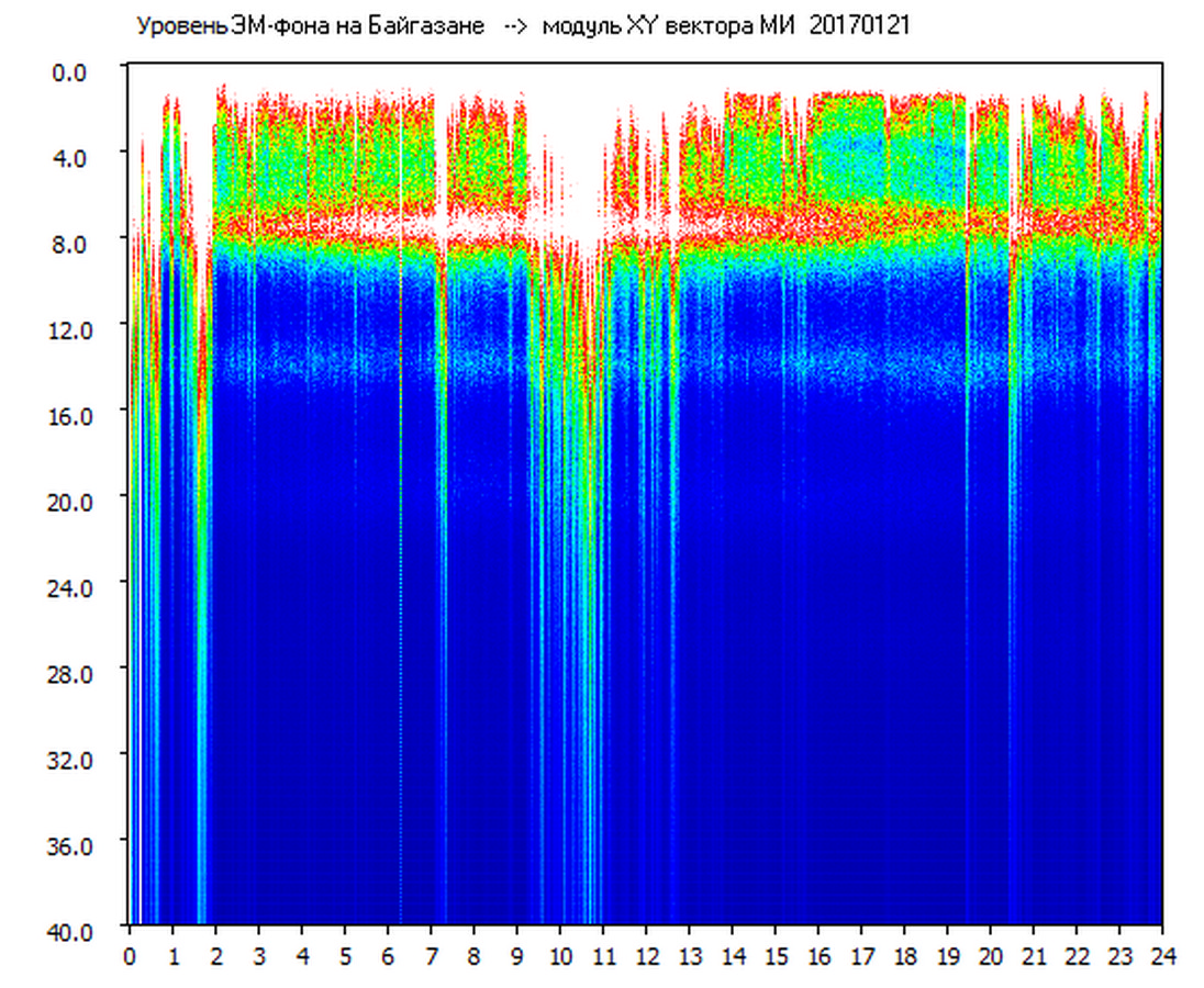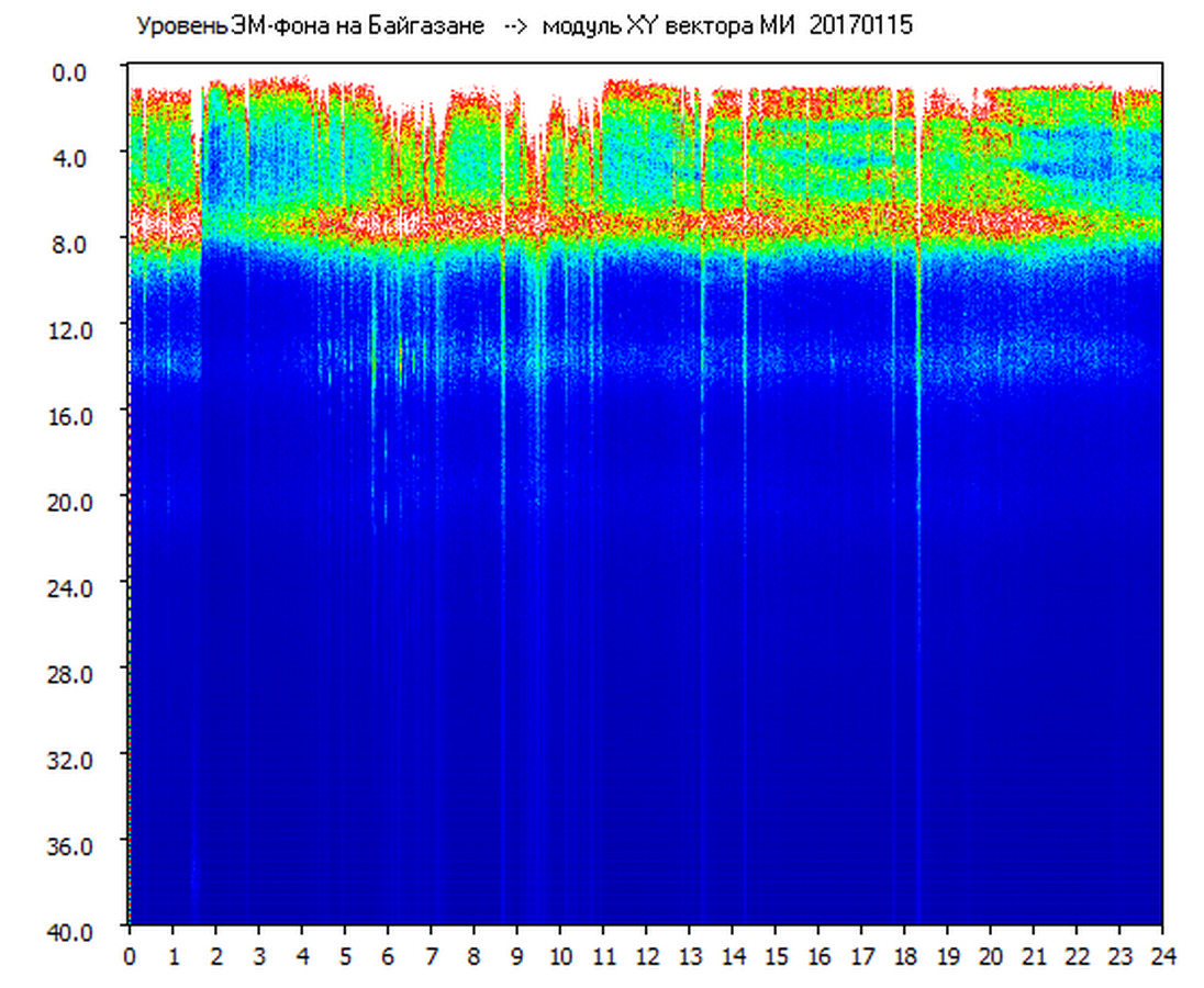 Динамические спектры электромагнитного фона в полосе частот 0 – 40 Гц (Шумановские резонансы)