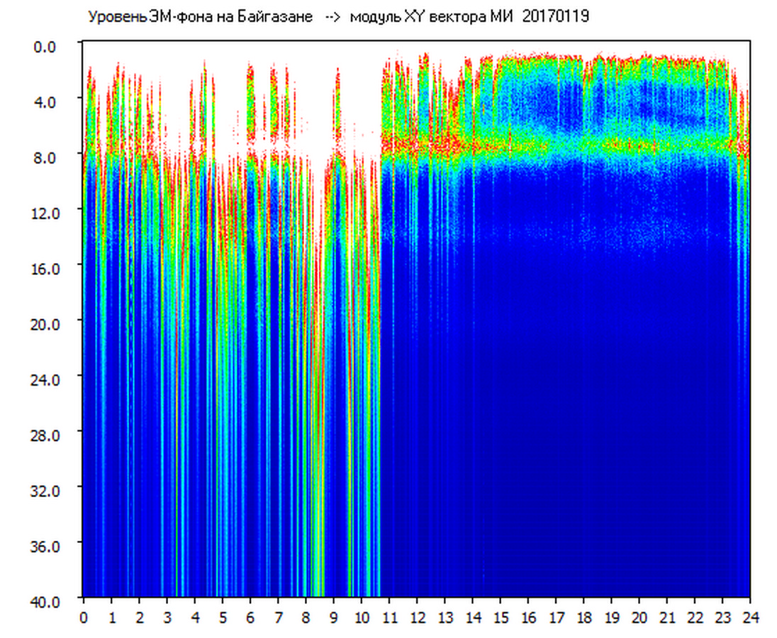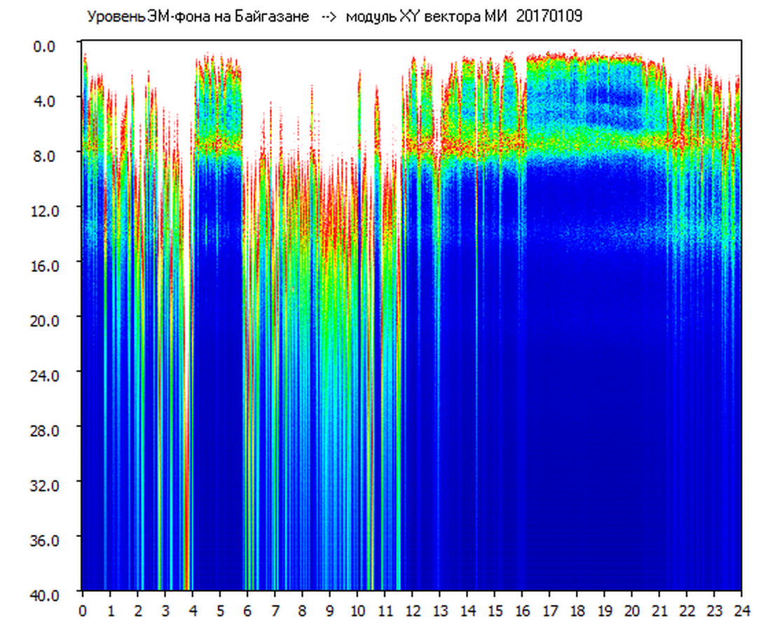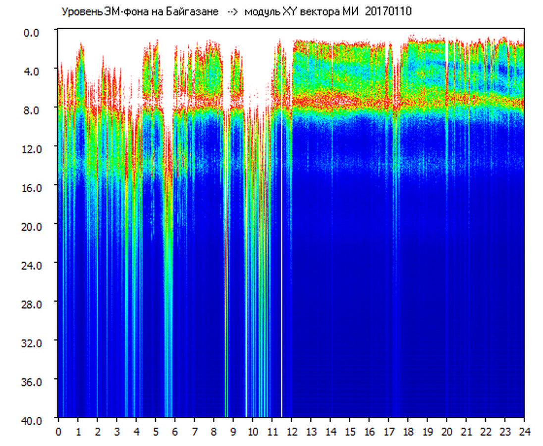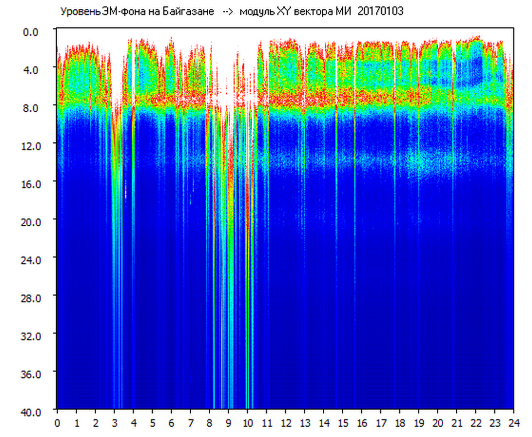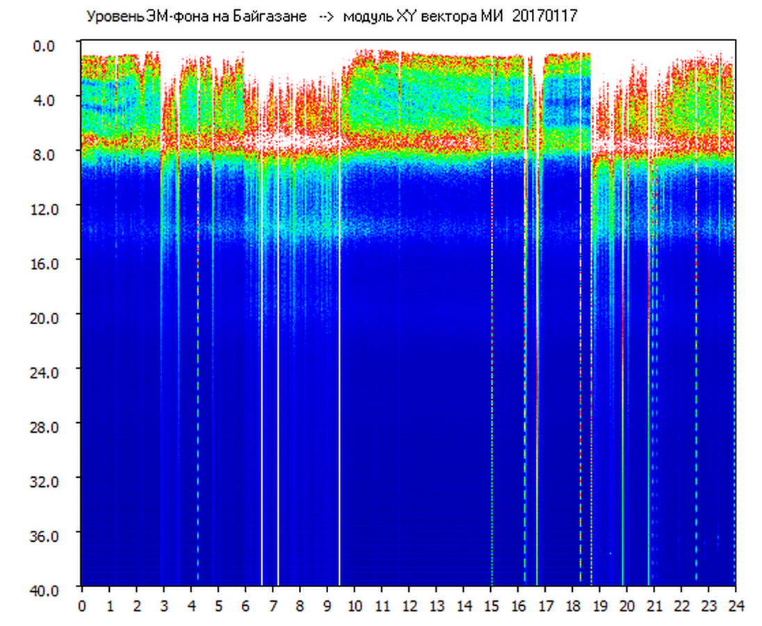 Динамические спектры электромагнитного фона в полосе частот 0 – 40 Гц (Шумановские резонансы)