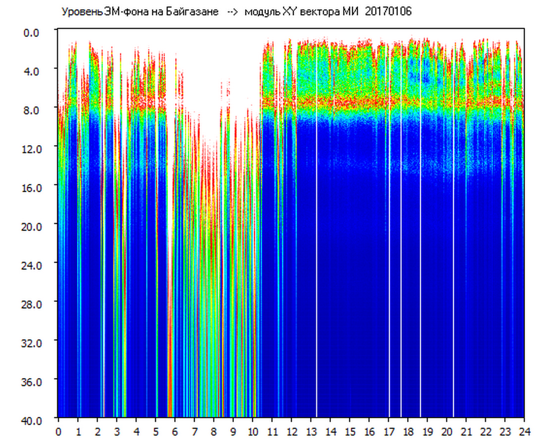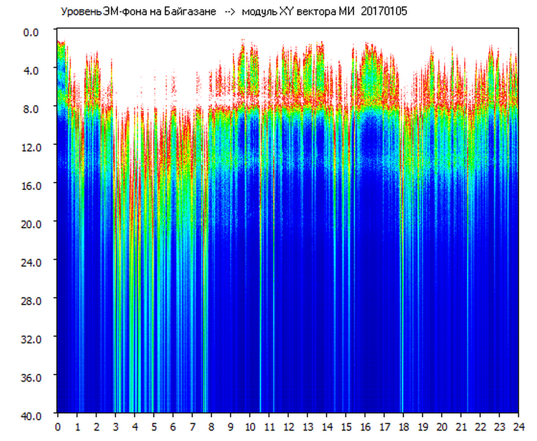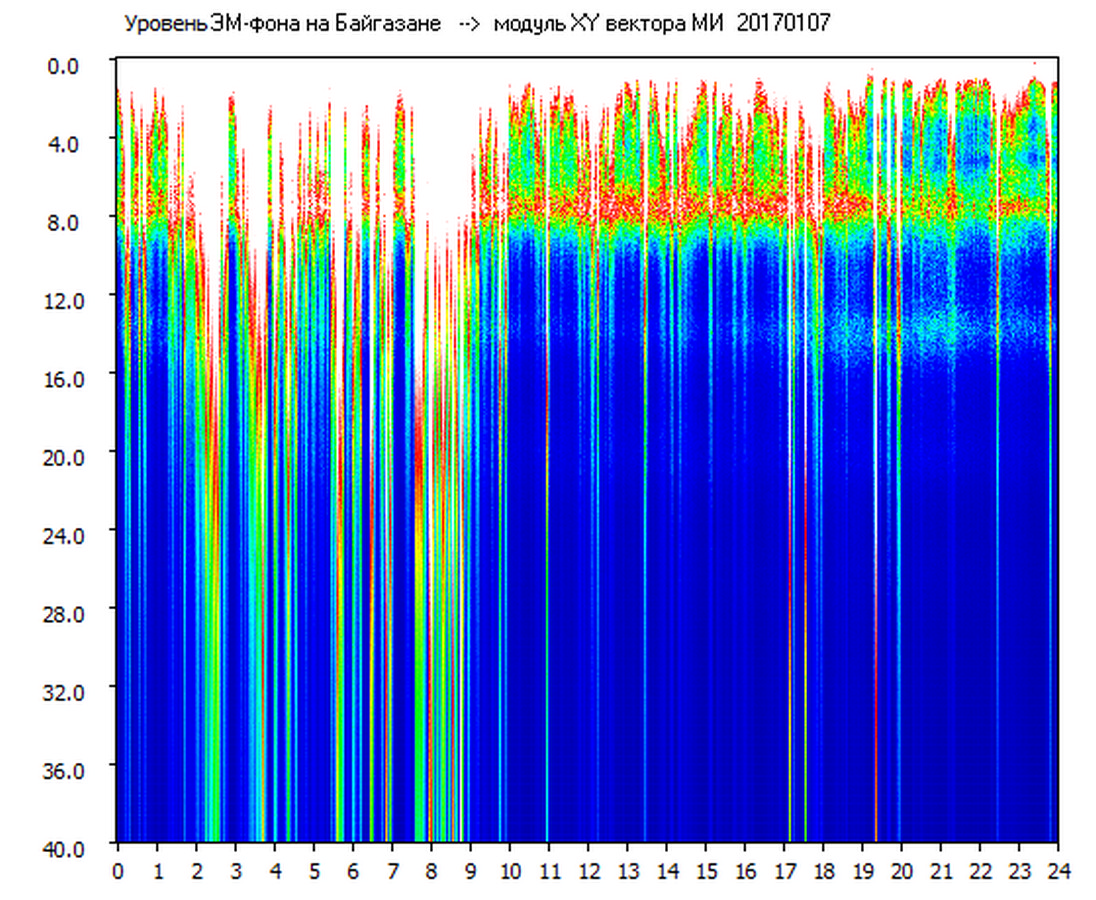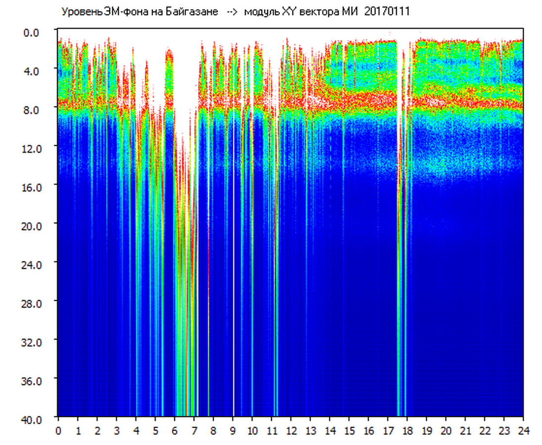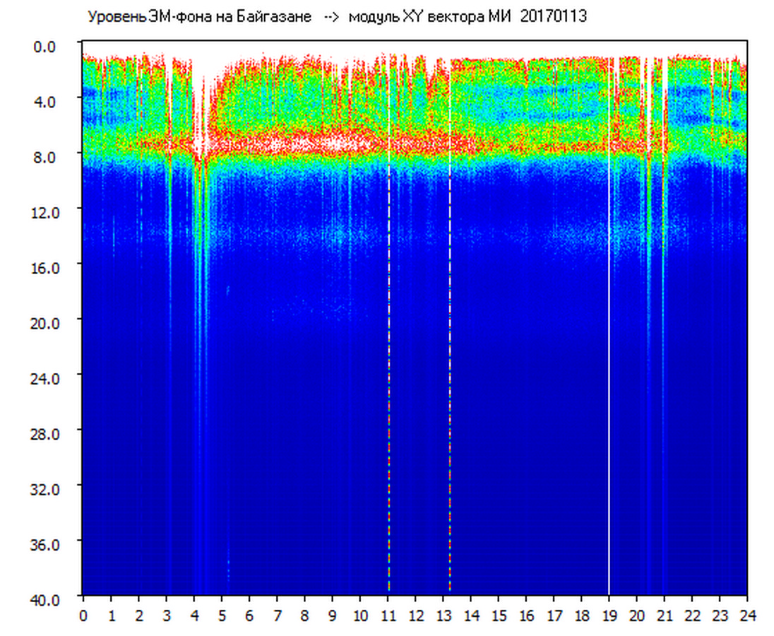 Динамические спектры электромагнитного фона в полосе частот 0 – 40 Гц (Шумановские резонансы)