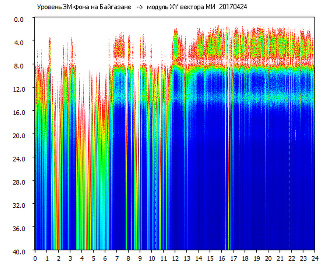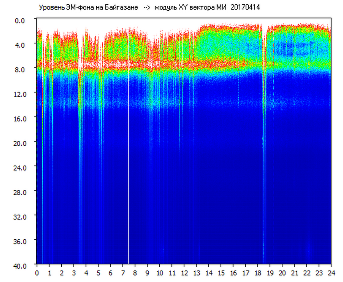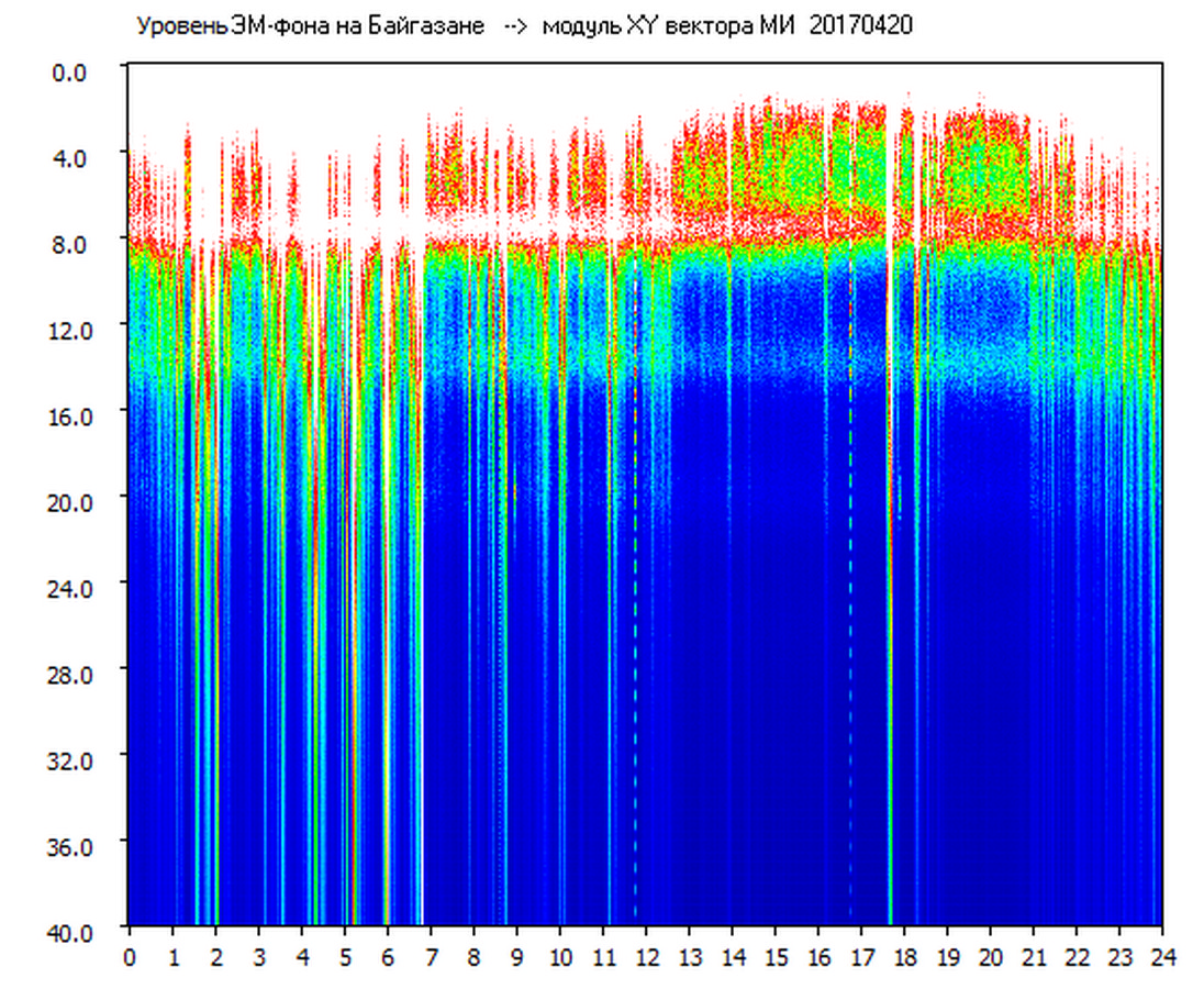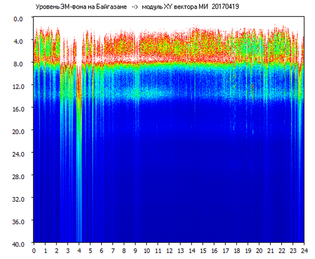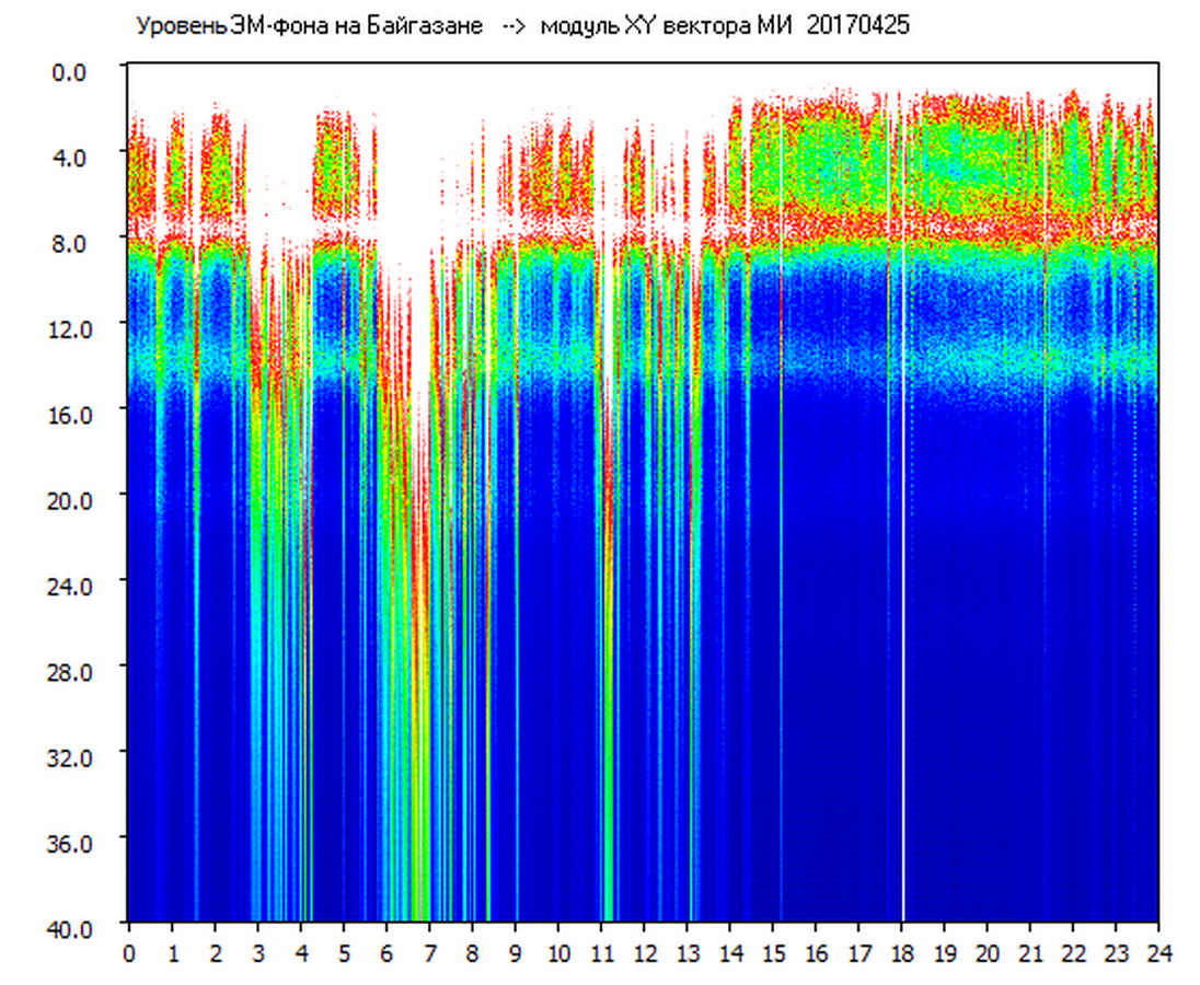Динамические спектры электромагнитного фона в полосе частот 0 – 40 Гц (Шумановские резонансы)