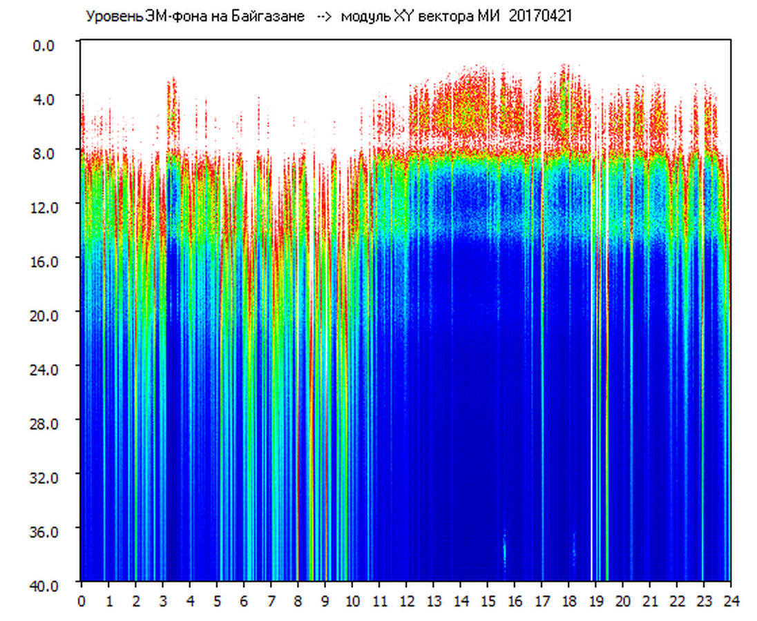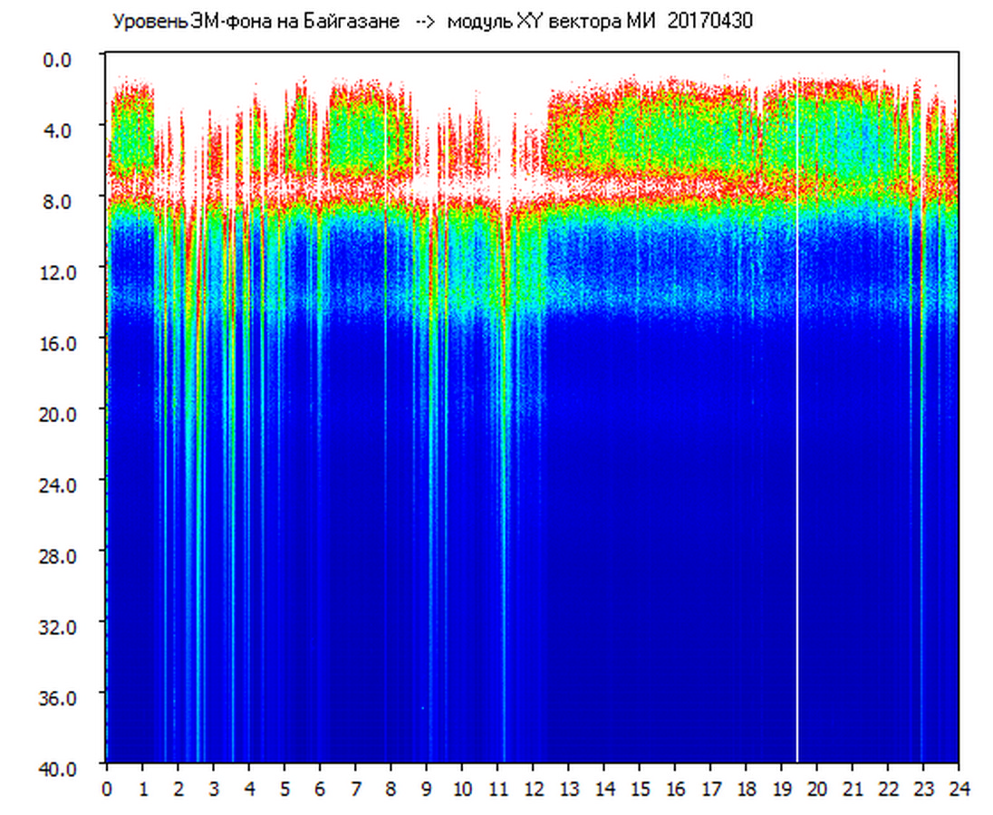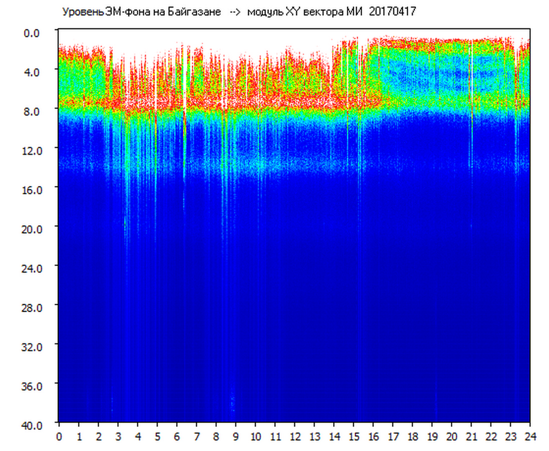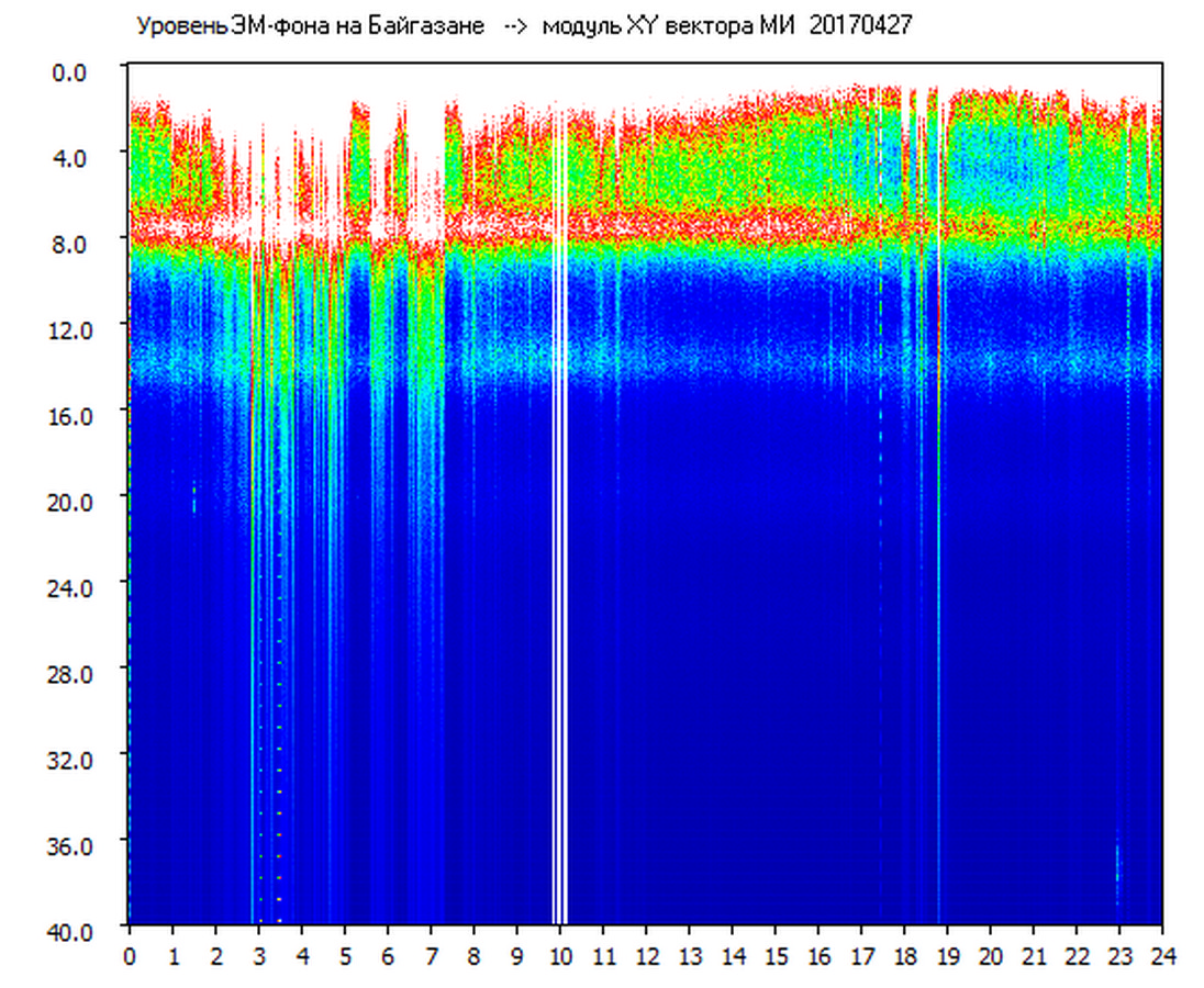 Динамические спектры электромагнитного фона в полосе частот 0 – 40 Гц (Шумановские резонансы)