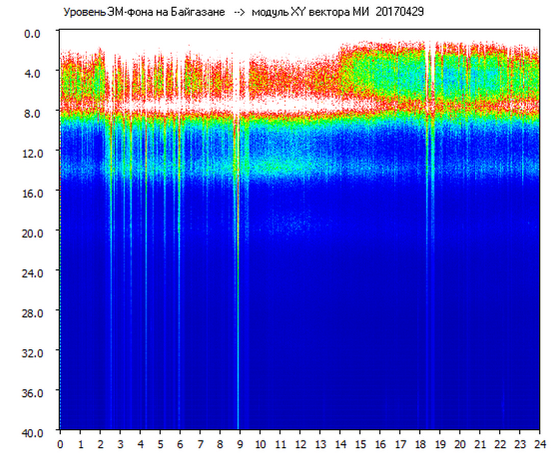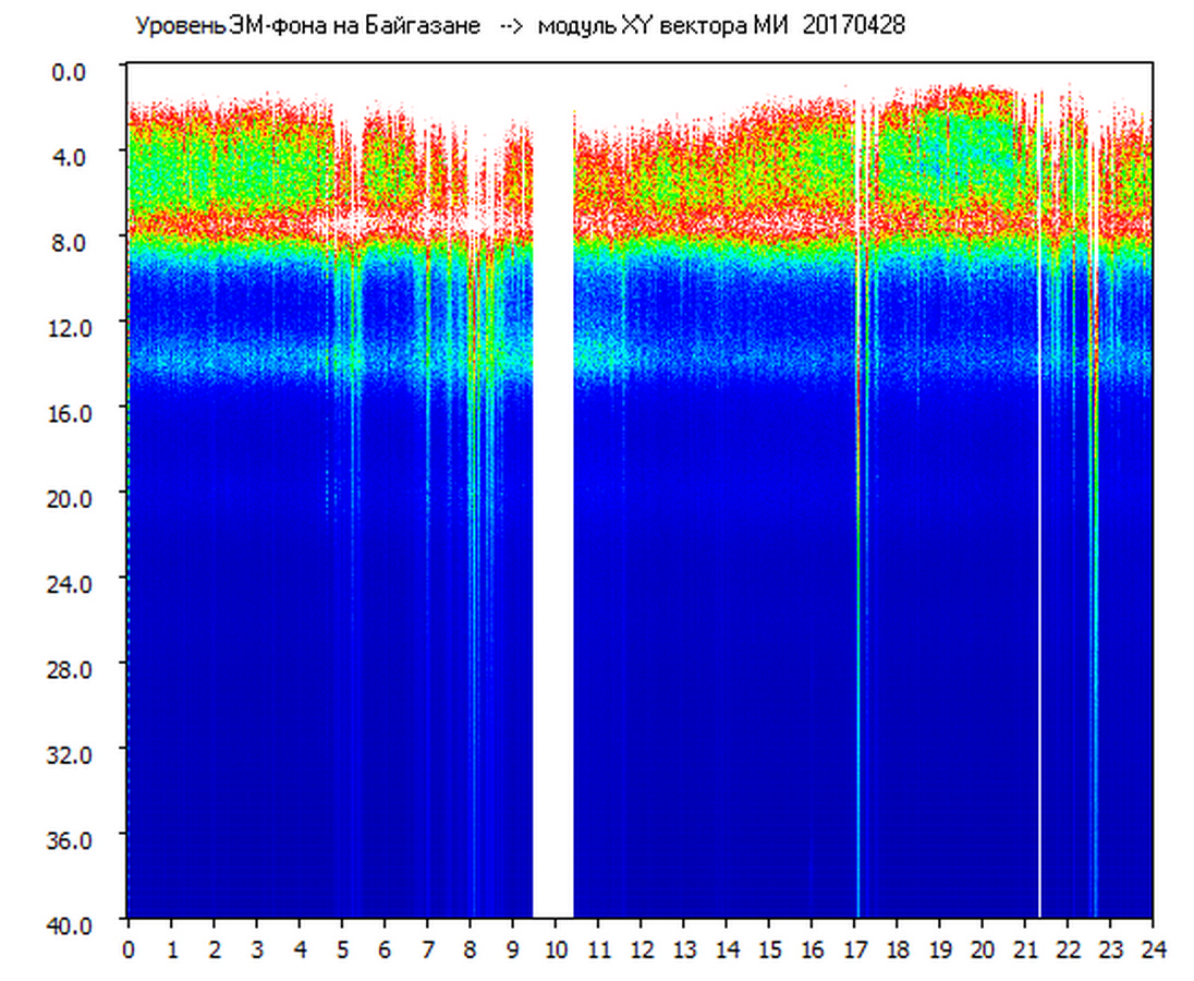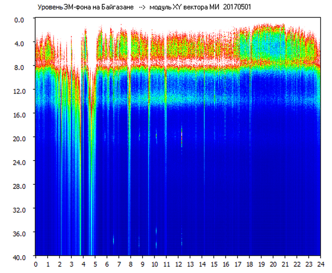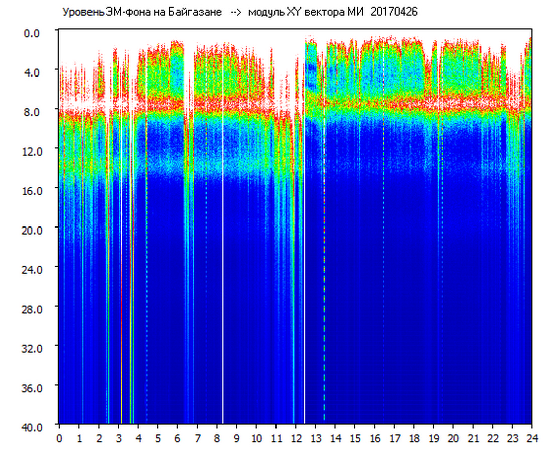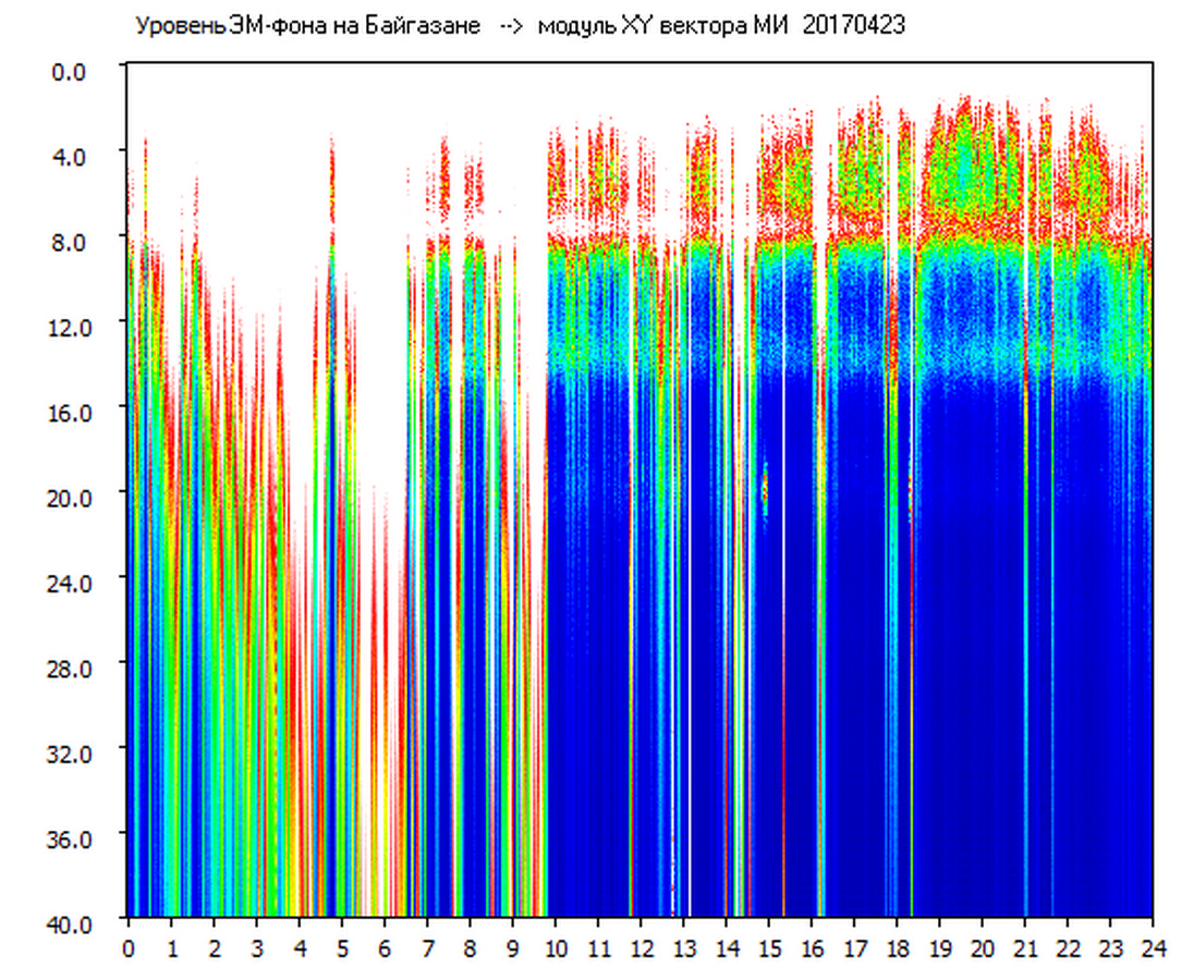 Динамические спектры электромагнитного фона в полосе частот 0 – 40 Гц (Шумановские резонансы)