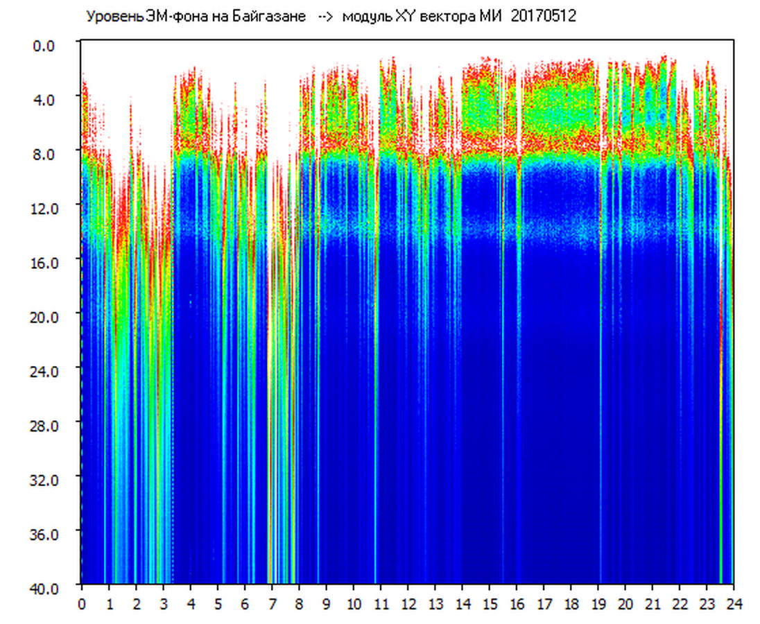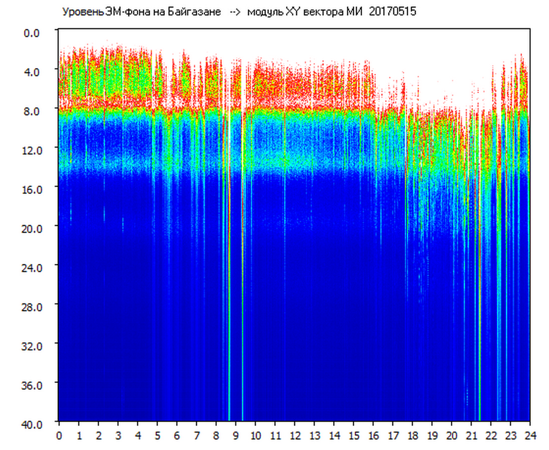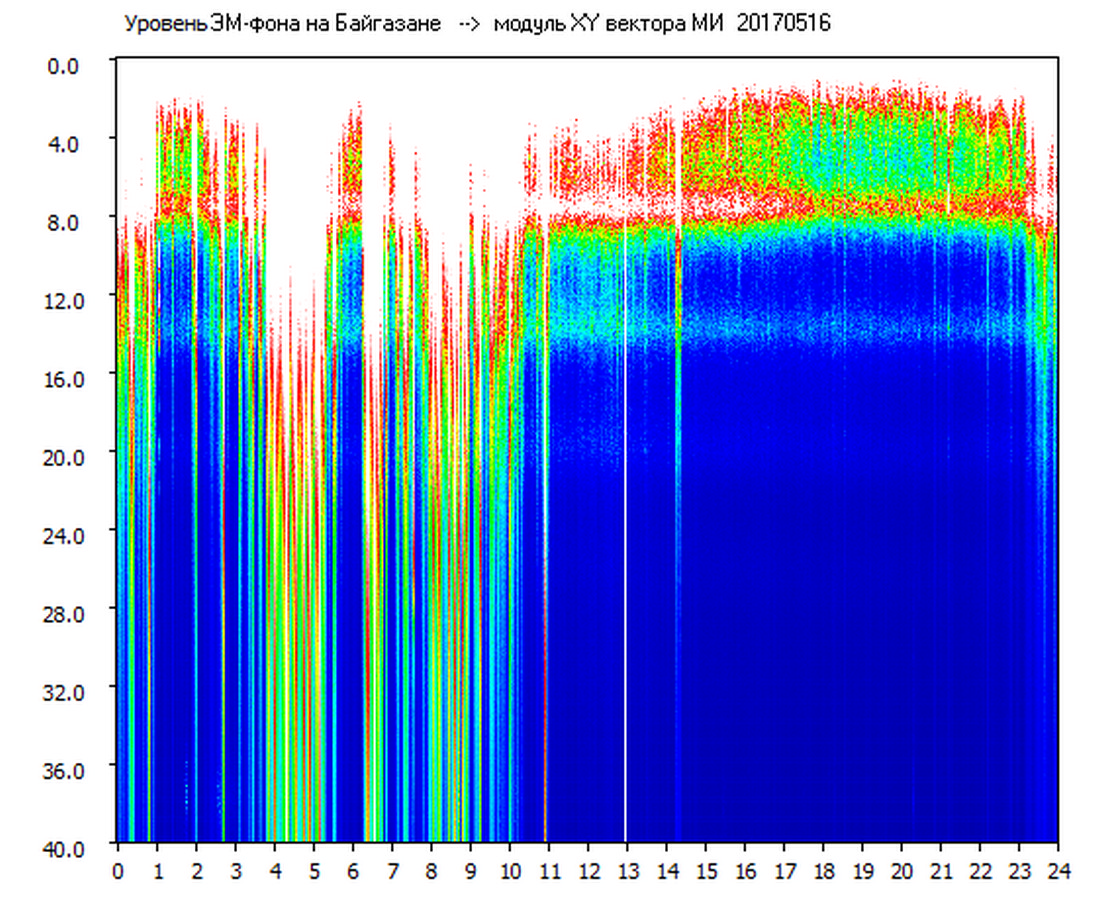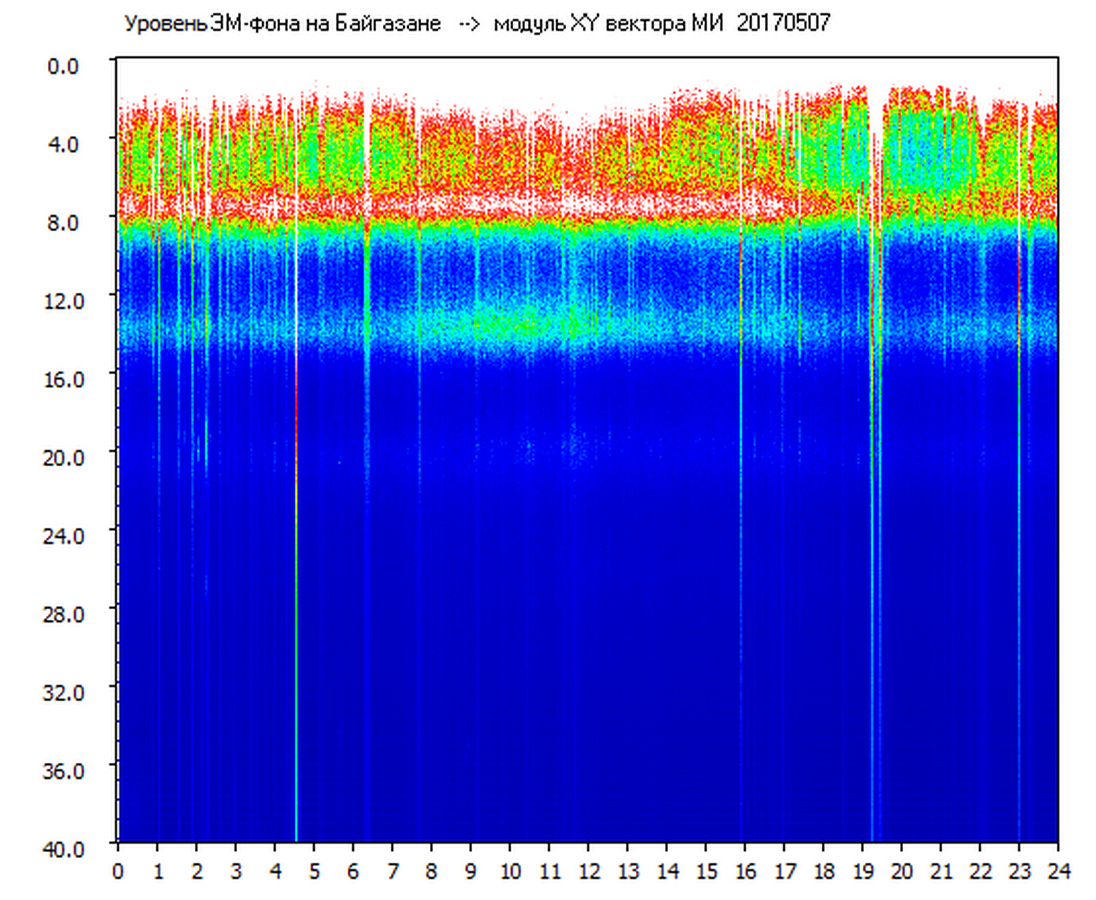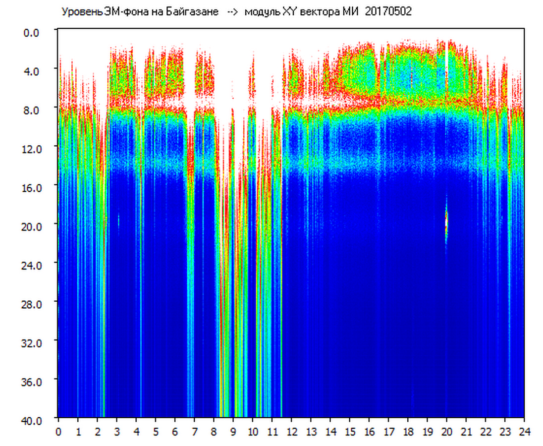 Динамические спектры электромагнитного фона в полосе частот 0 – 40 Гц (Шумановские резонансы)