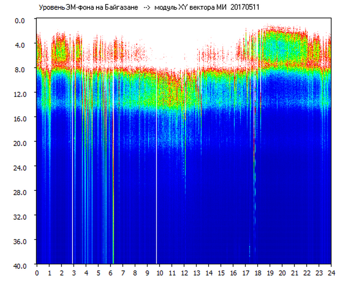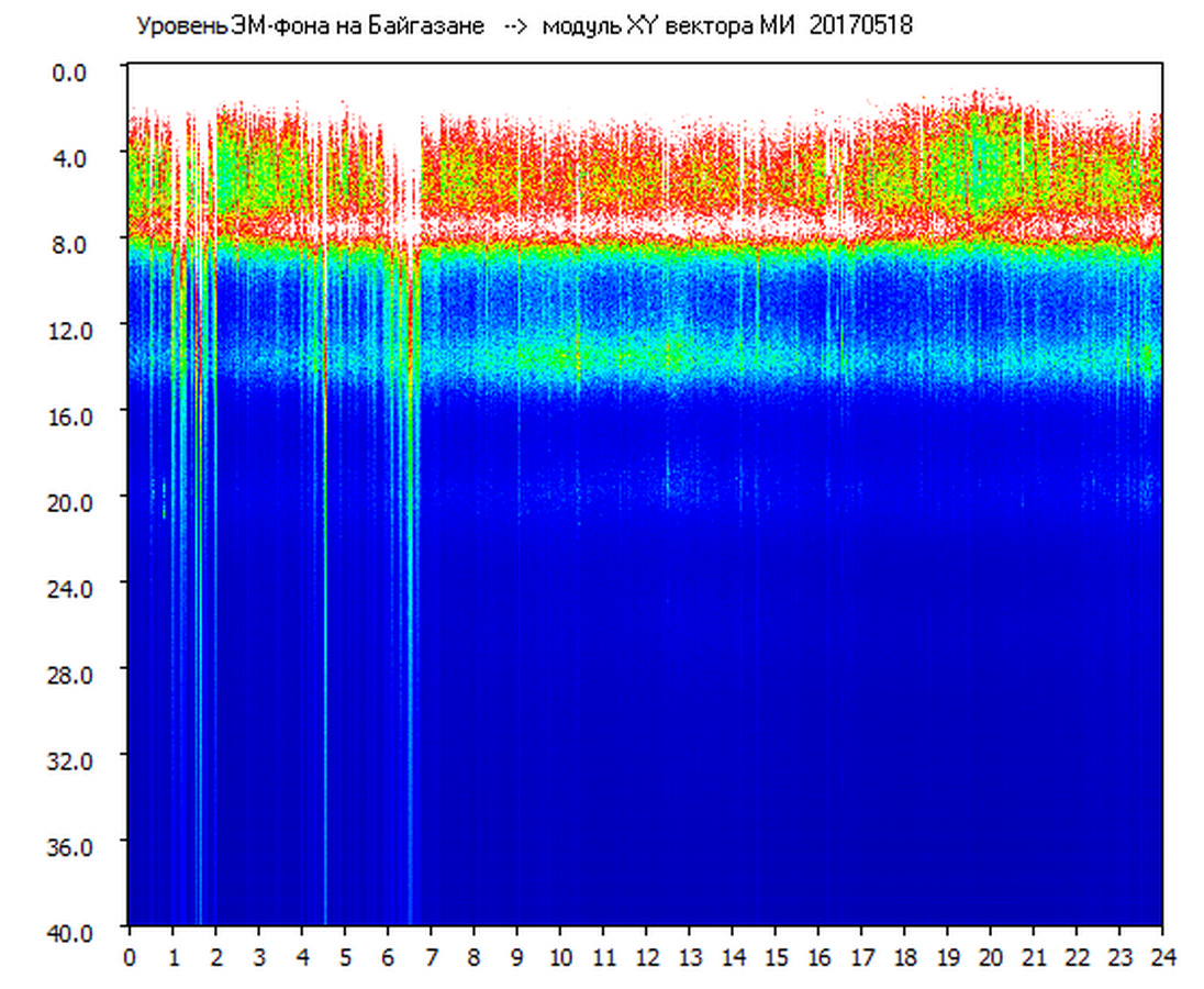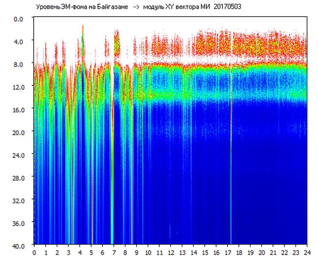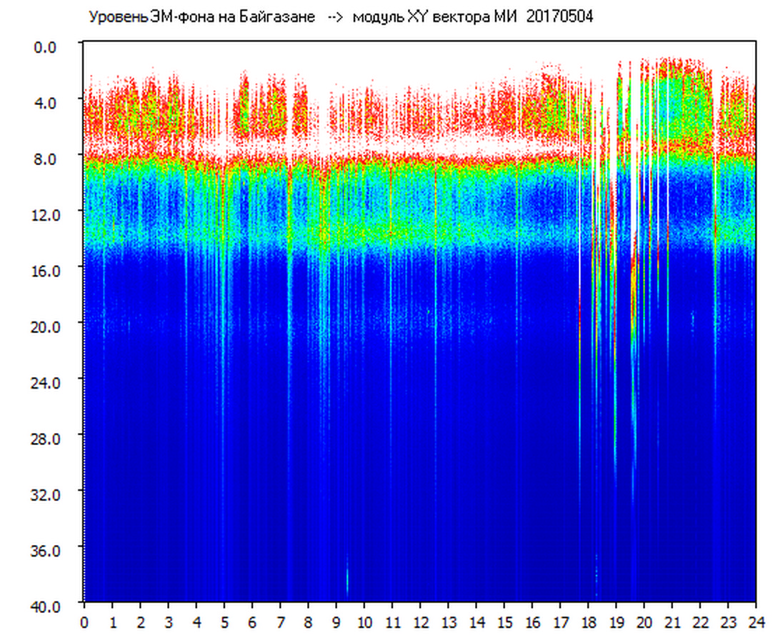 Динамические спектры электромагнитного фона в полосе частот 0 – 40 Гц (Шумановские резонансы)