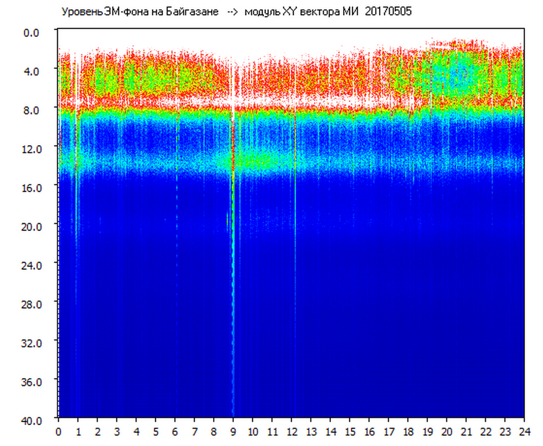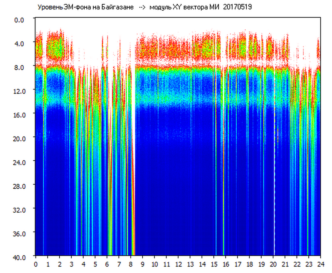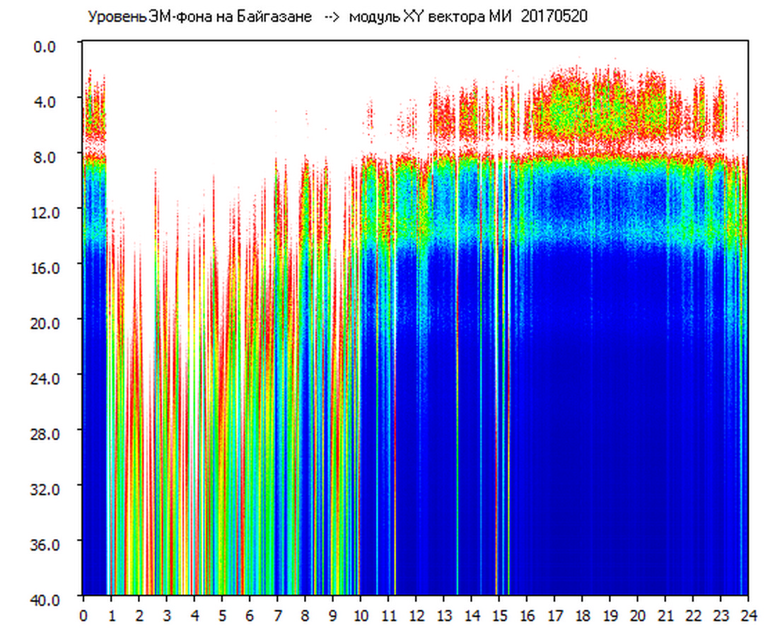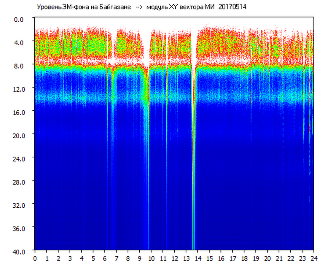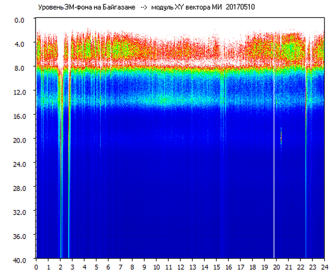Динамические спектры электромагнитного фона в полосе частот 0 – 40 Гц (Шумановские резонансы)