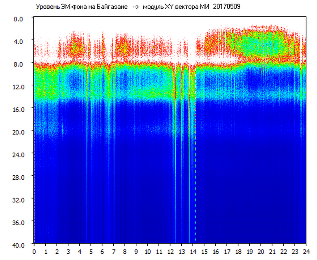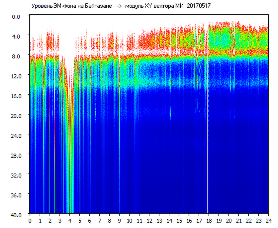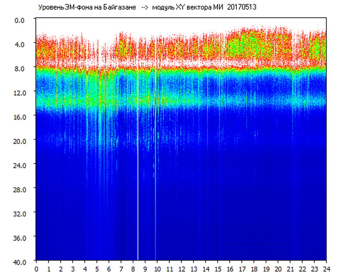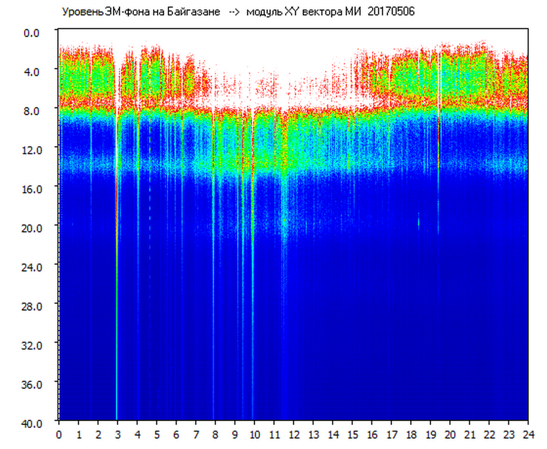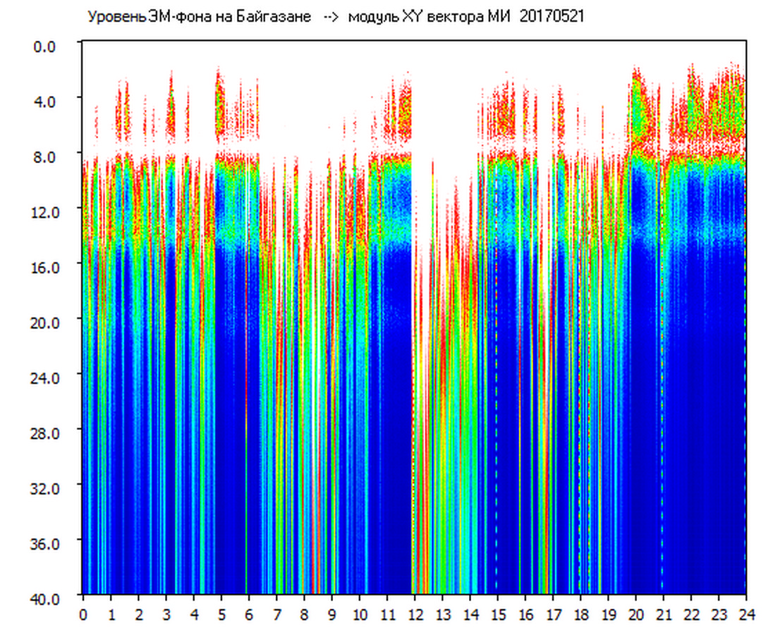 Динамические спектры электромагнитного фона в полосе частот 0 – 40 Гц (Шумановские резонансы)
