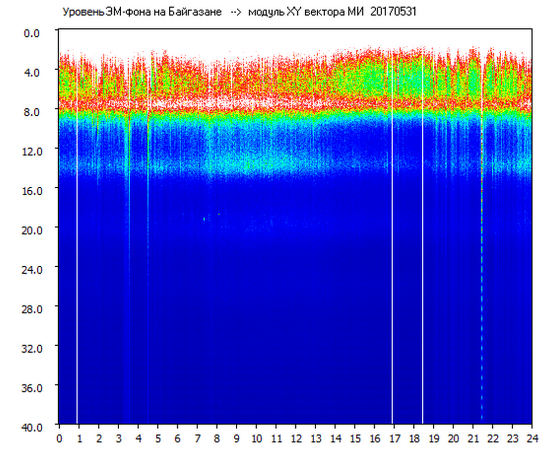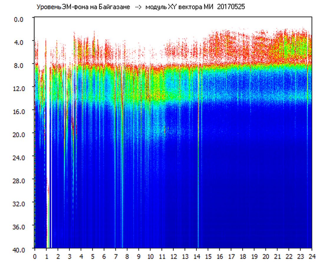 Динамические спектры электромагнитного фона в полосе частот 0 – 40 Гц (Шумановские резонансы)
