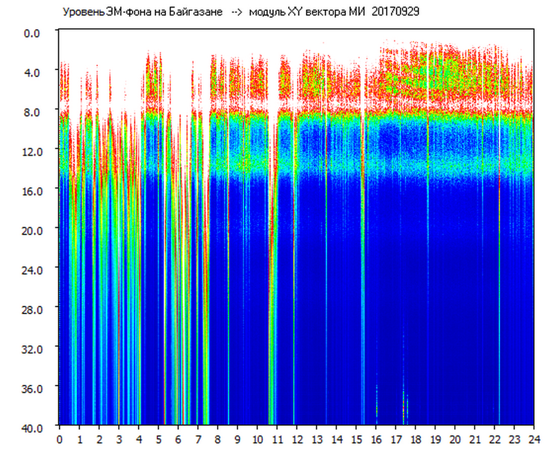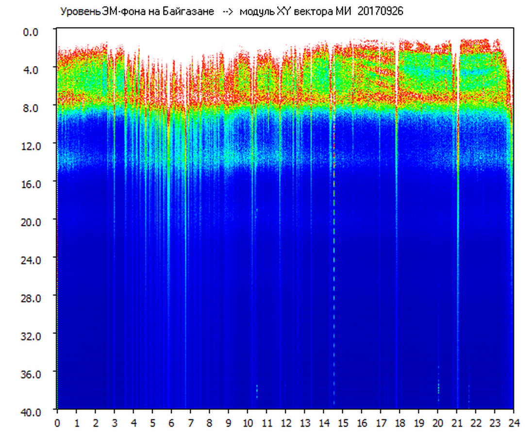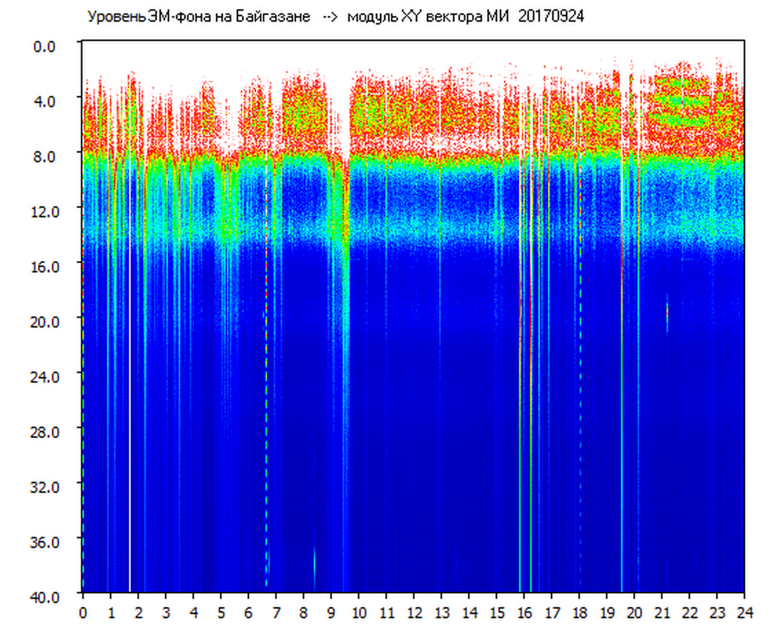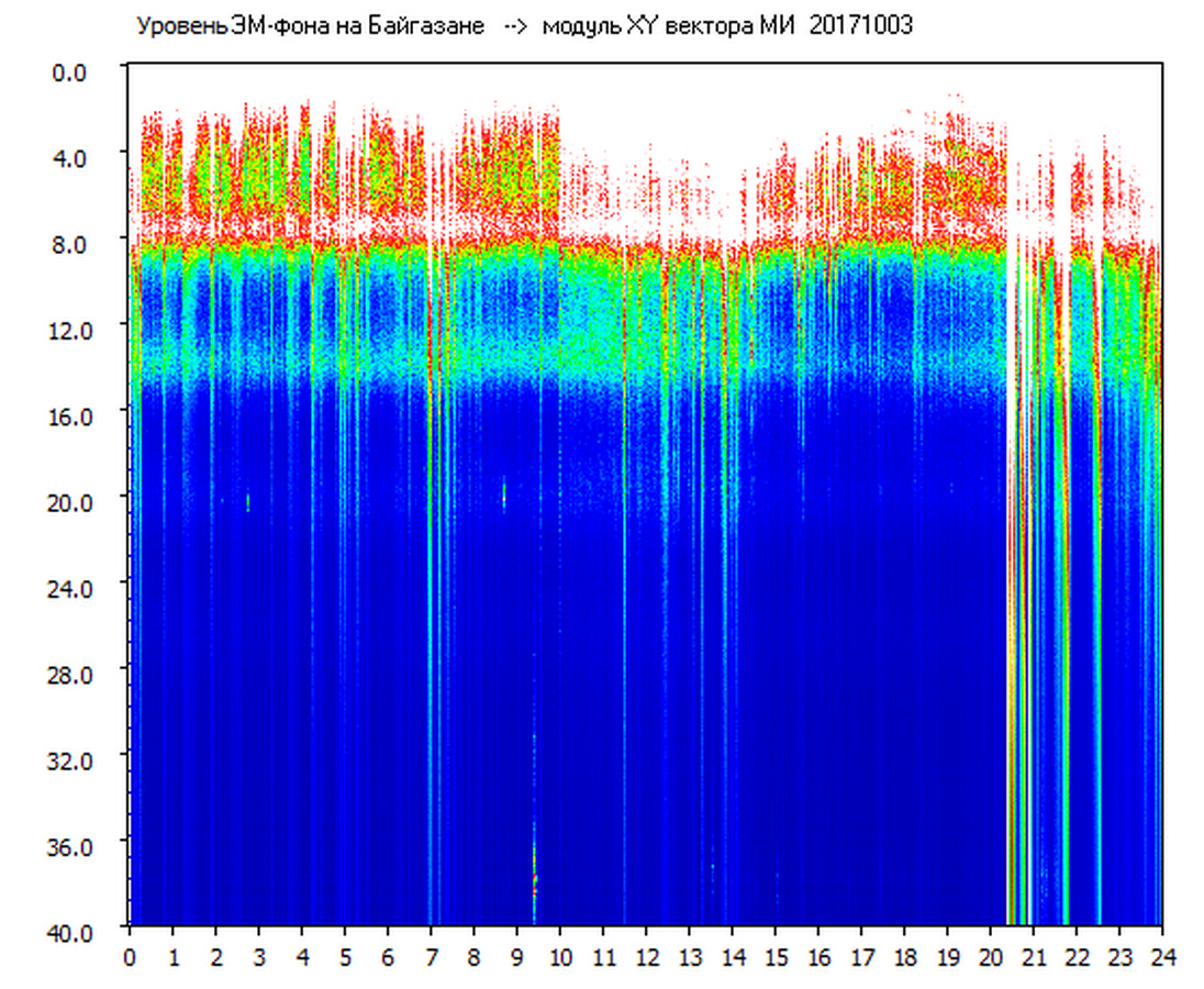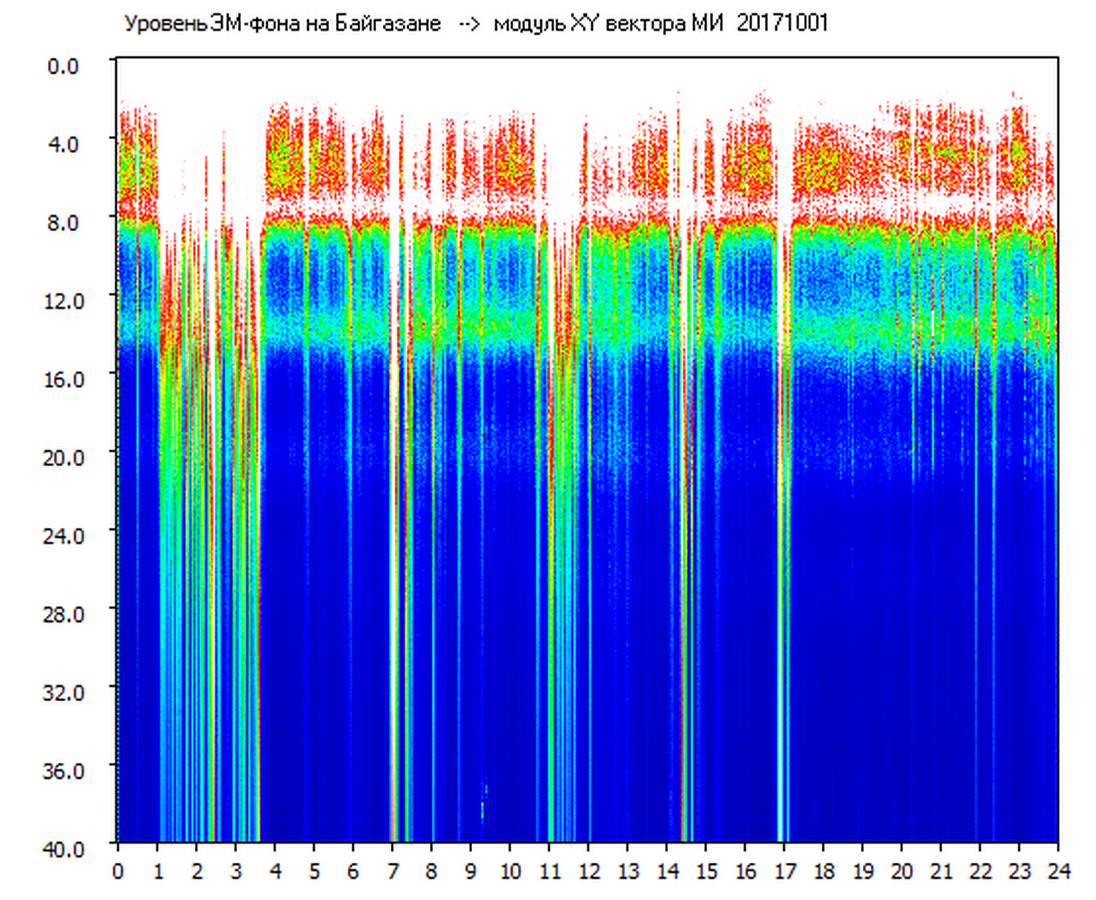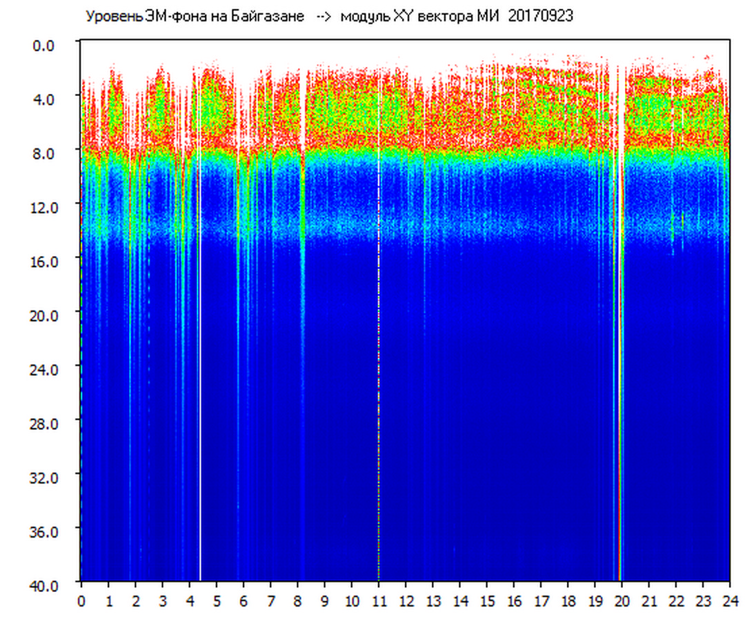 Динамические спектры электромагнитного фона в полосе частот 0 – 40 Гц (Шумановские резонансы)
