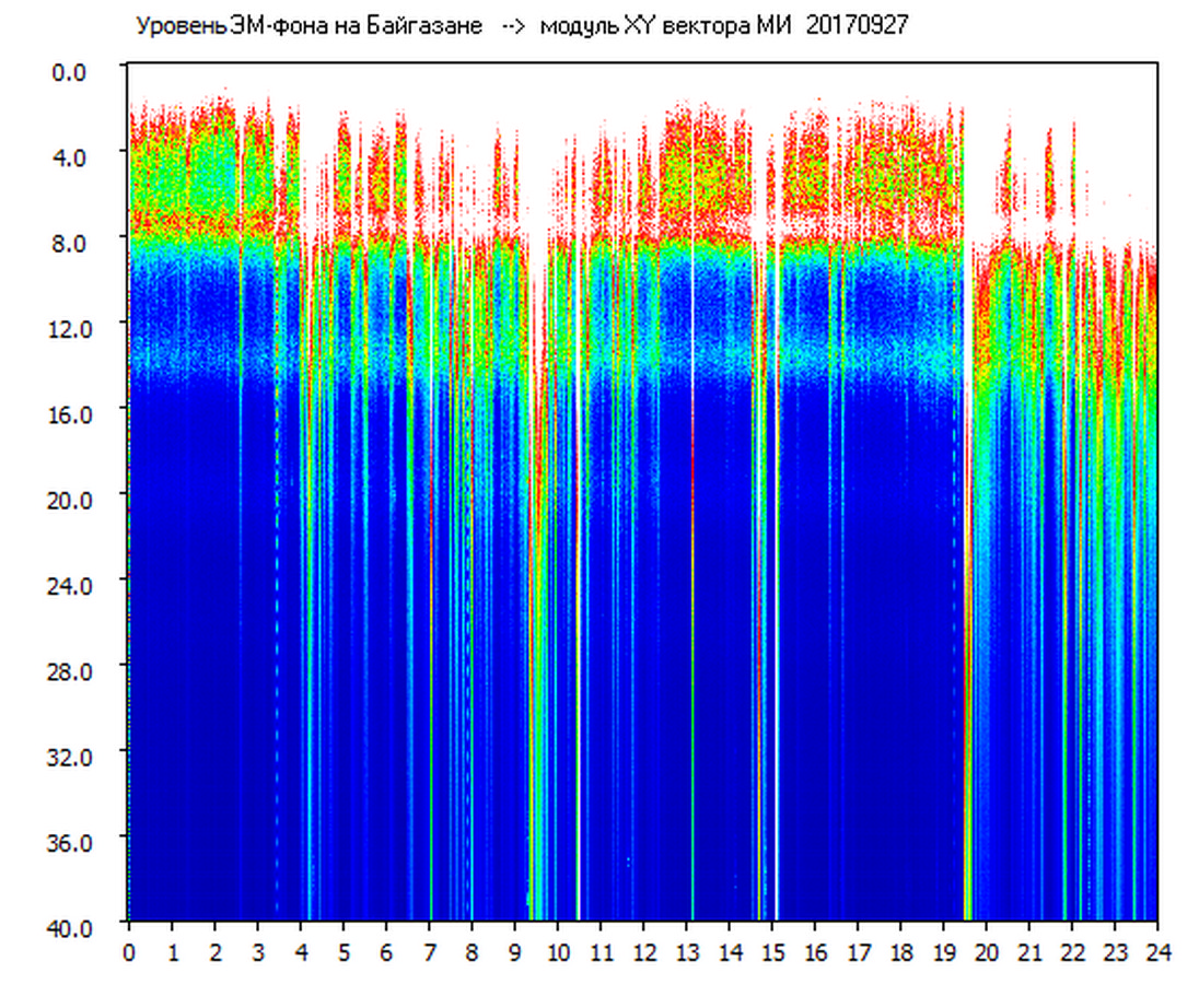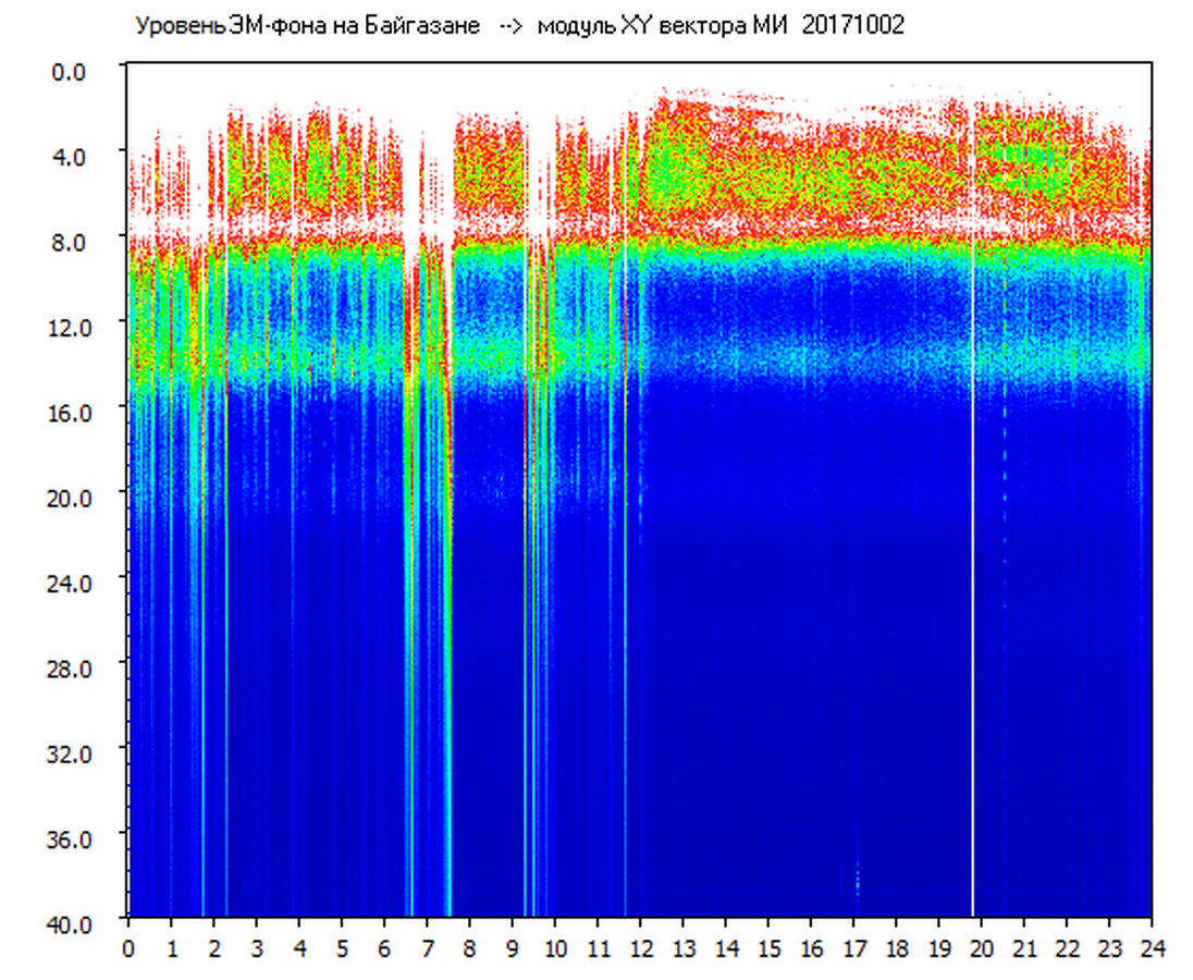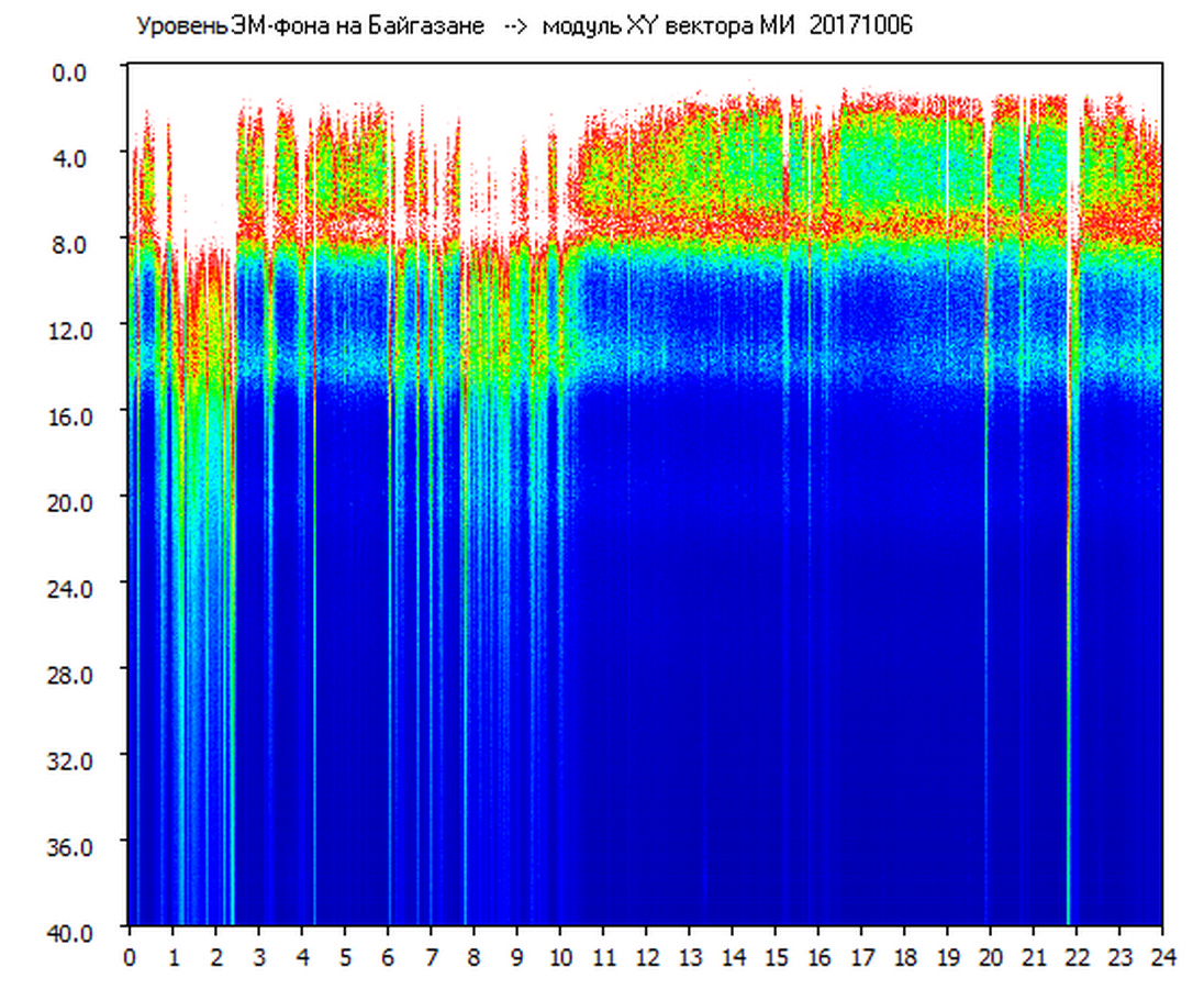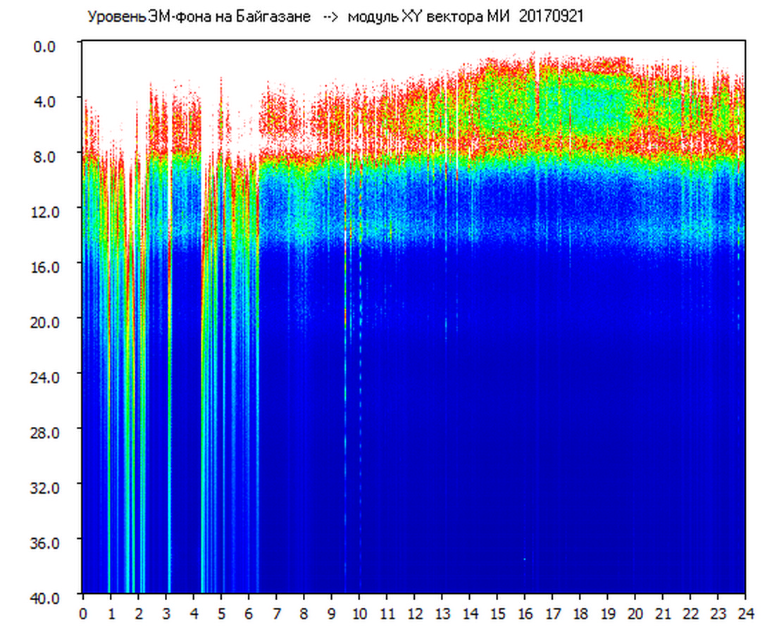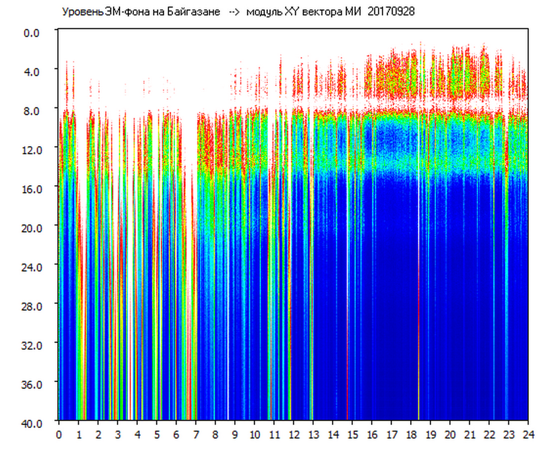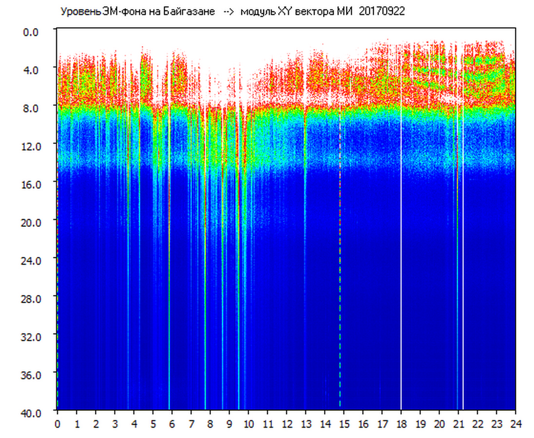 Динамические спектры электромагнитного фона в полосе частот 0 – 40 Гц (Шумановские резонансы)