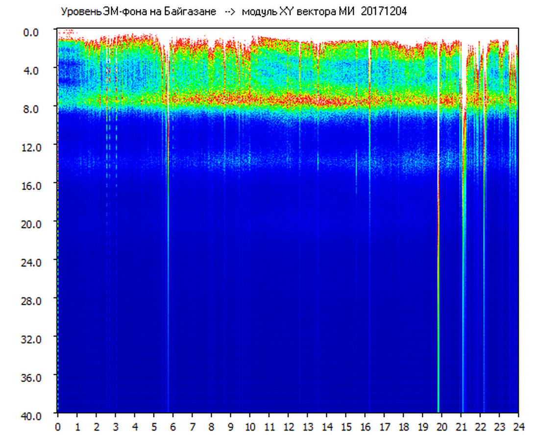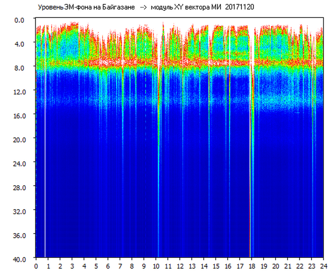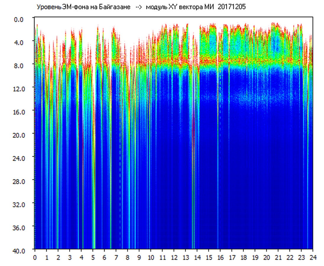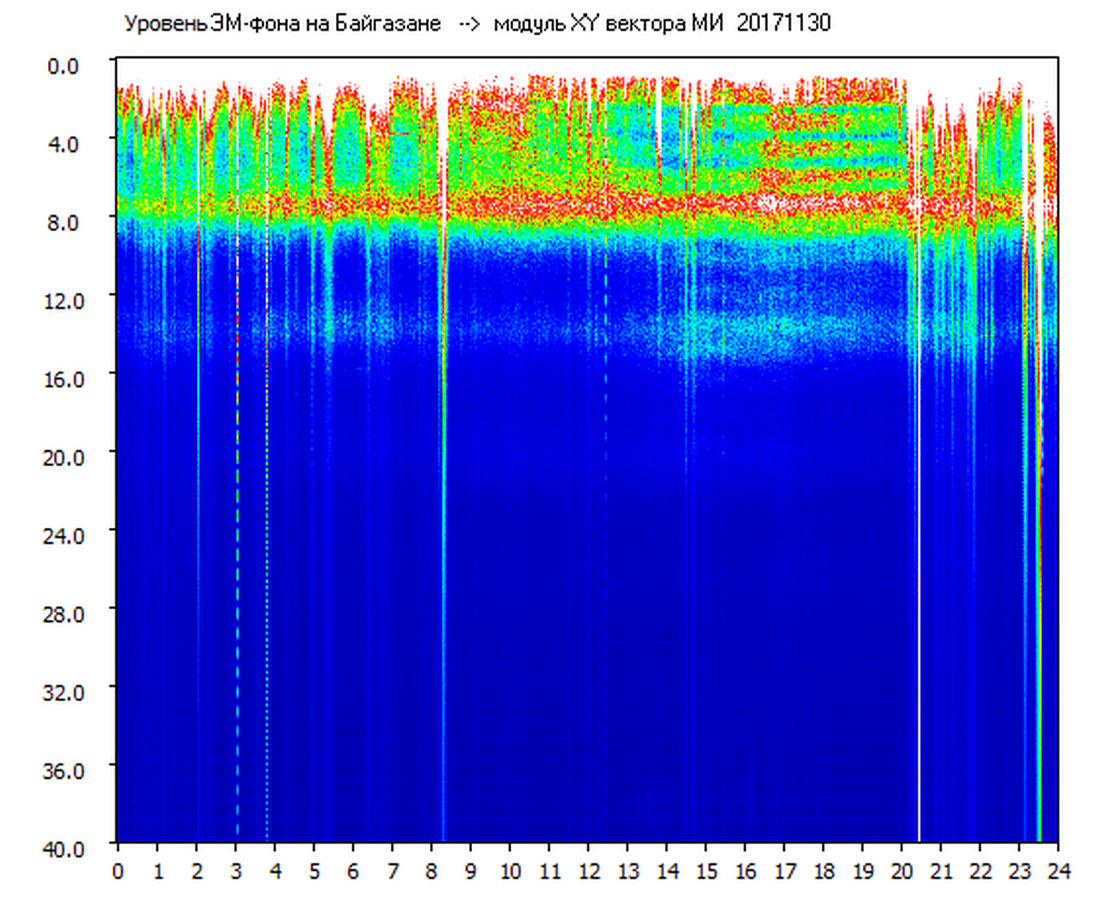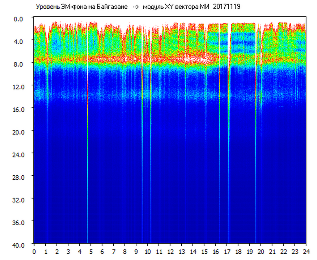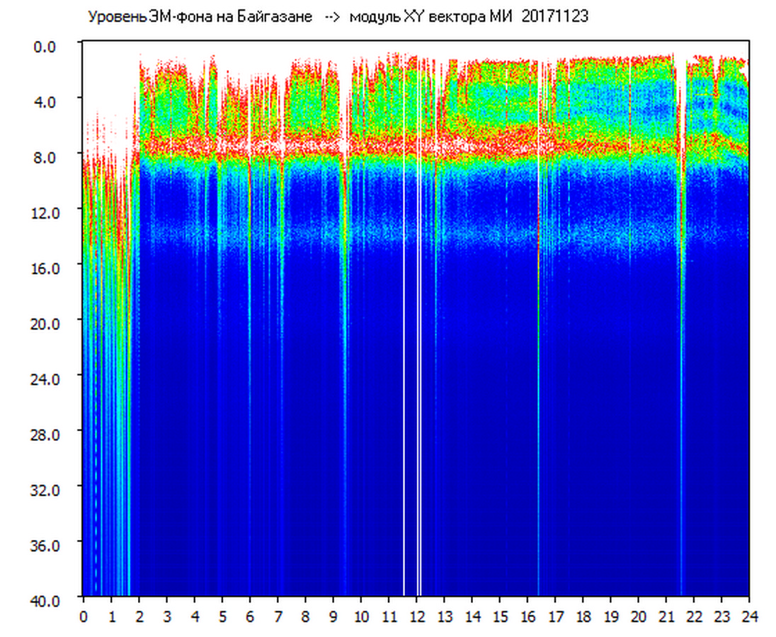 Динамические спектры электромагнитного фона в полосе частот 0 – 40 Гц (Шумановские резонансы)