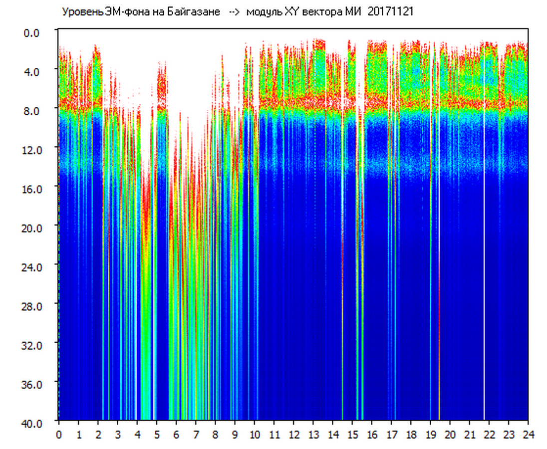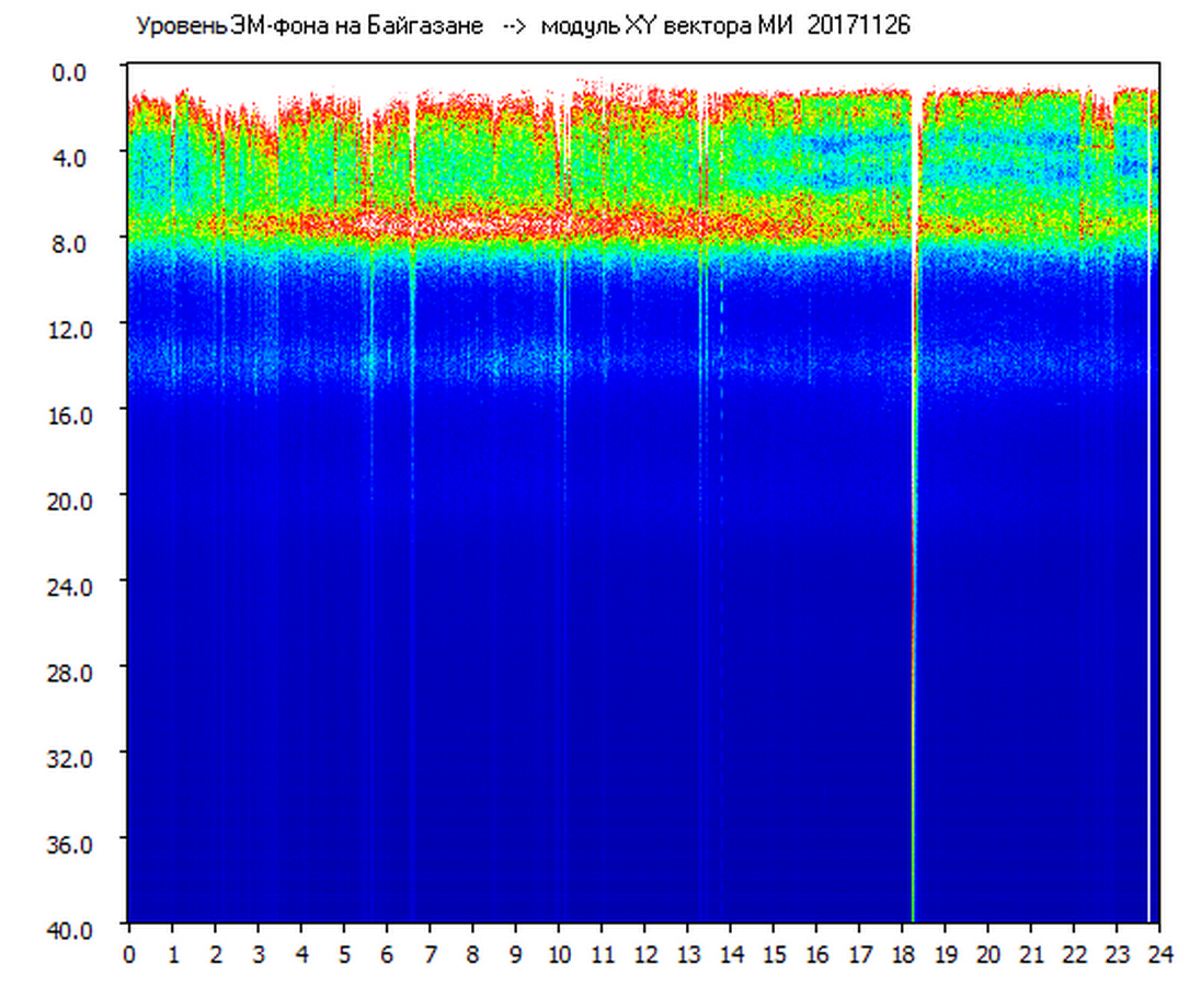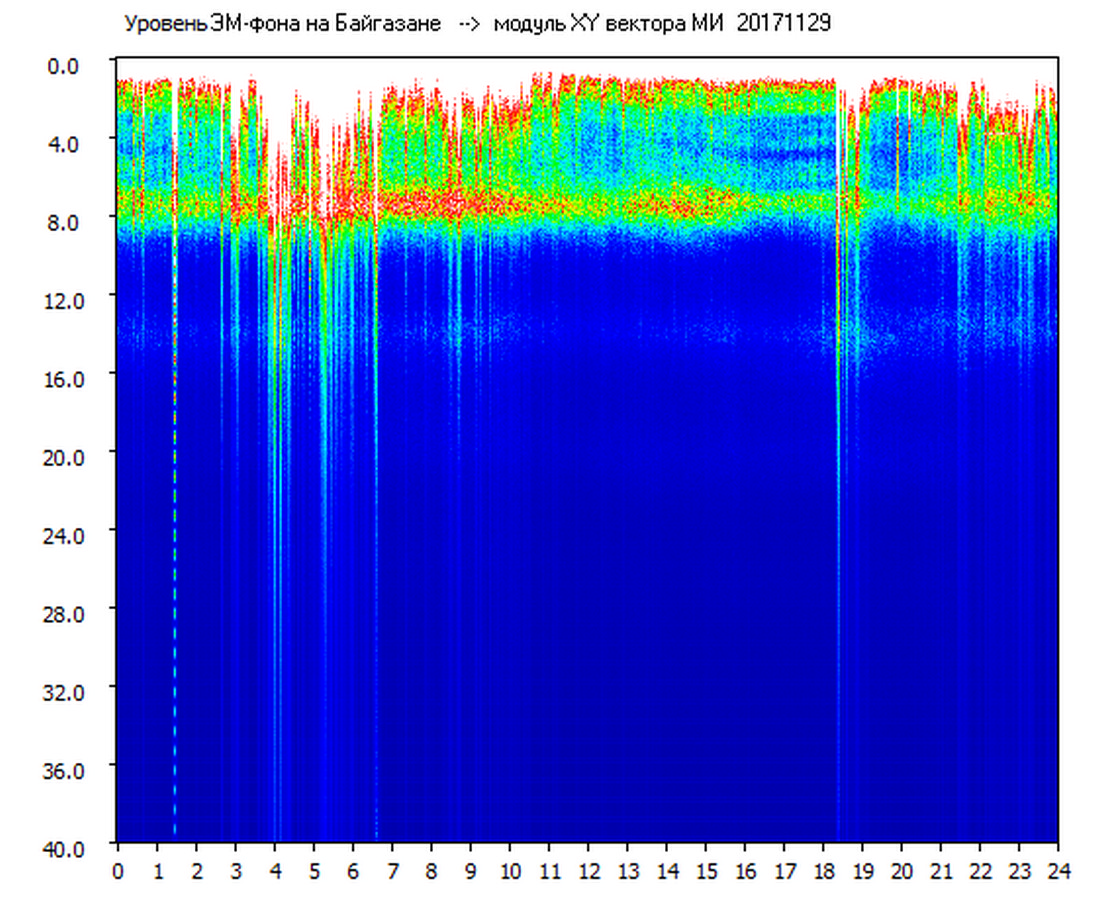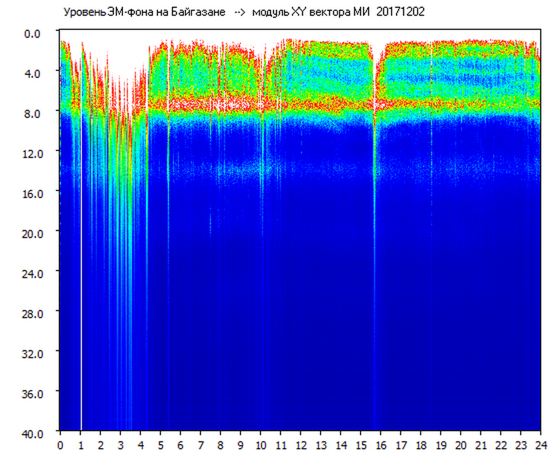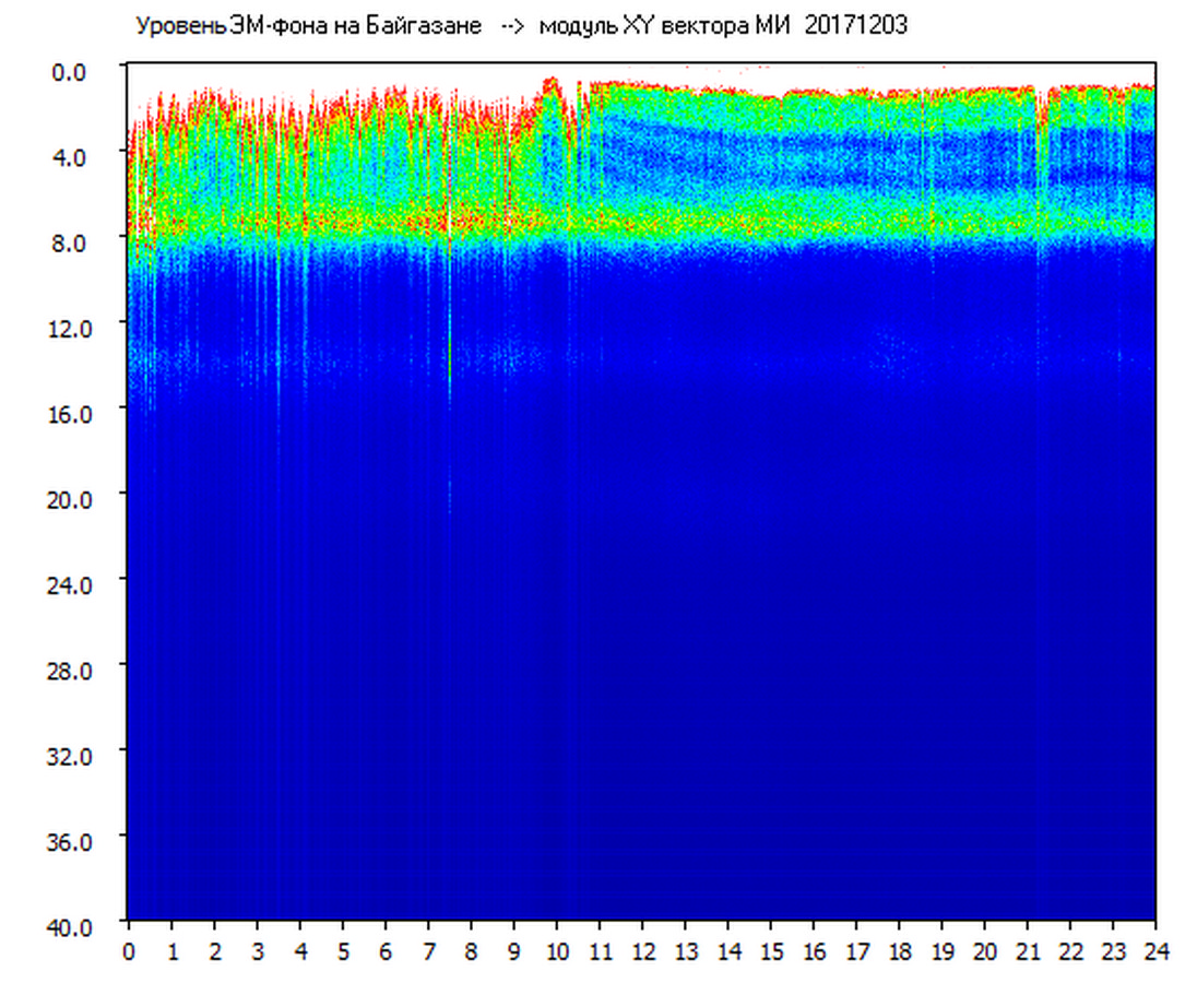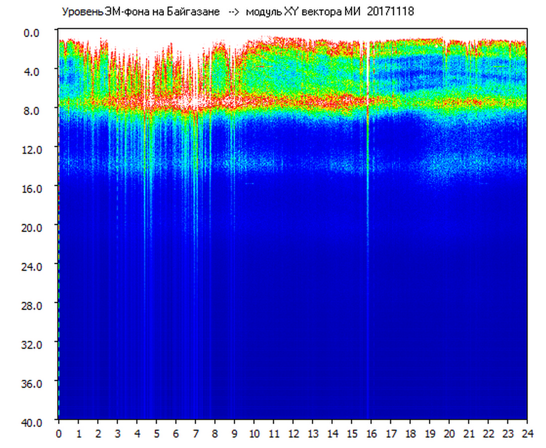 Динамические спектры электромагнитного фона в полосе частот 0 – 40 Гц (Шумановские резонансы)