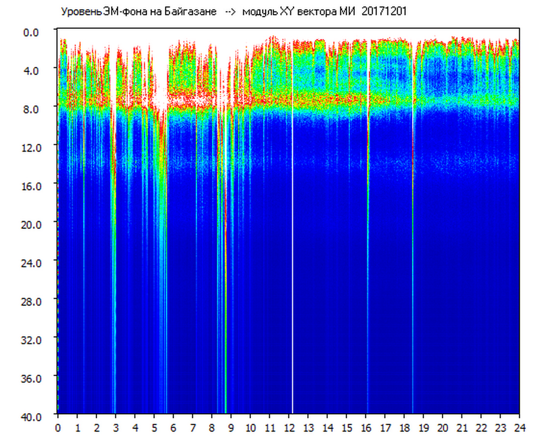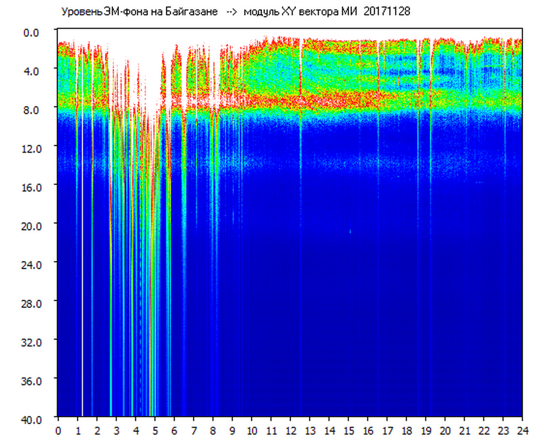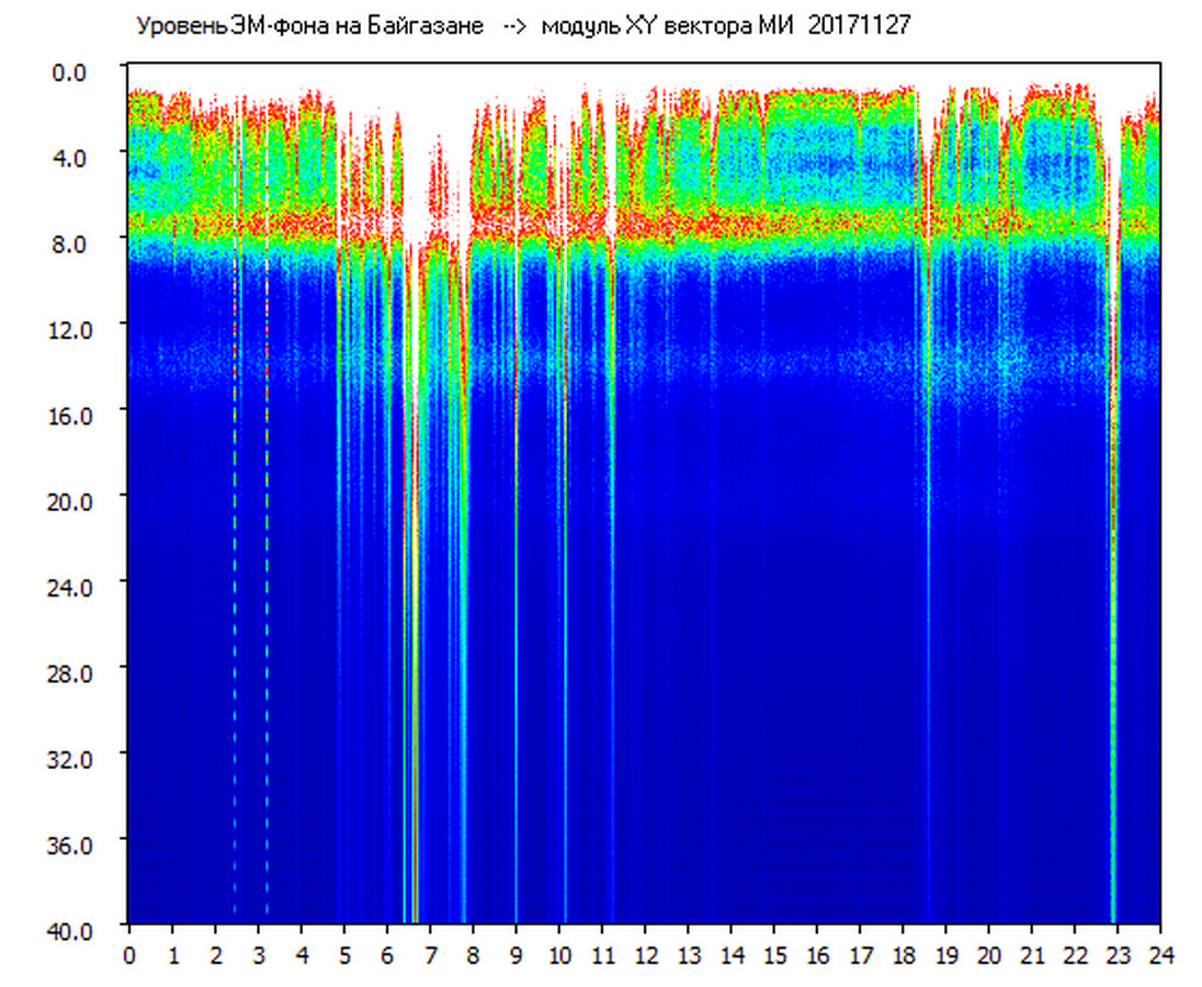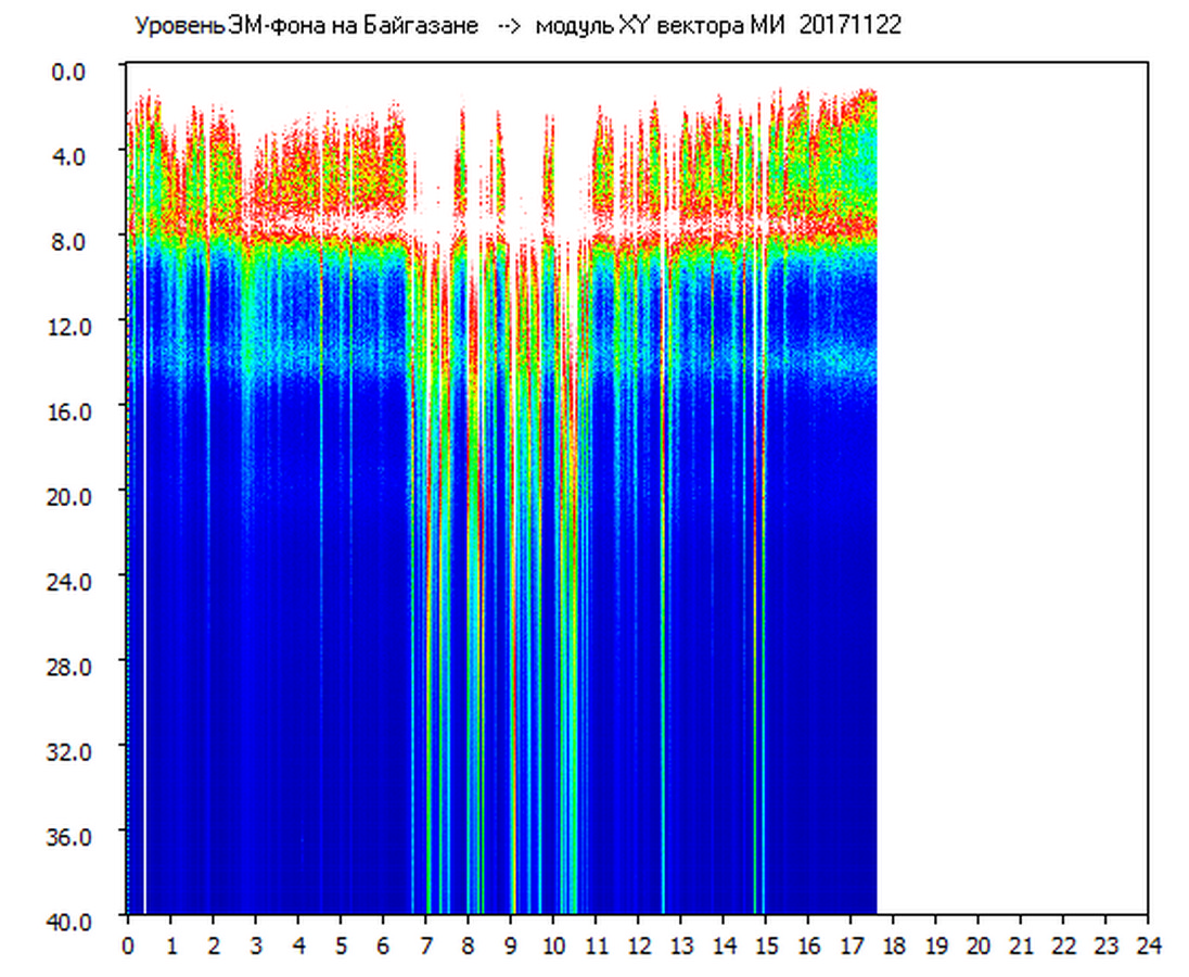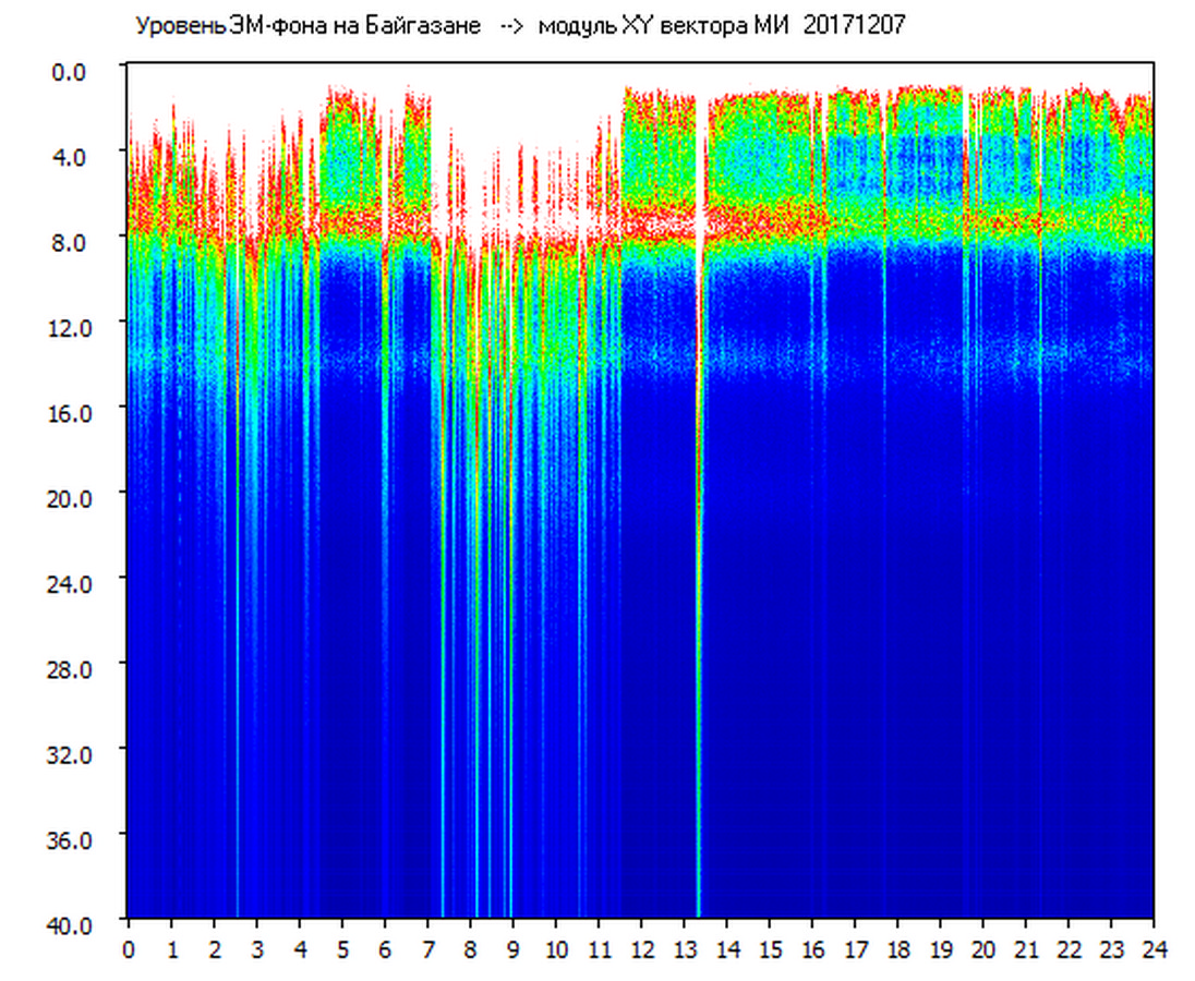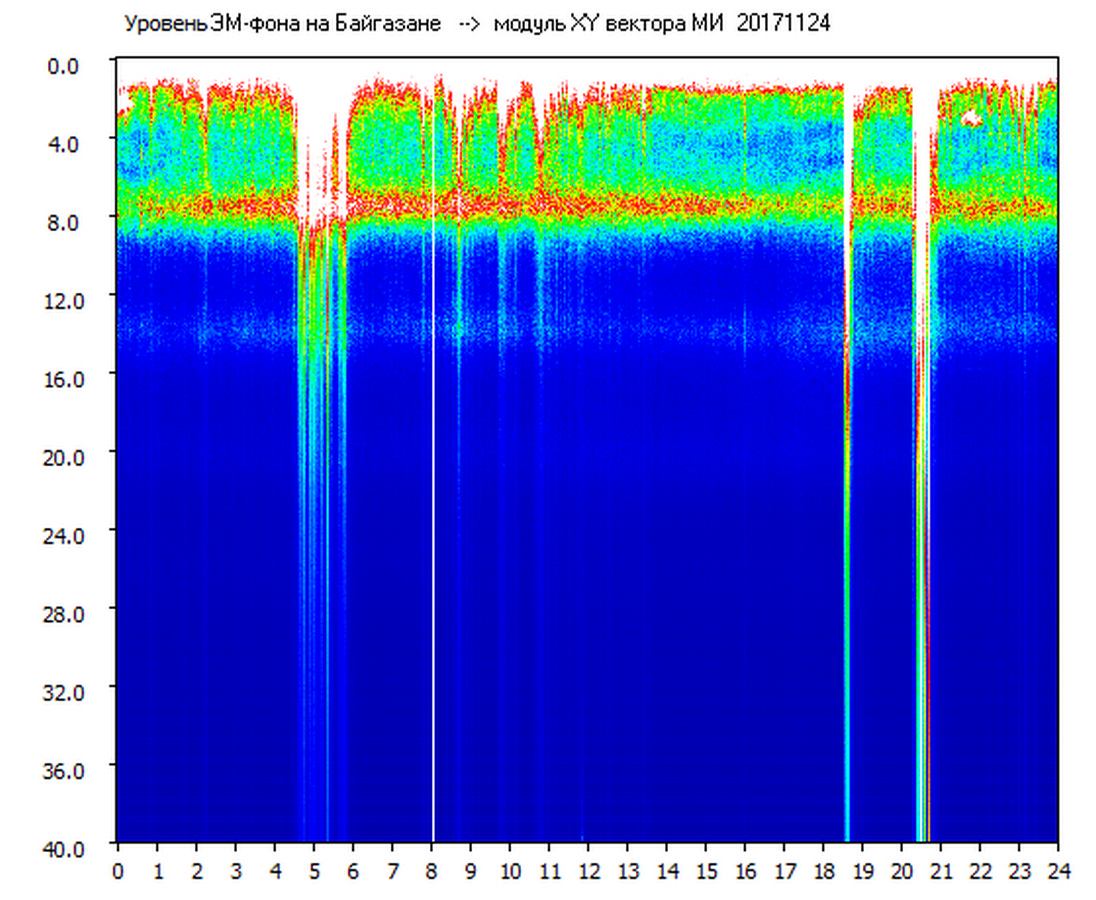 Динамические спектры электромагнитного фона в полосе частот 0 – 40 Гц (Шумановские резонансы)