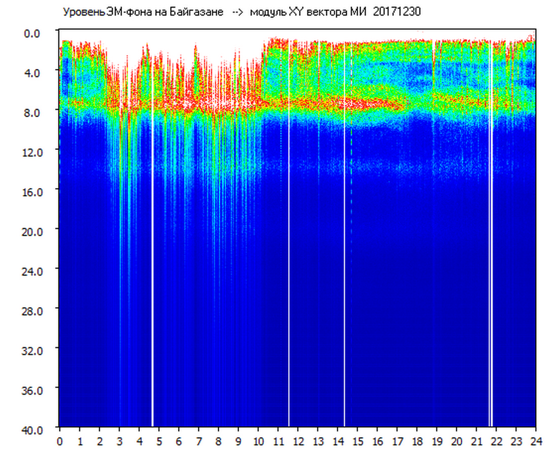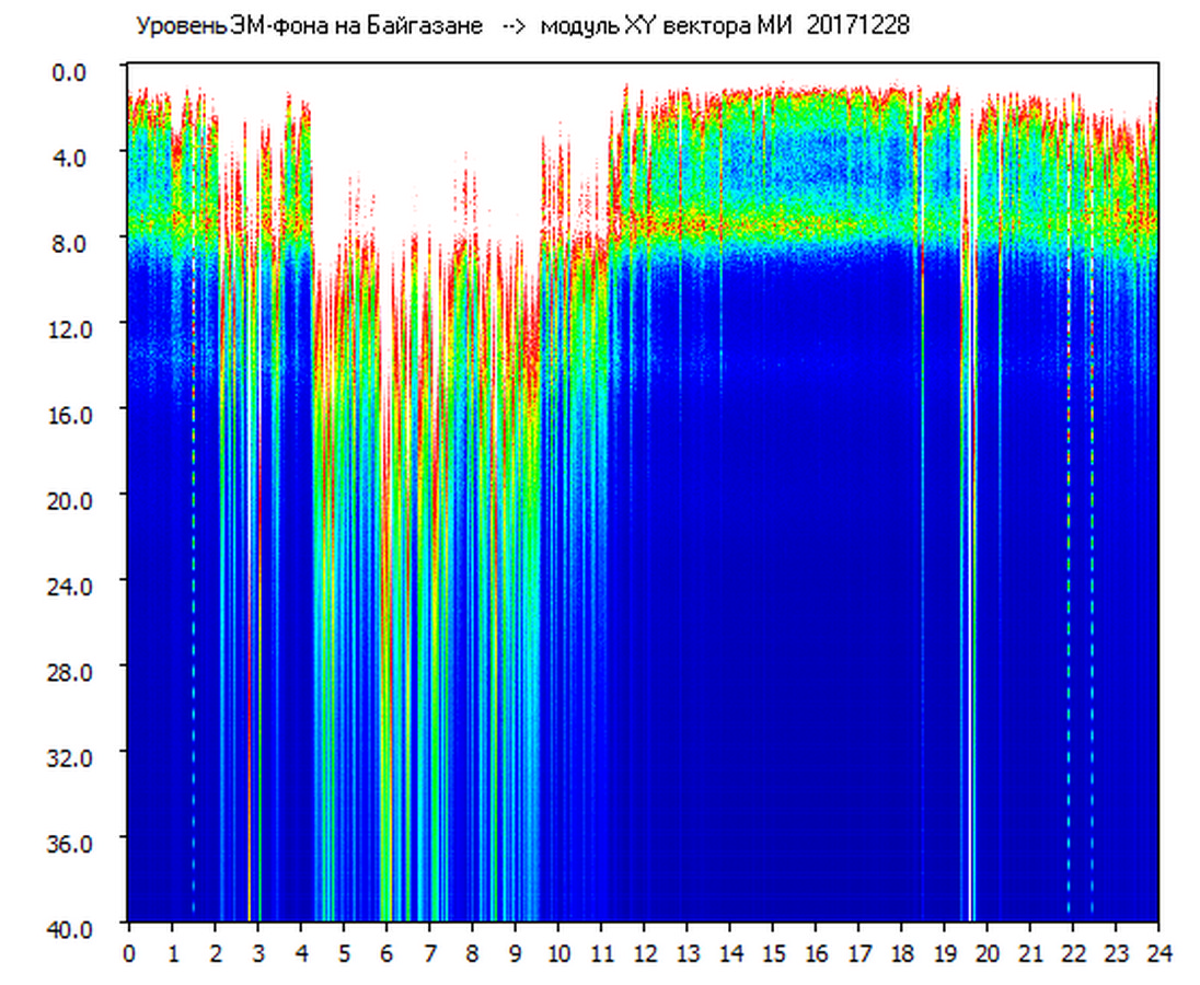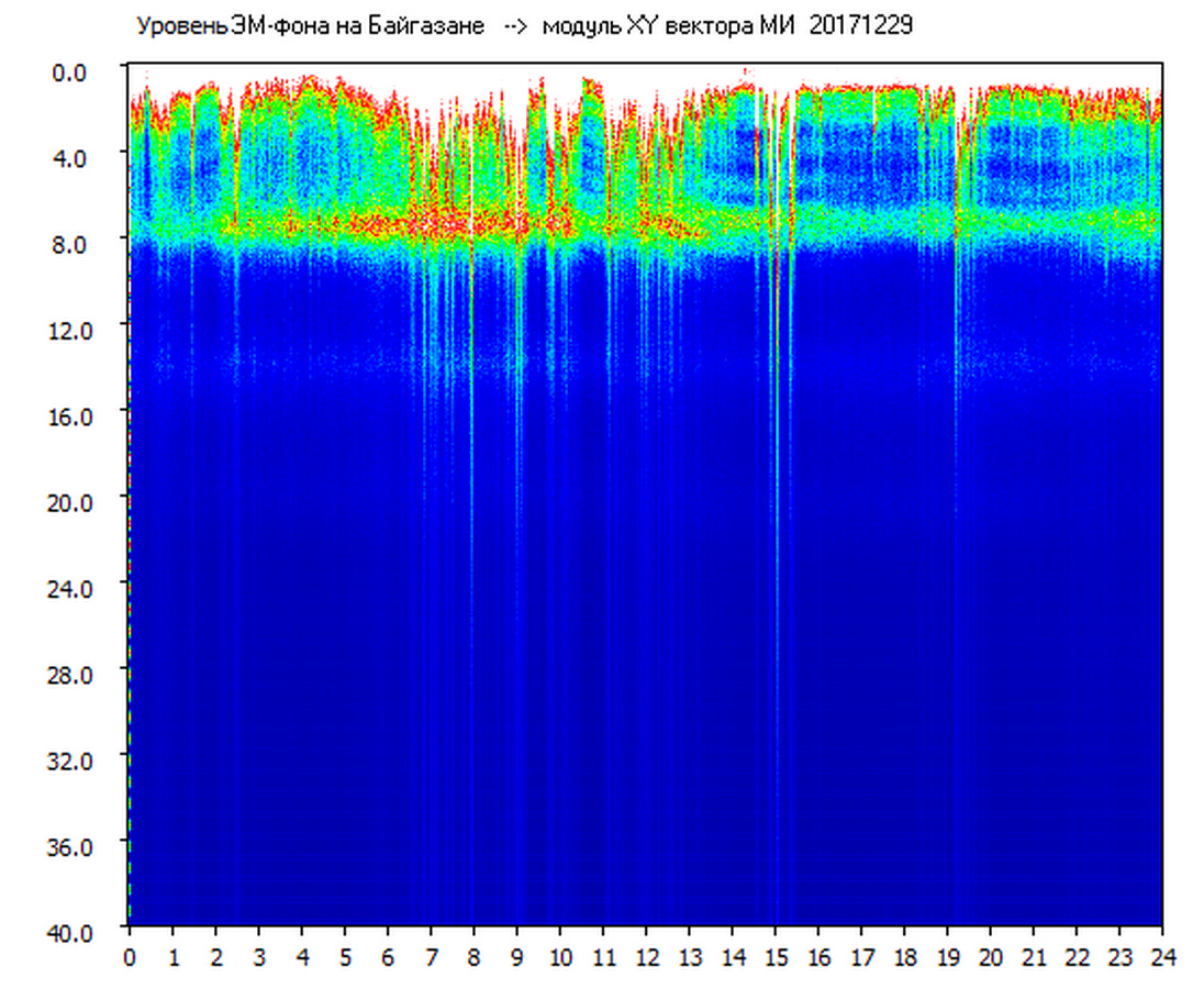 Динамические спектры электромагнитного фона в полосе частот 0 – 40 Гц (Шумановские резонансы)