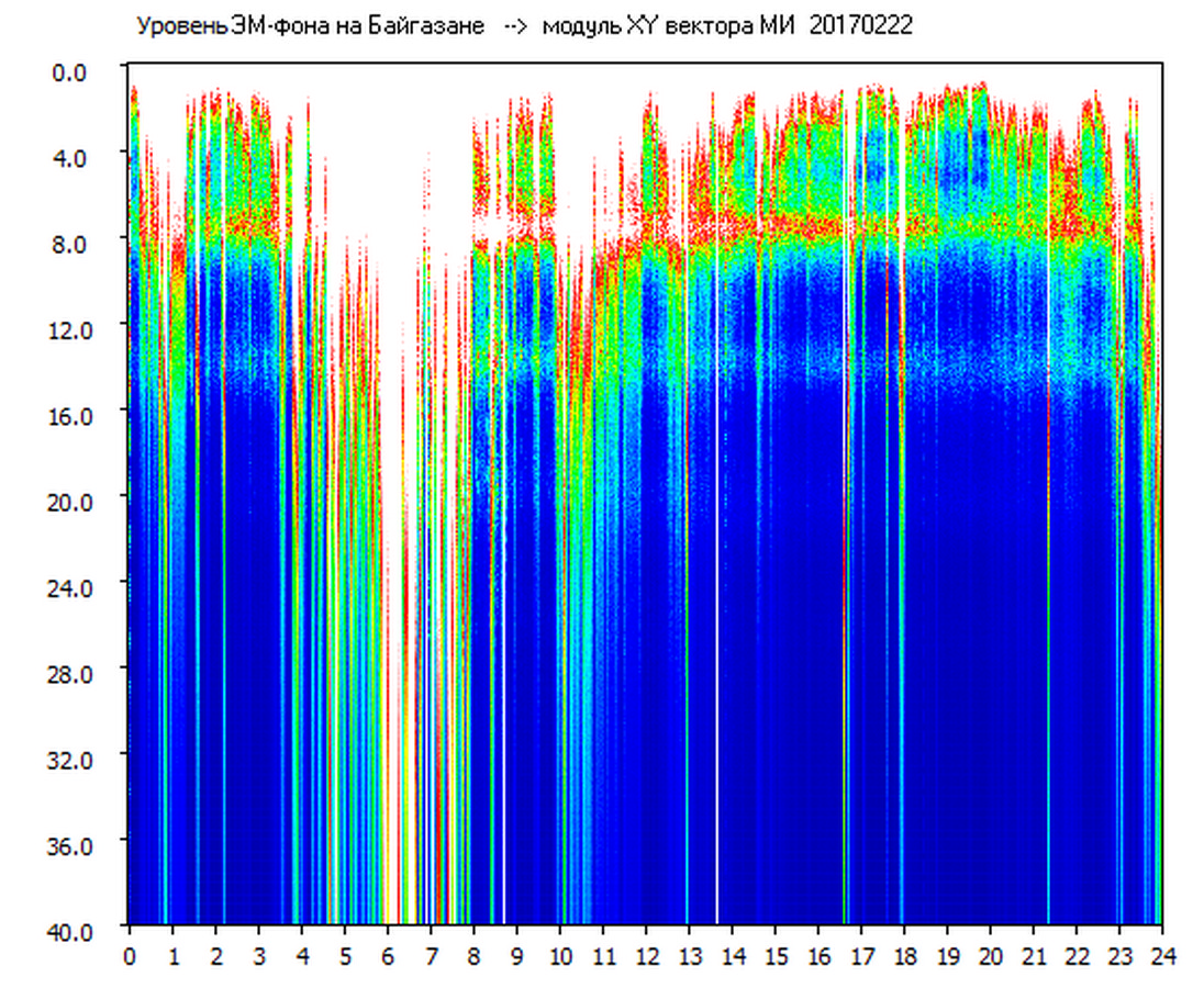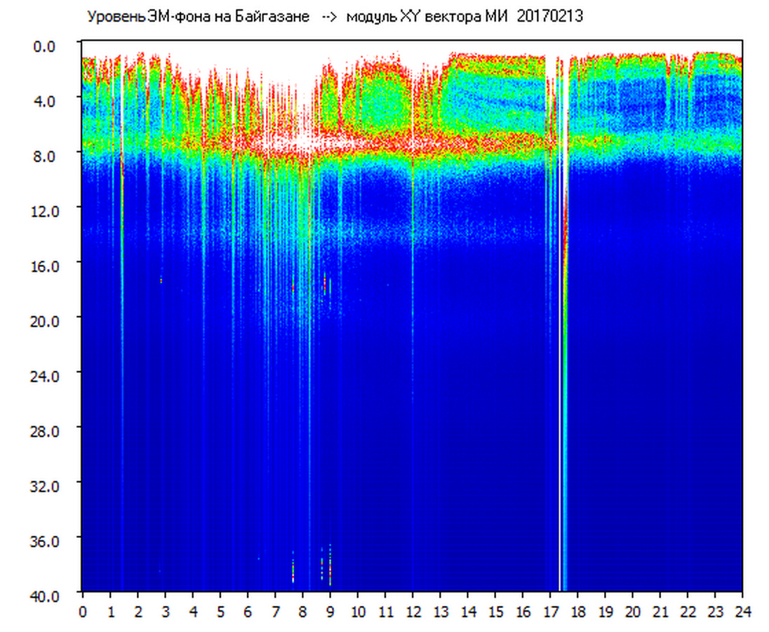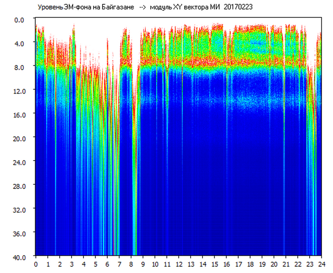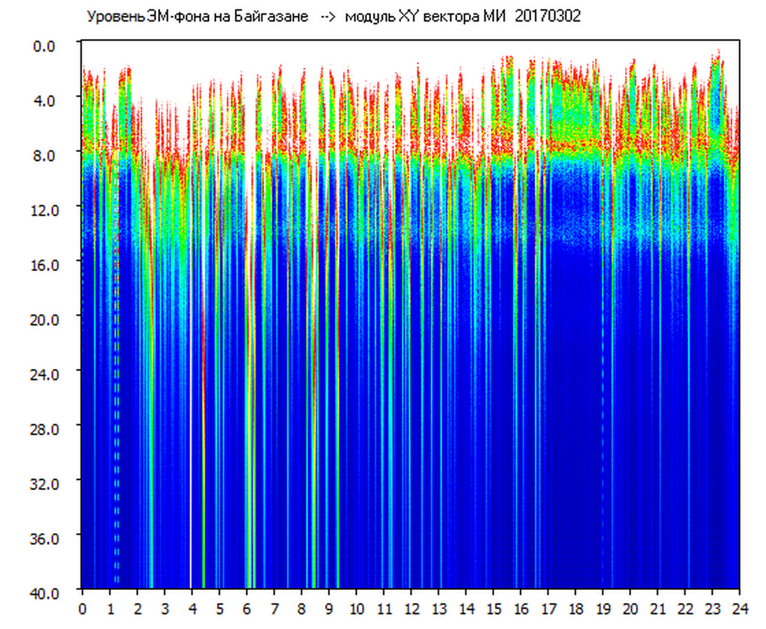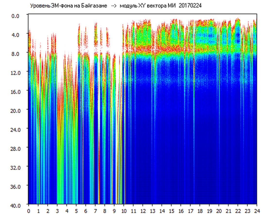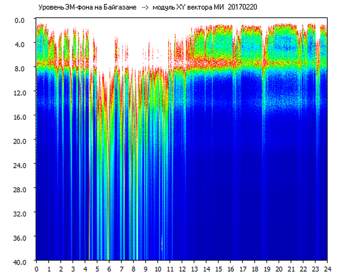 Динамические спектры электромагнитного фона в полосе частот 0 – 40 Гц (Шумановские резонансы)