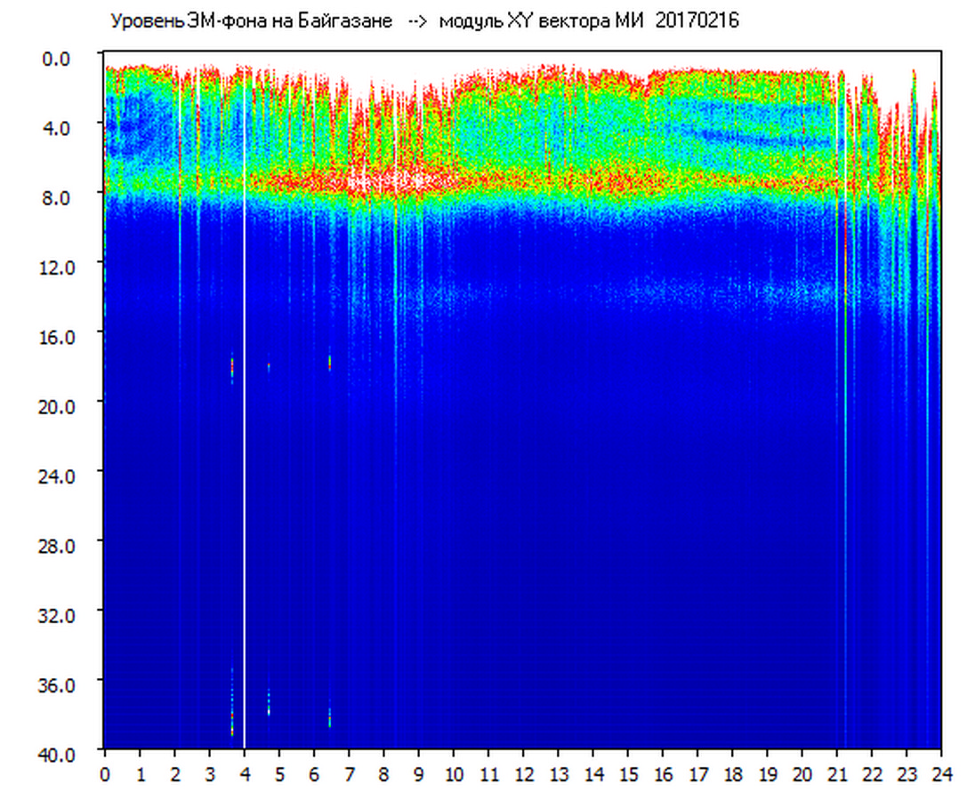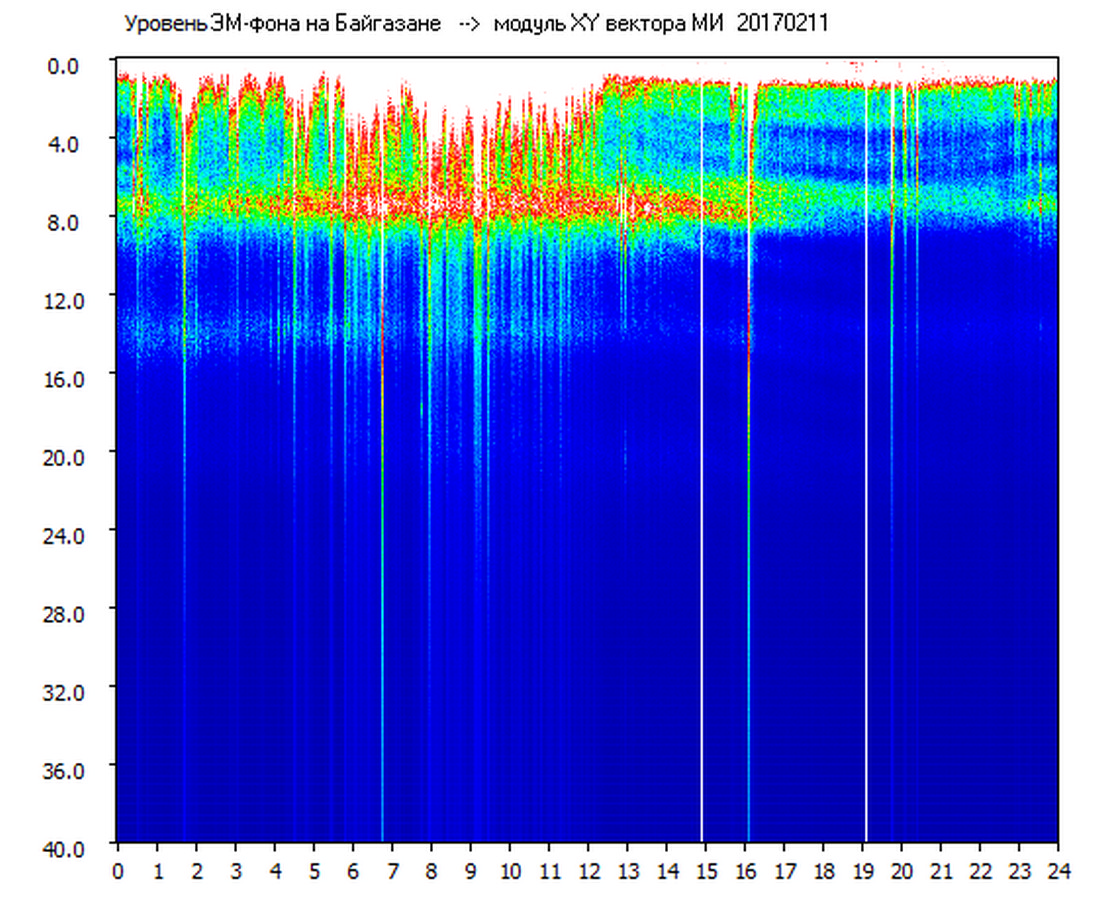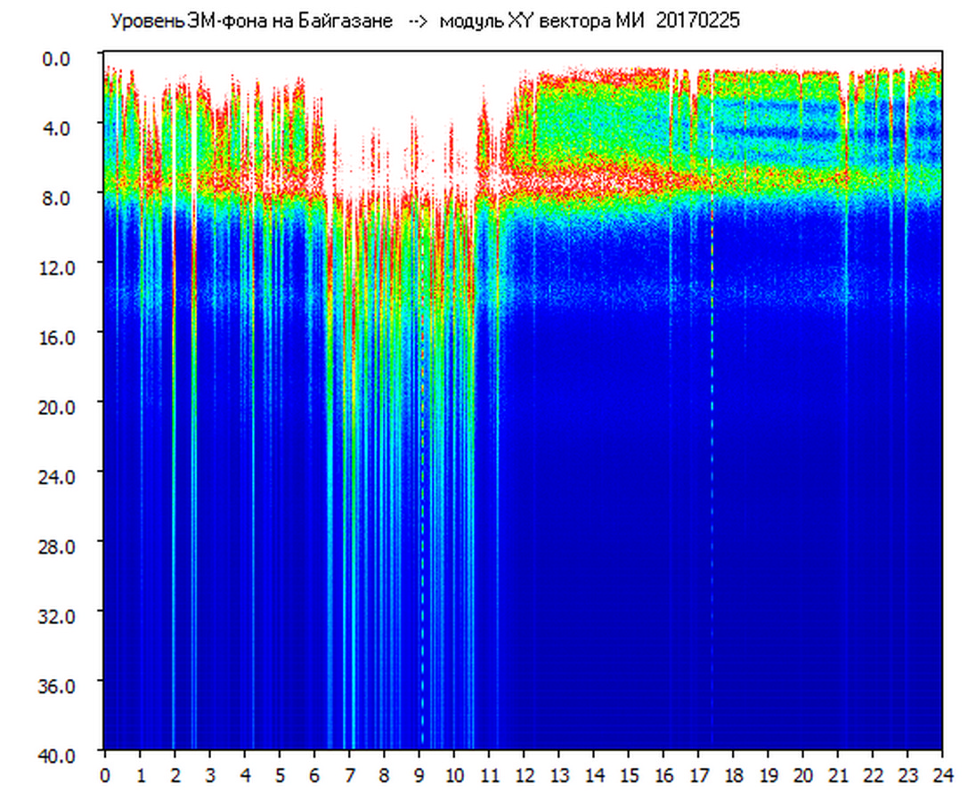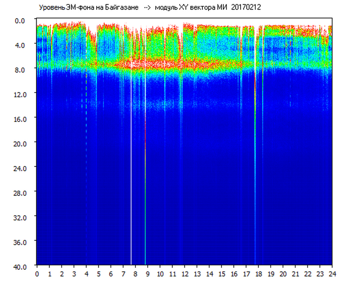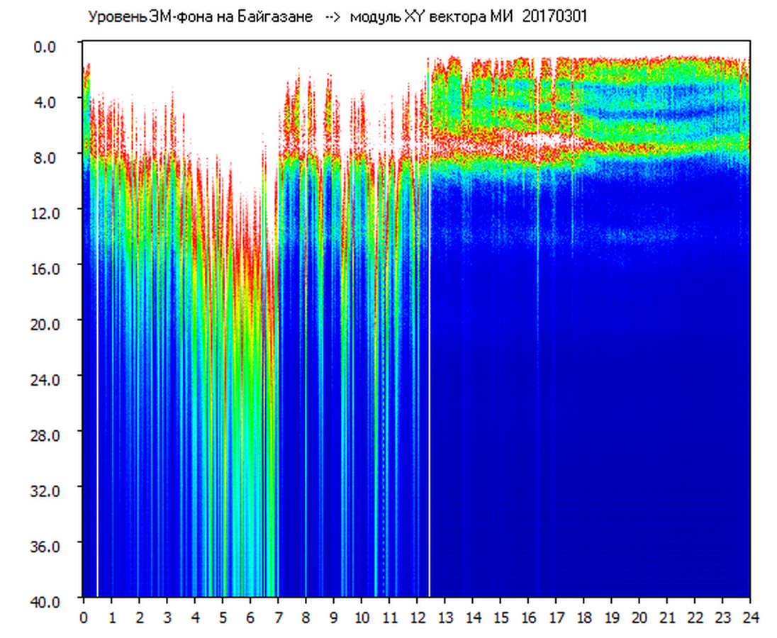 Динамические спектры электромагнитного фона в полосе частот 0 – 40 Гц (Шумановские резонансы)