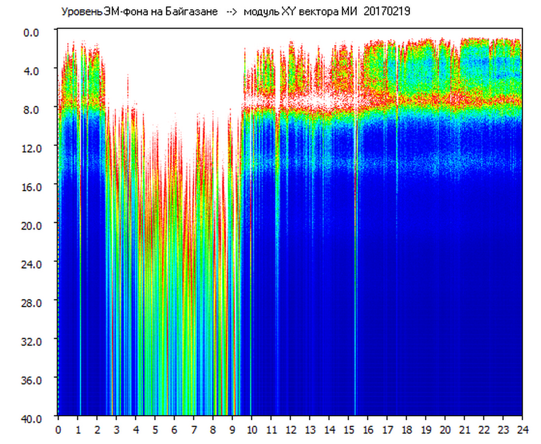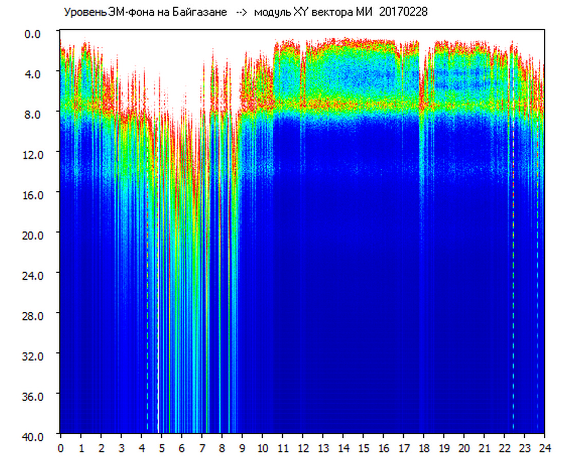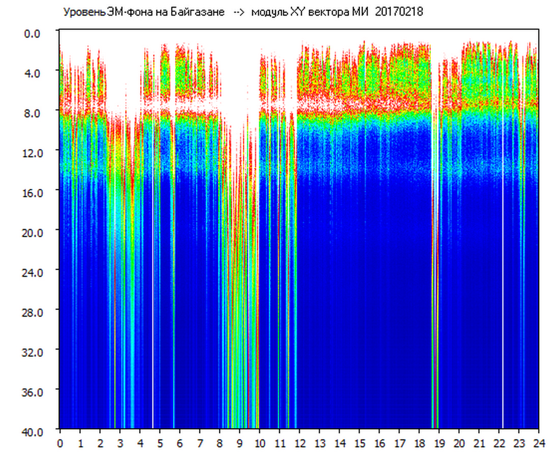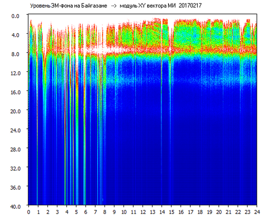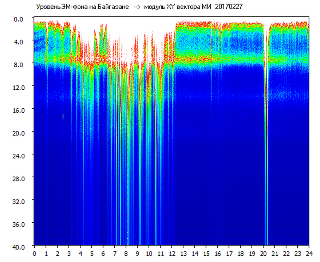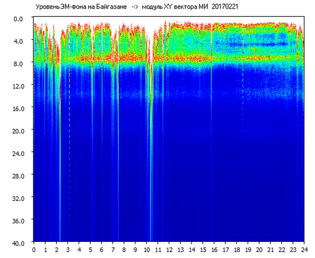 Динамические спектры электромагнитного фона в полосе частот 0 – 40 Гц (Шумановские резонансы)