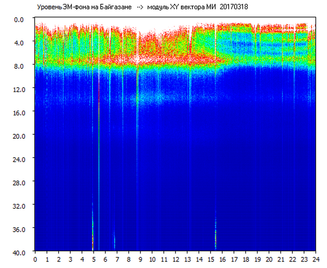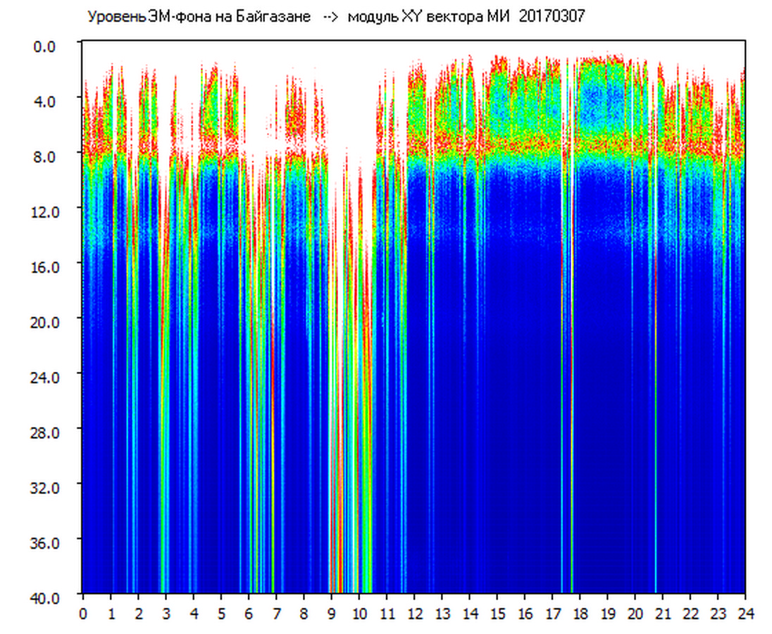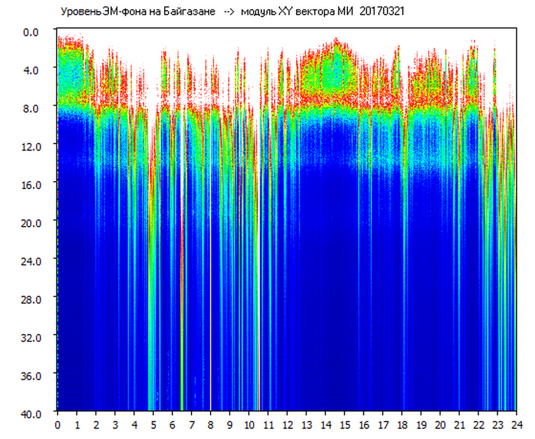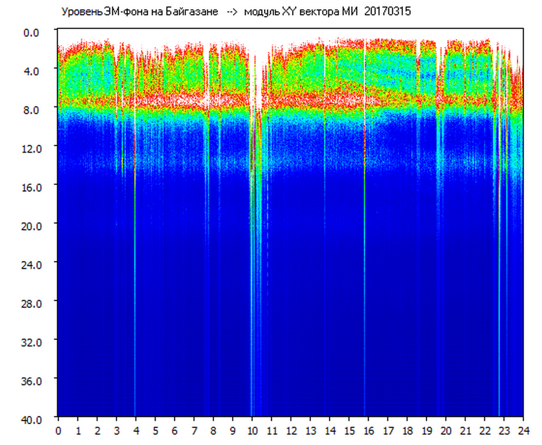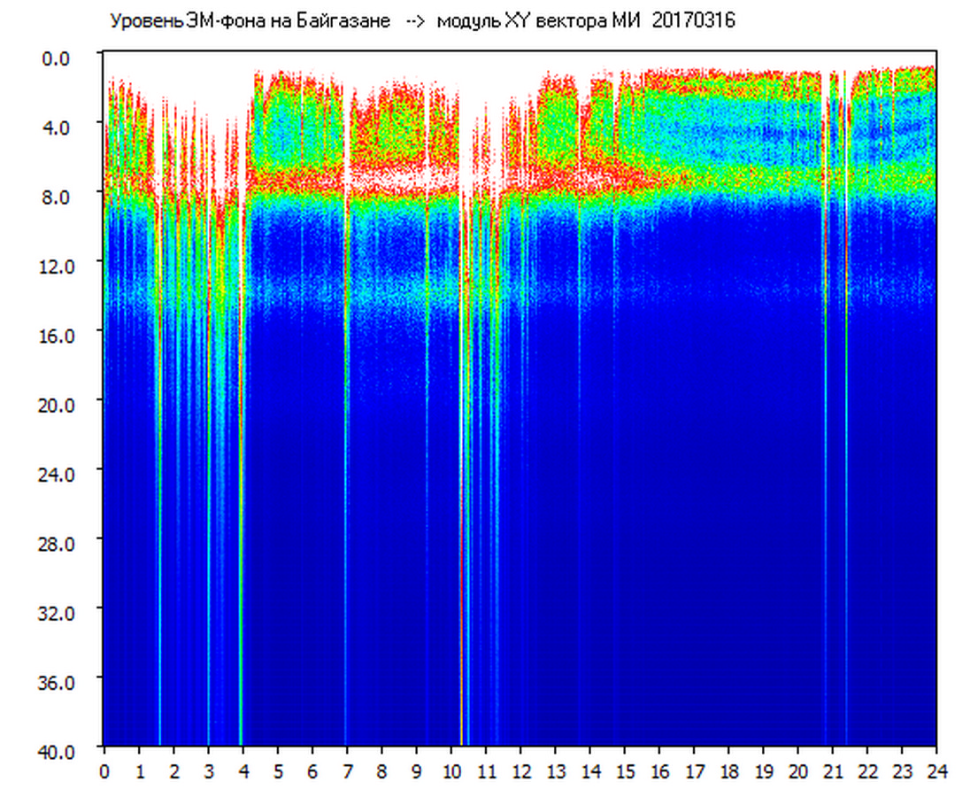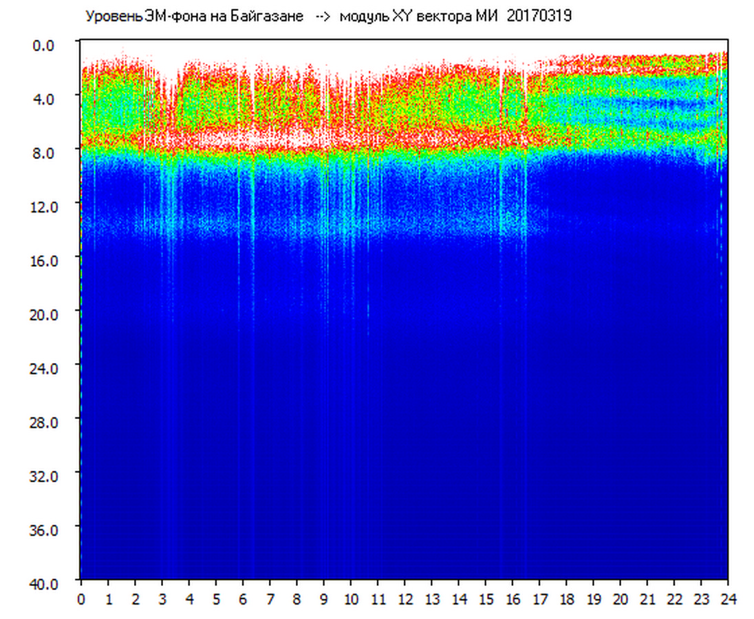 Динамические спектры электромагнитного фона в полосе частот 0 – 40 Гц (Шумановские резонансы)