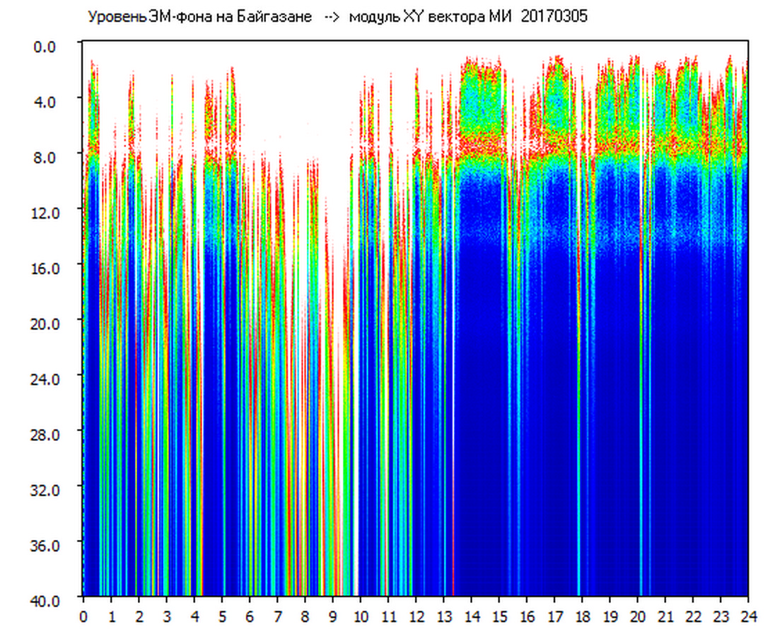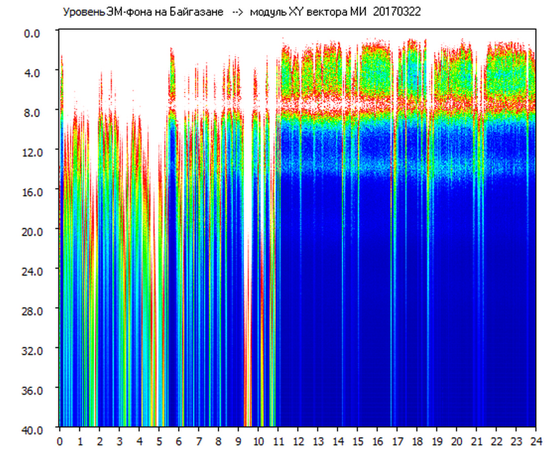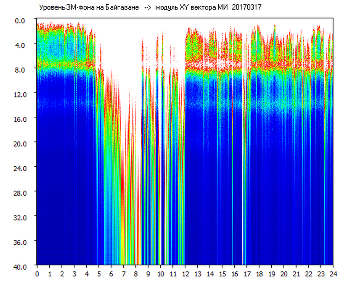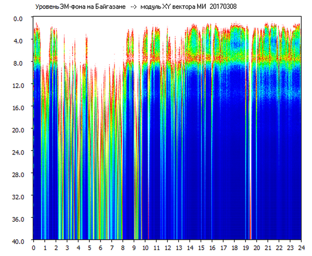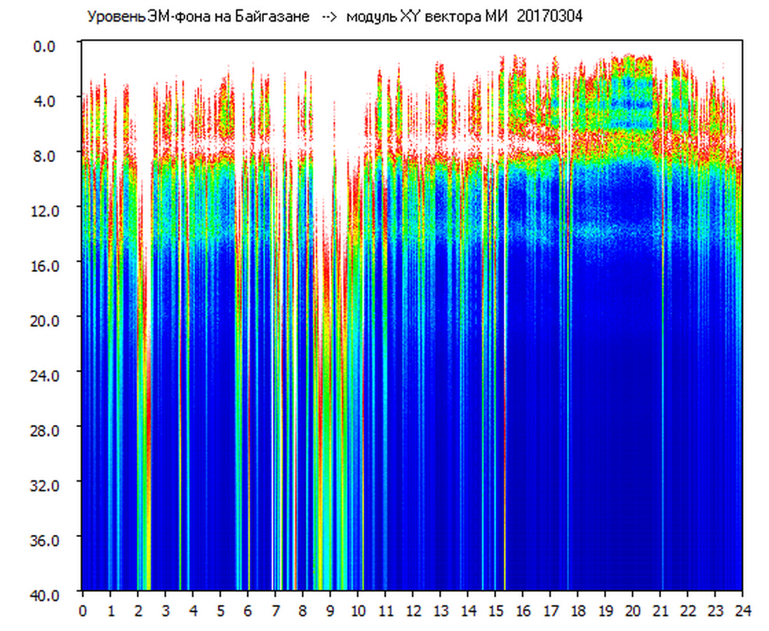 Динамические спектры электромагнитного фона в полосе частот 0 – 40 Гц (Шумановские резонансы)