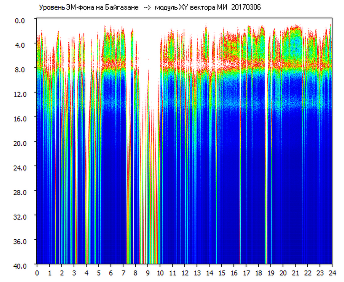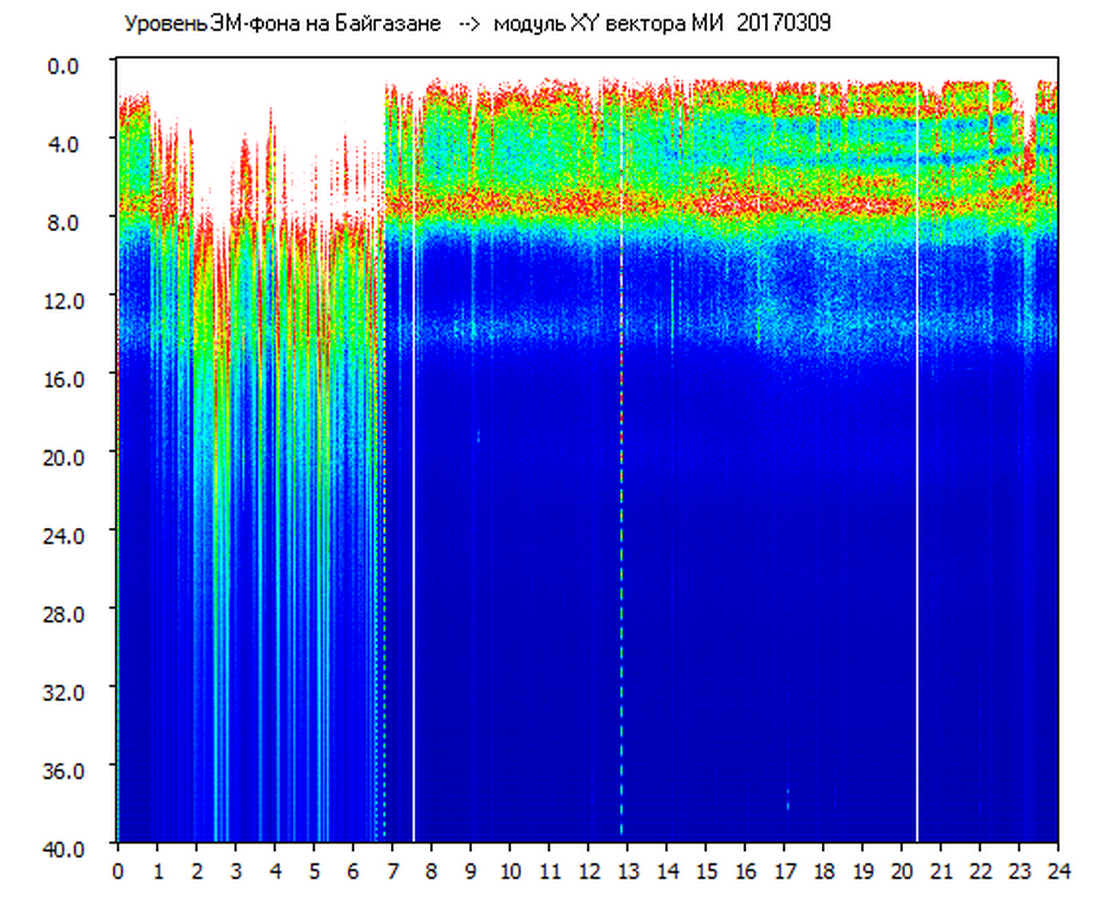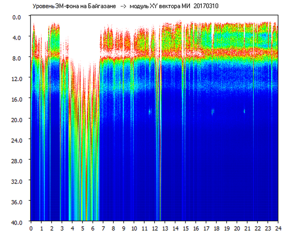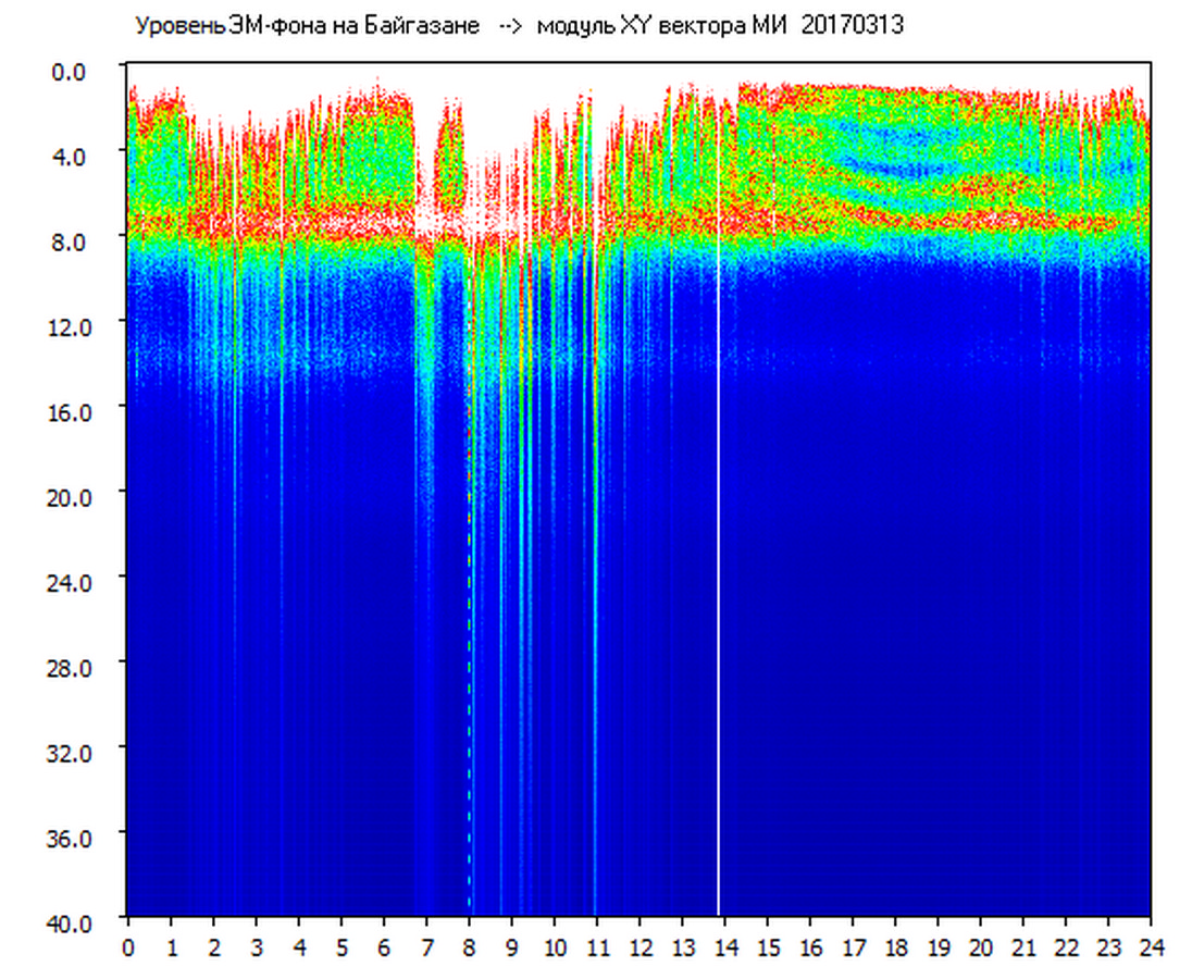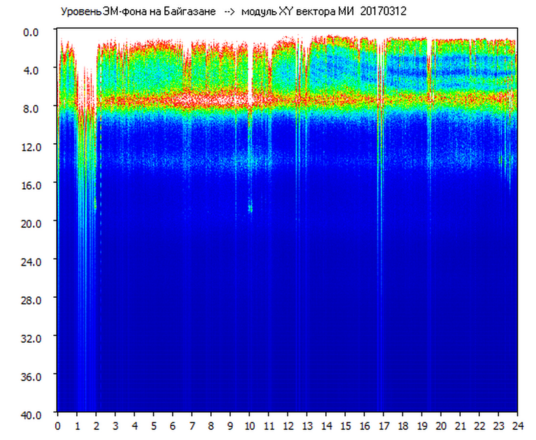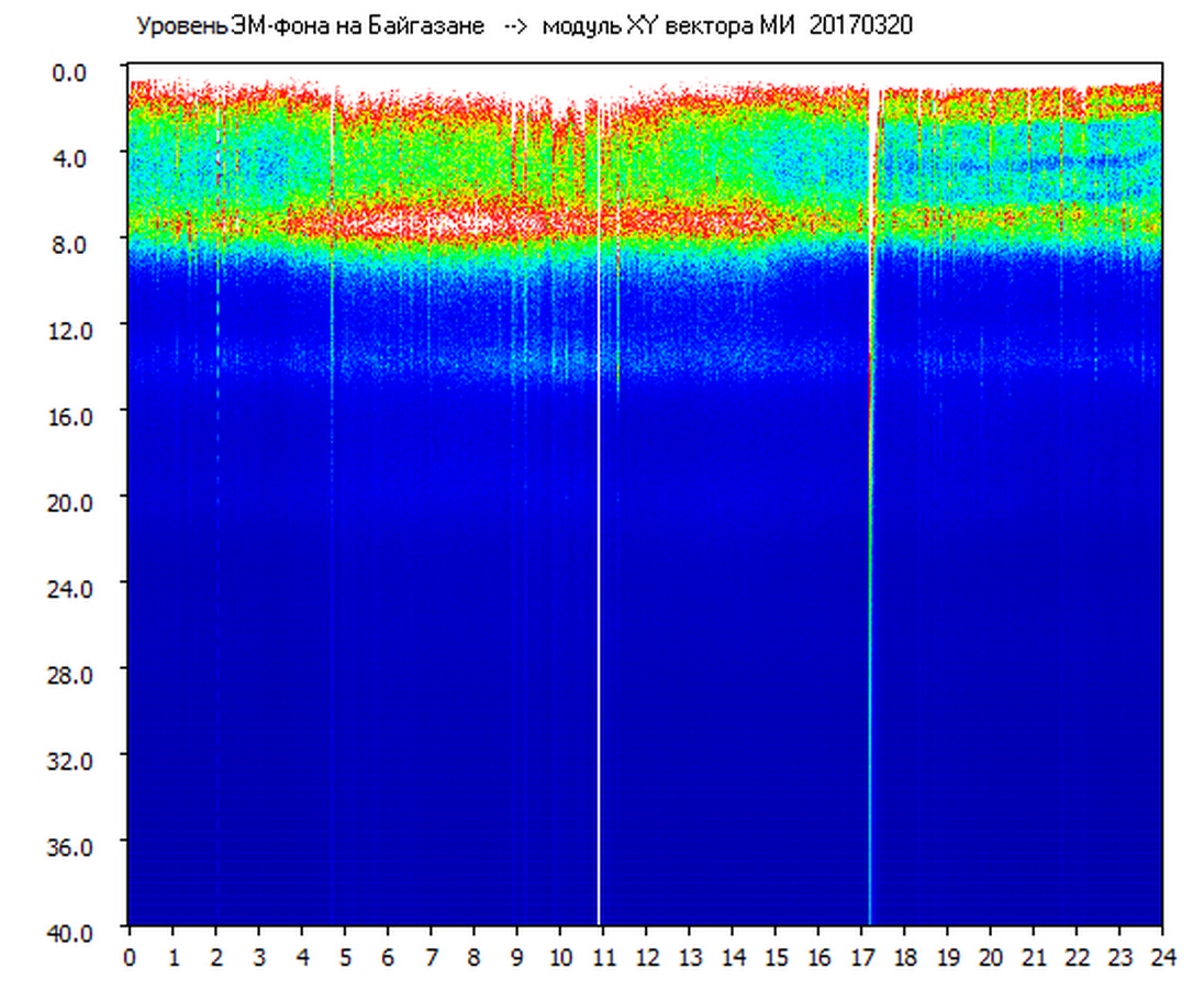 Динамические спектры электромагнитного фона в полосе частот 0 – 40 Гц (Шумановские резонансы)