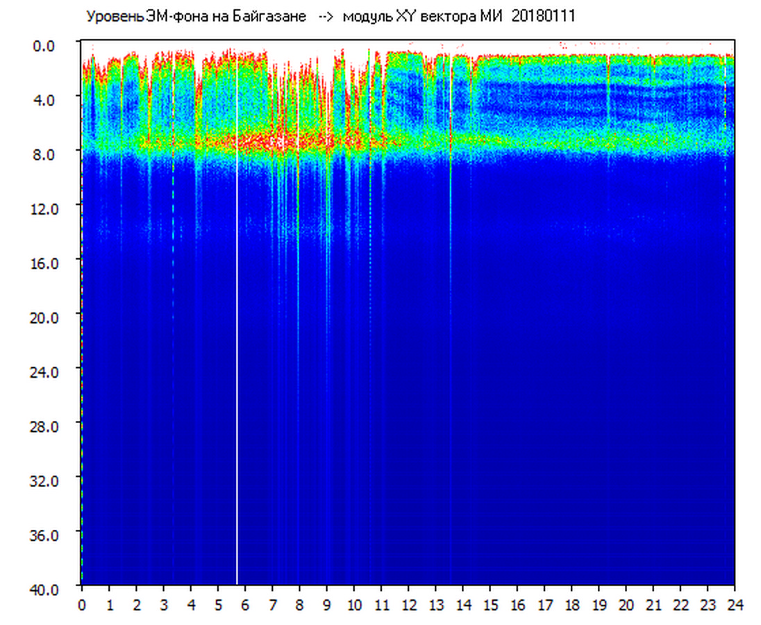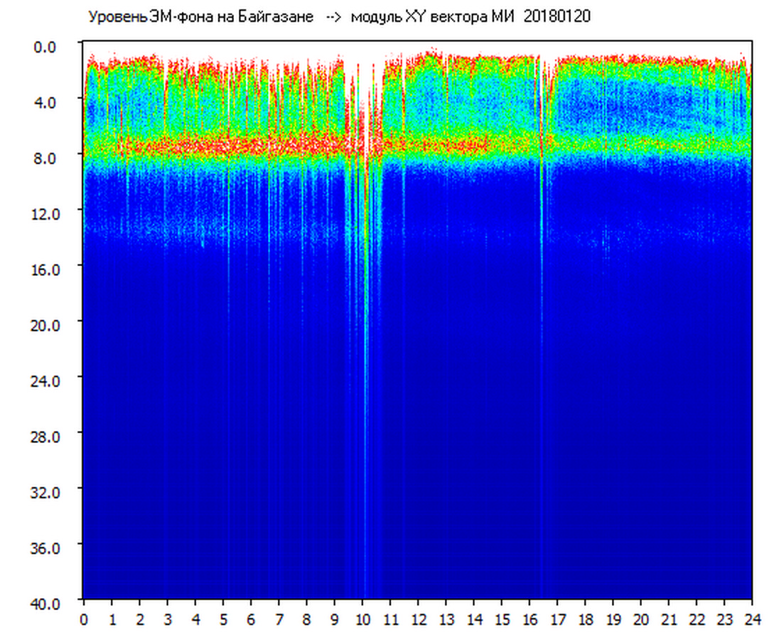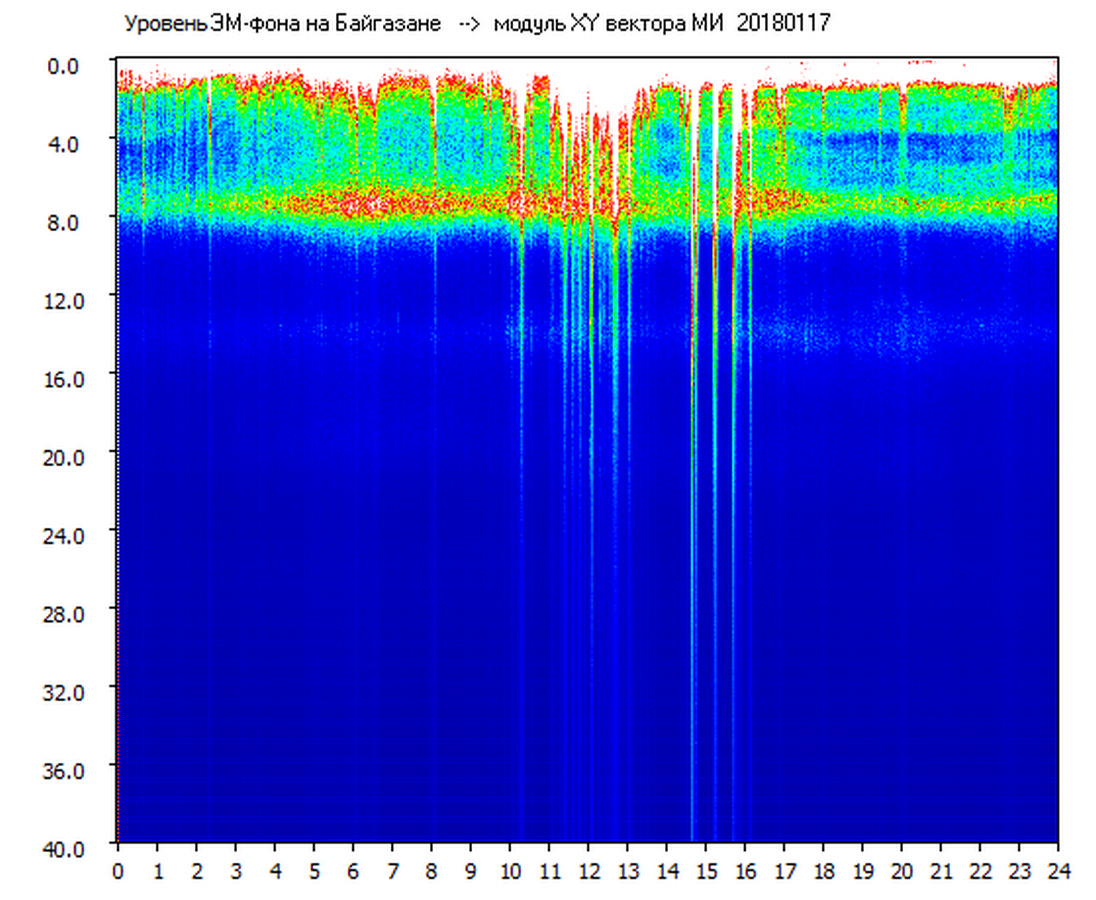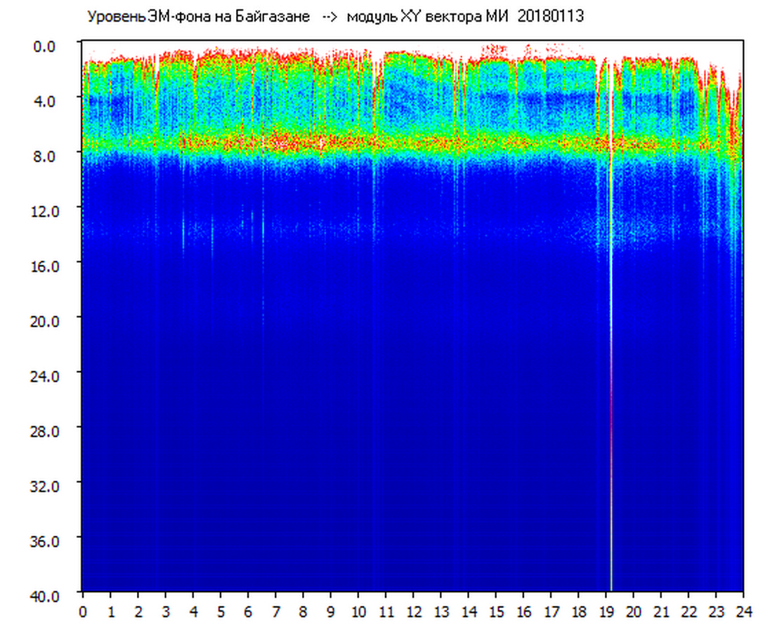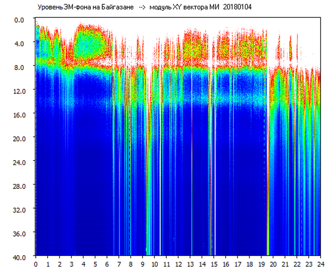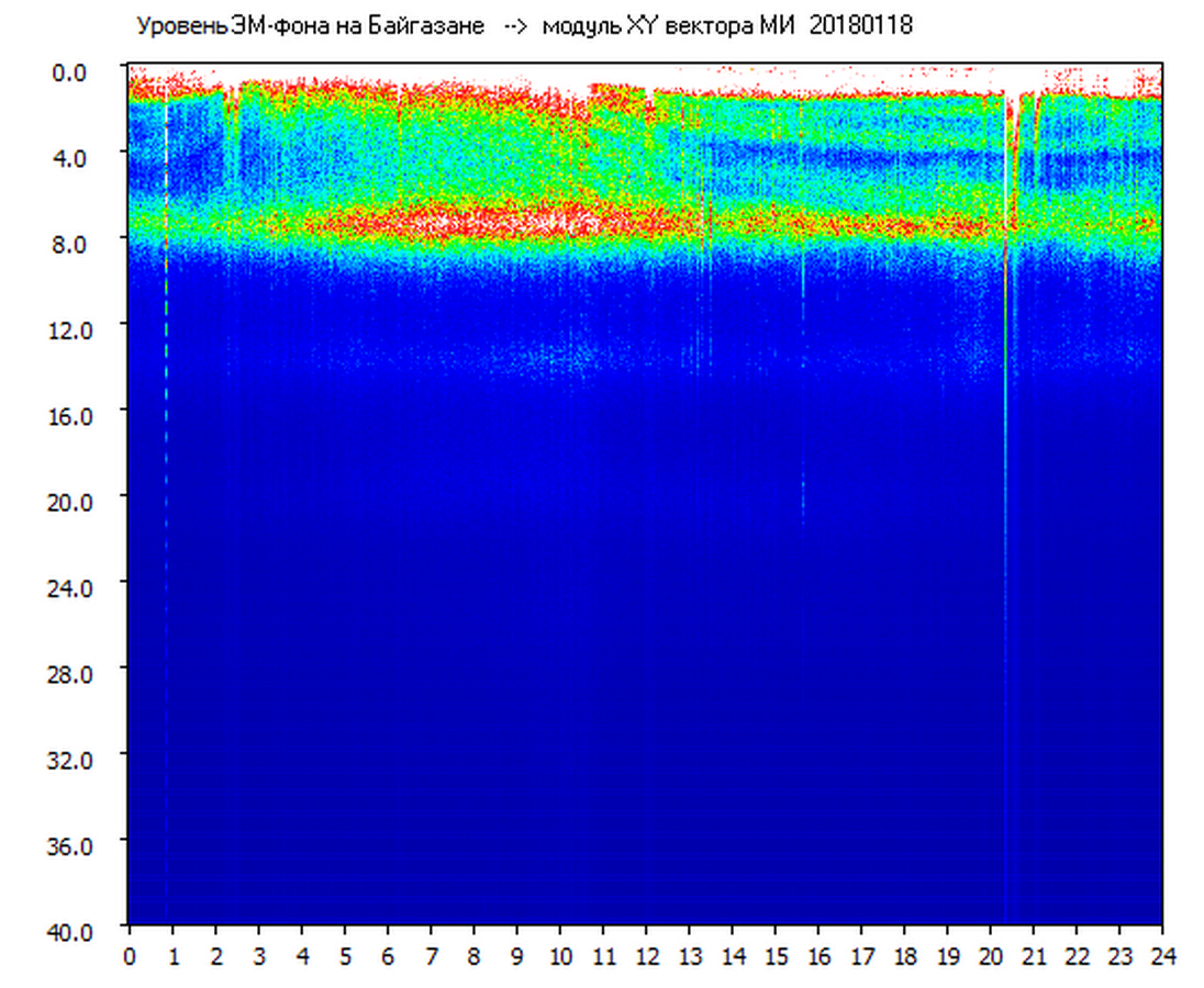 Динамические спектры электромагнитного фона в полосе частот 0 – 40 Гц (Шумановские резонансы)