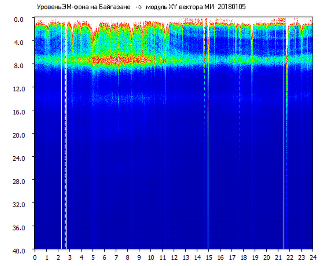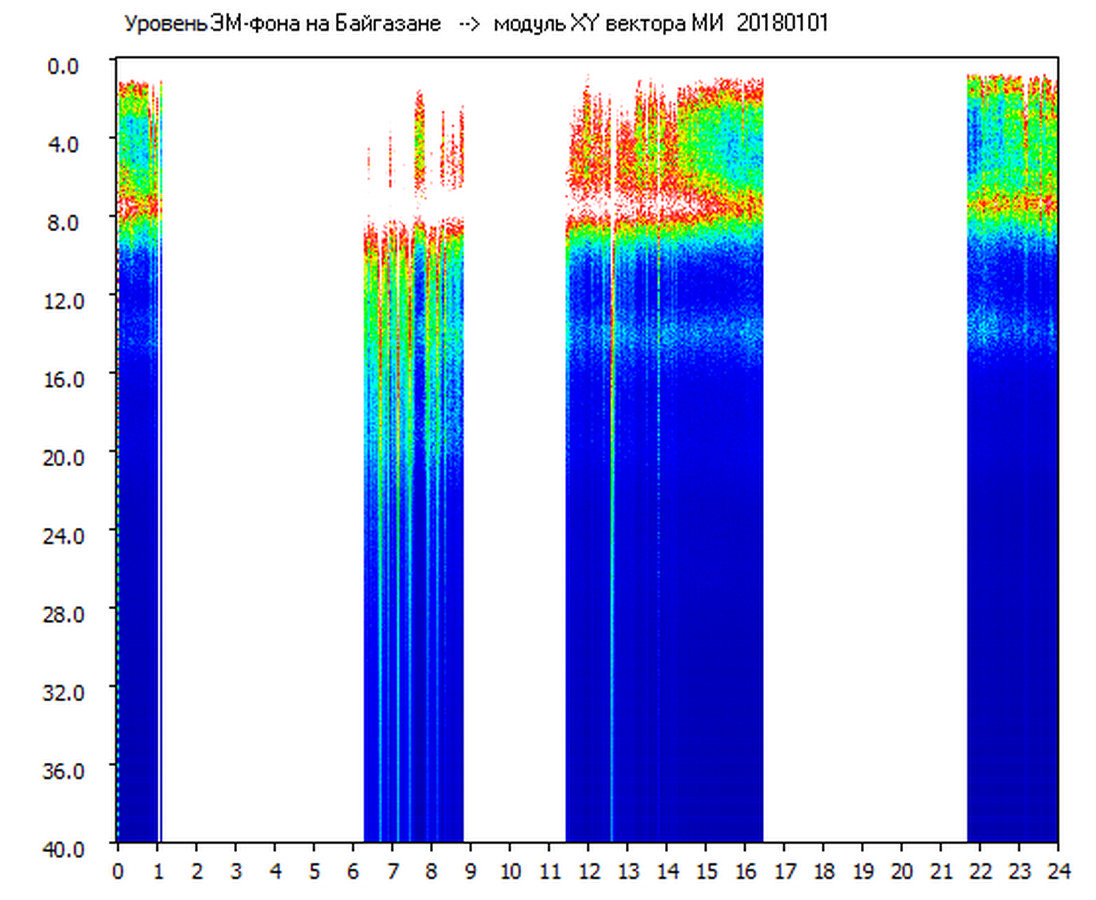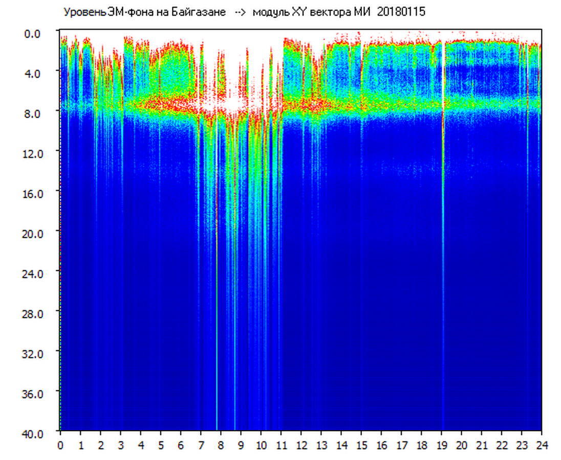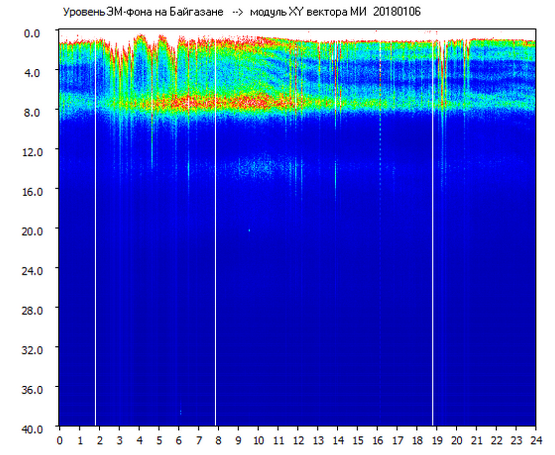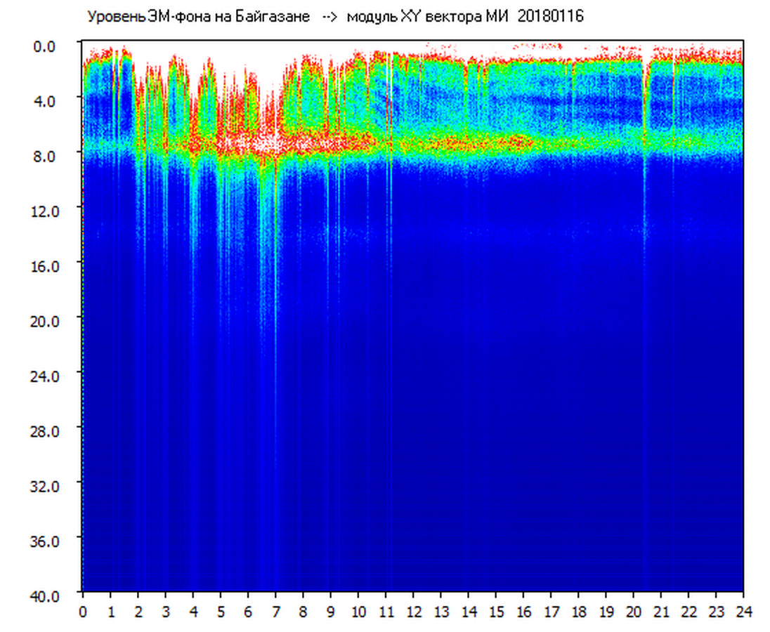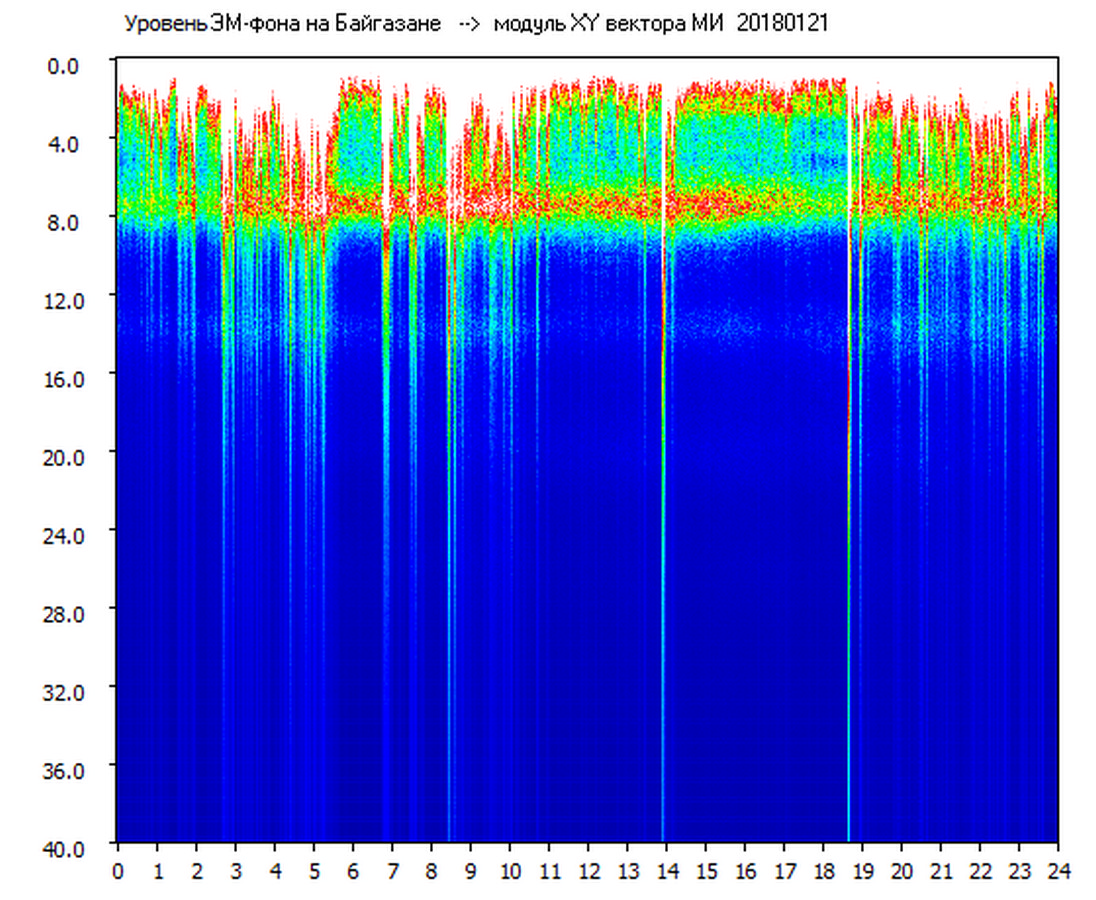 Динамические спектры электромагнитного фона в полосе частот 0 – 40 Гц (Шумановские резонансы)
