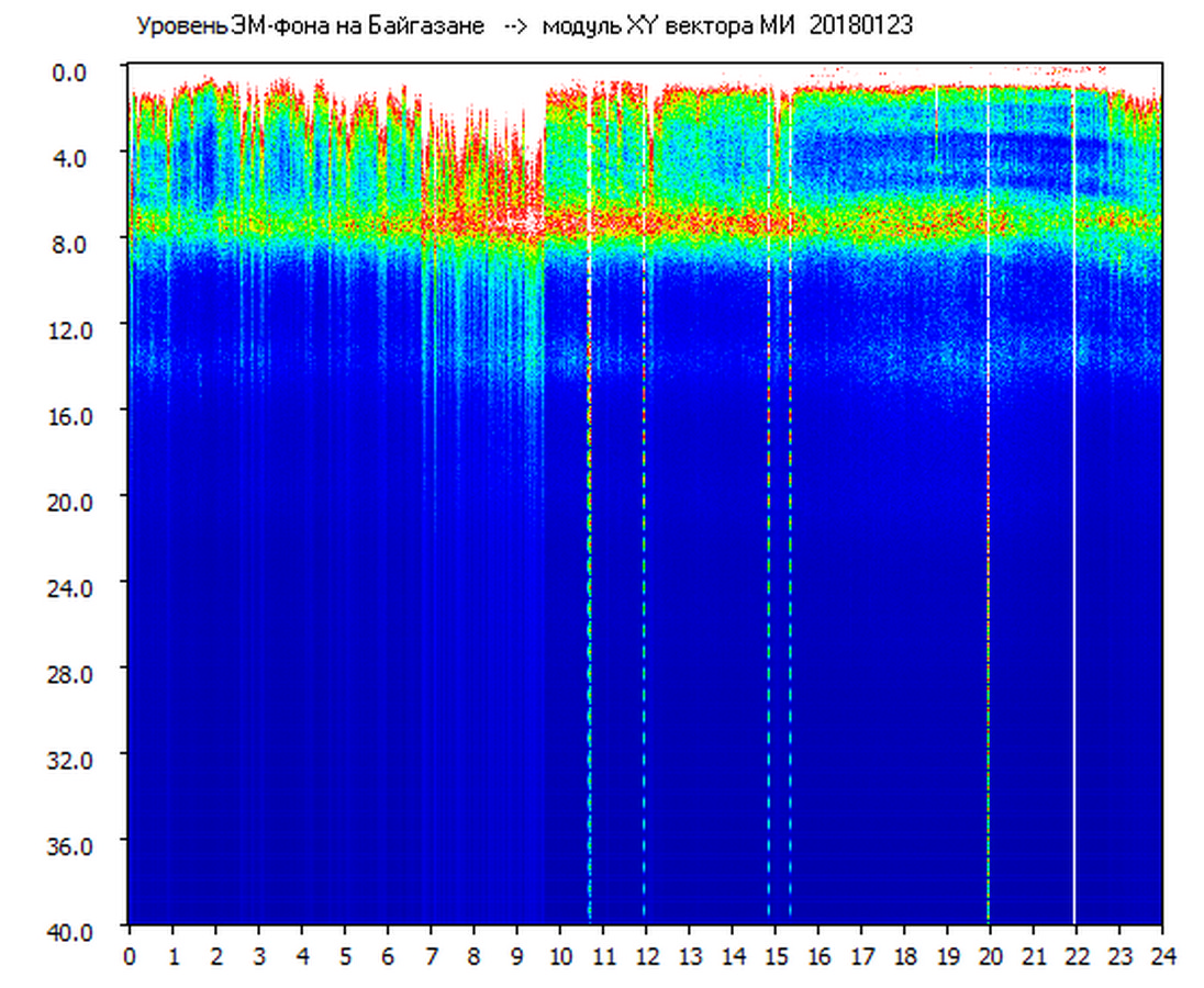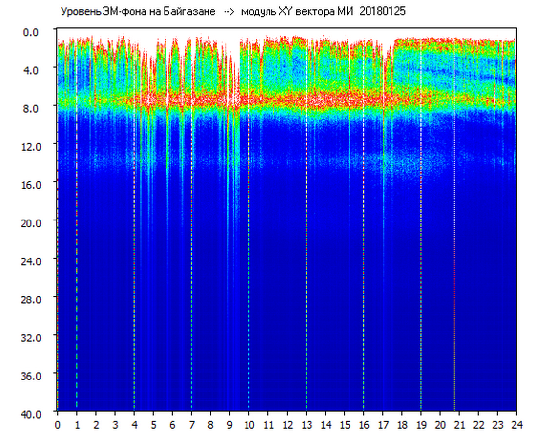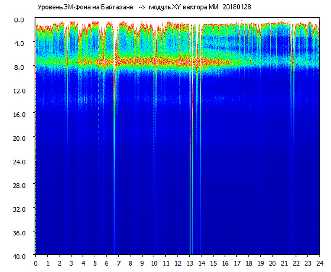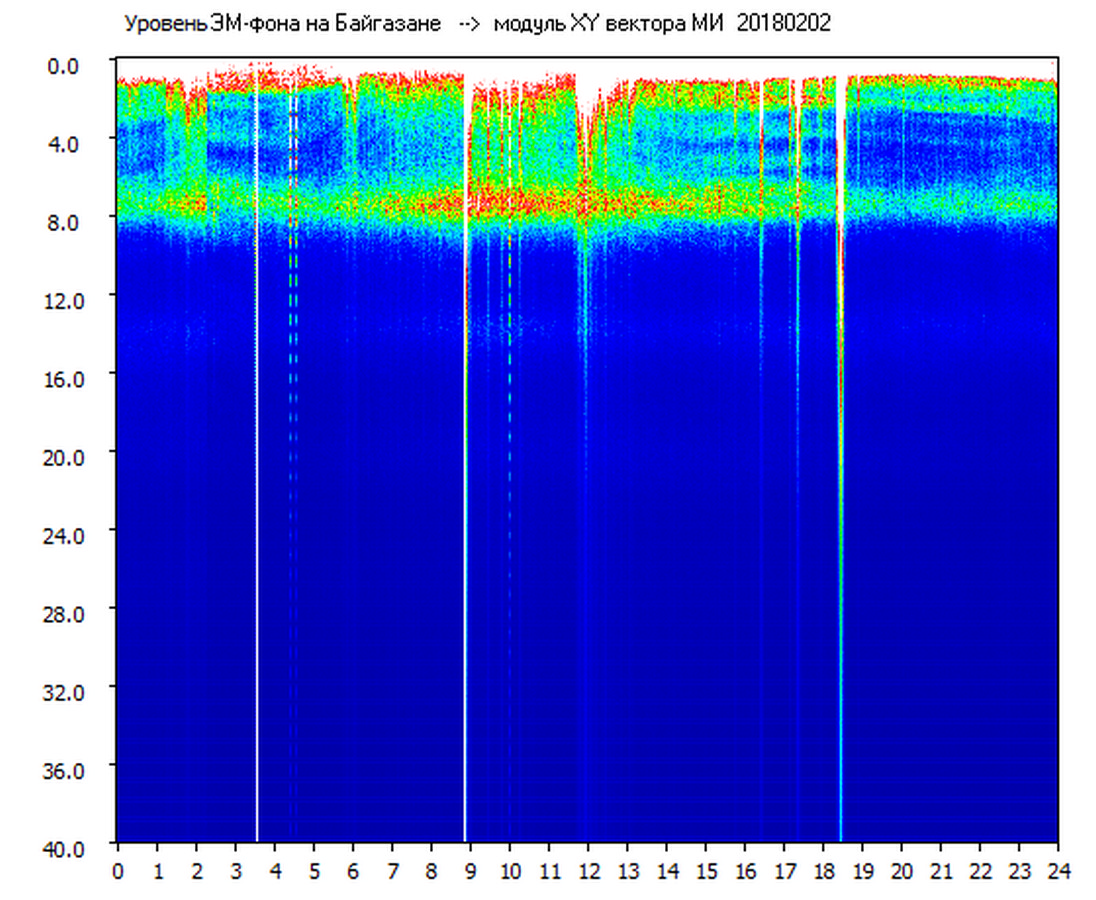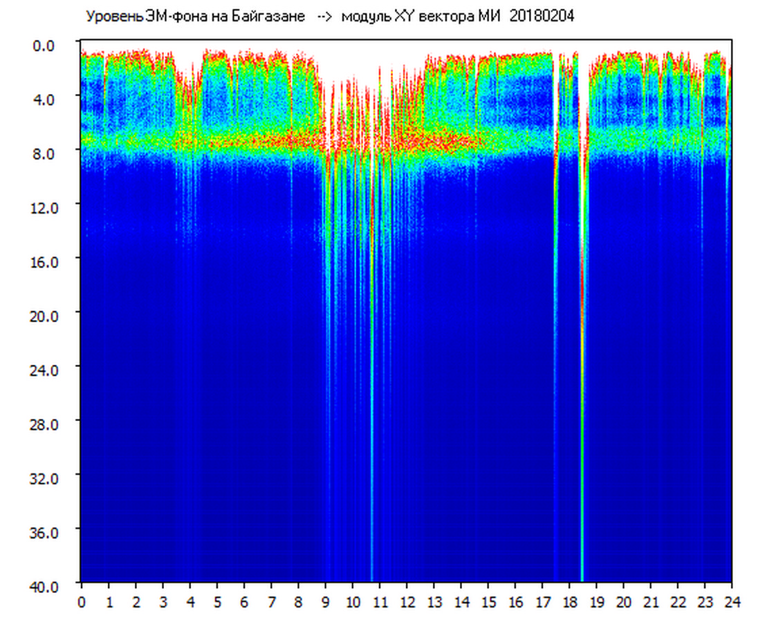 Динамические спектры электромагнитного фона в полосе частот 0 – 40 Гц (Шумановские резонансы)