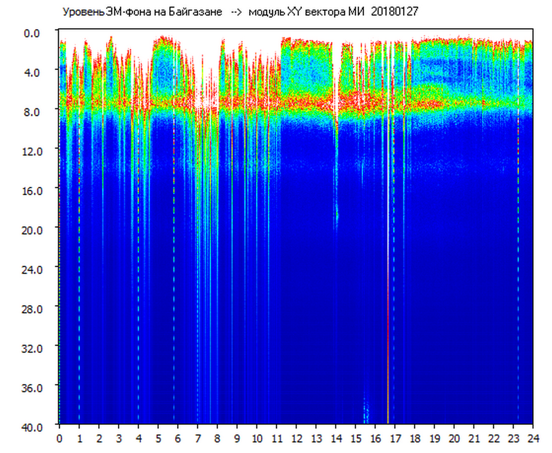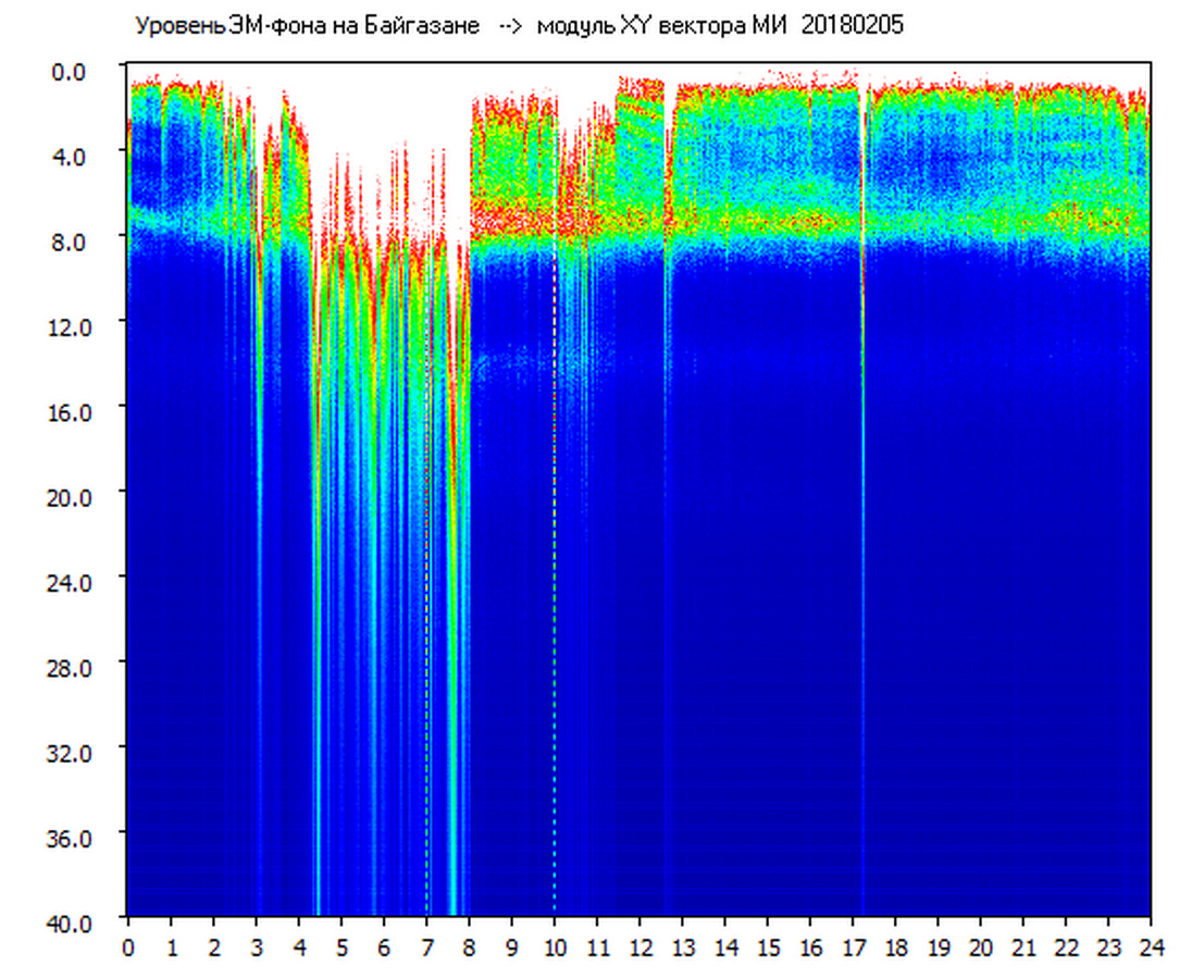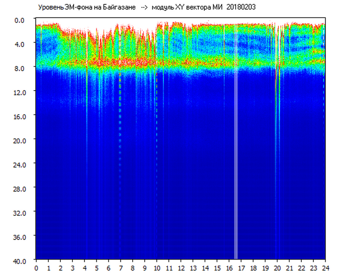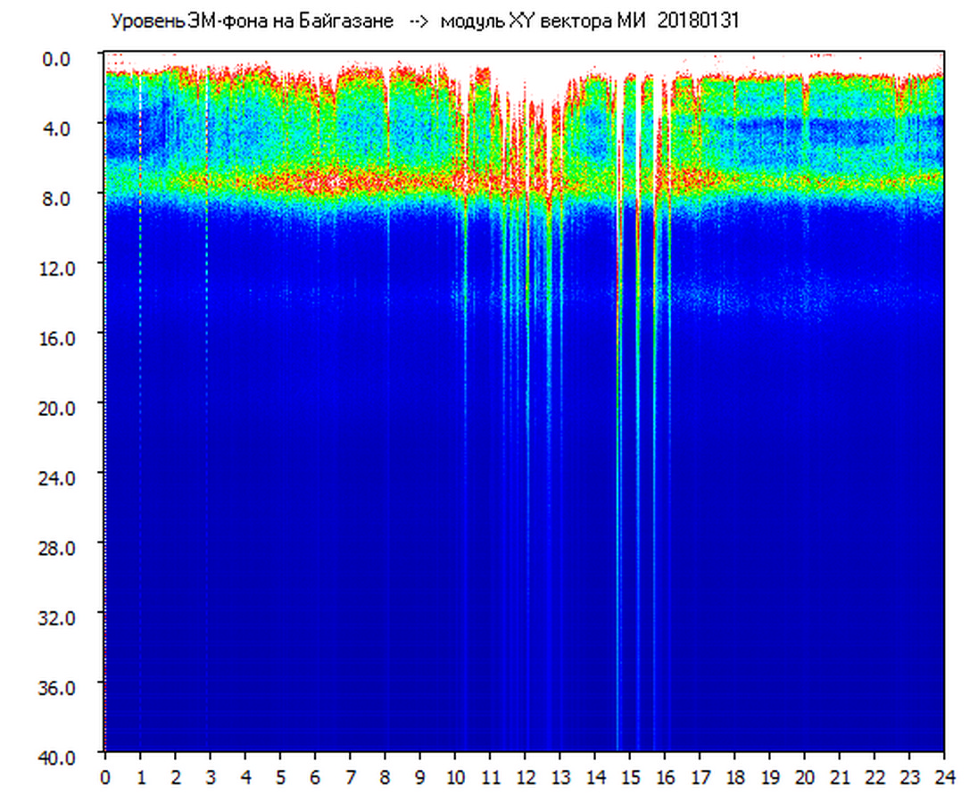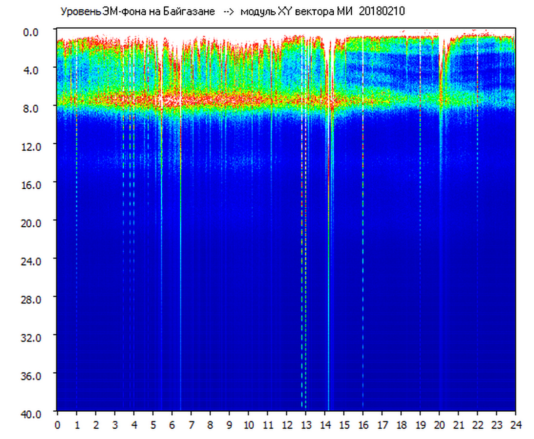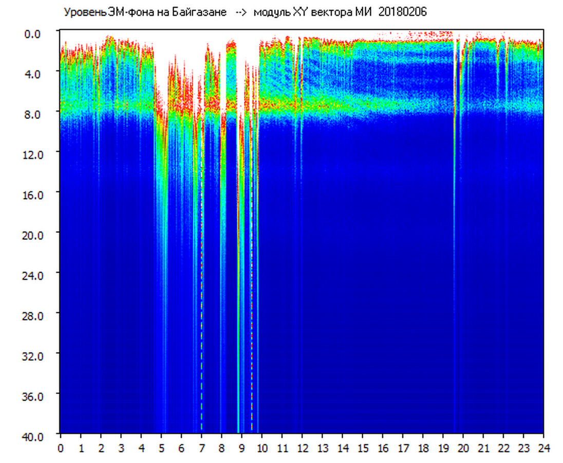 Динамические спектры электромагнитного фона в полосе частот 0 – 40 Гц (Шумановские резонансы)