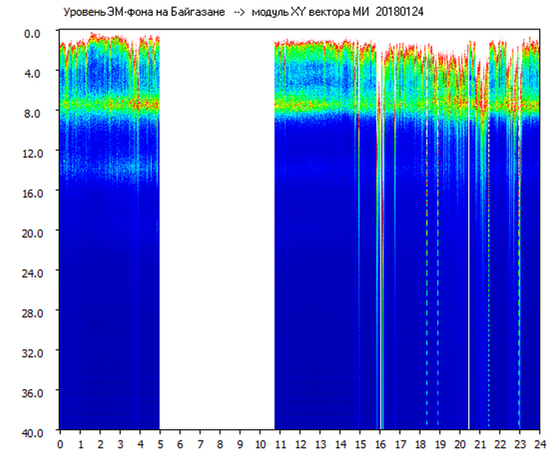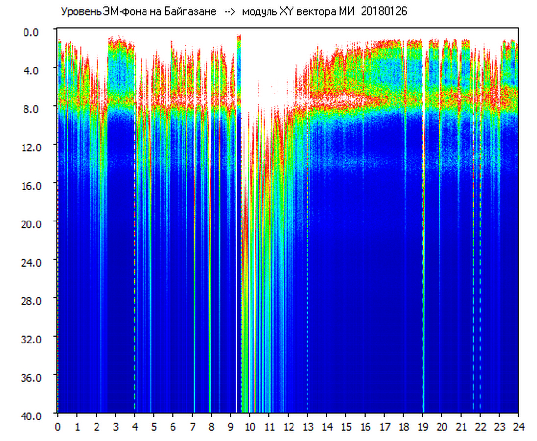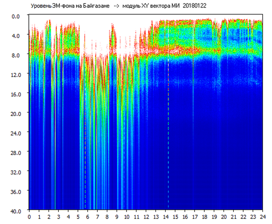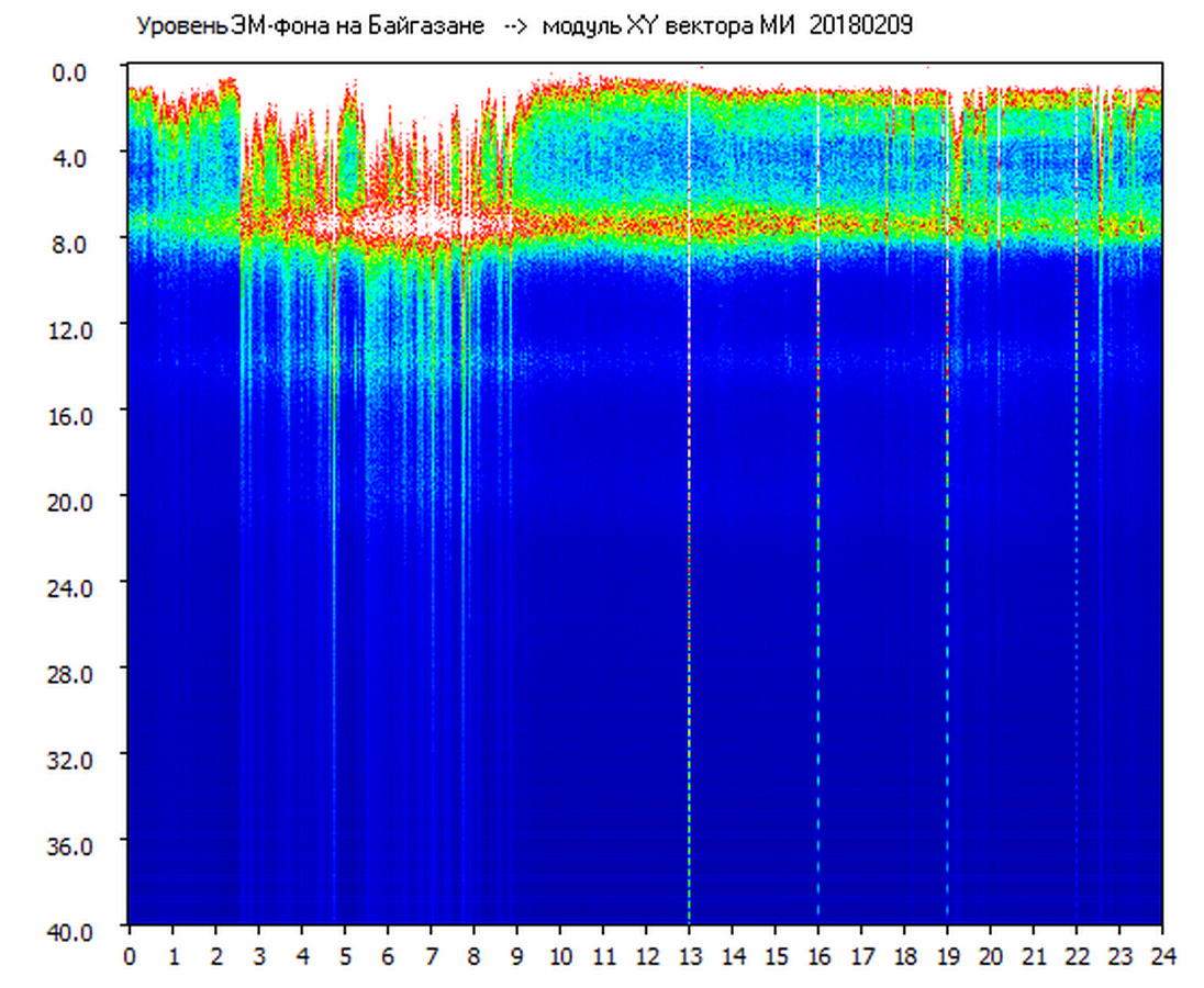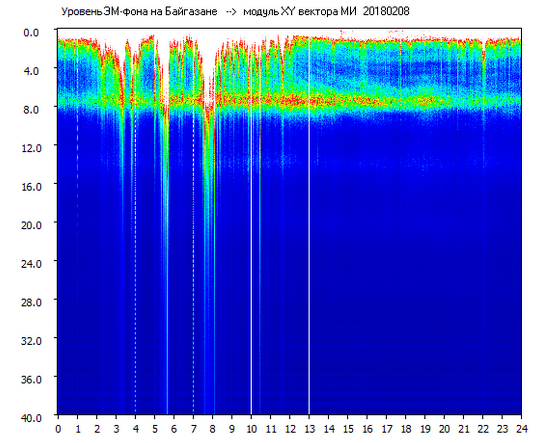 Динамические спектры электромагнитного фона в полосе частот 0 – 40 Гц (Шумановские резонансы)