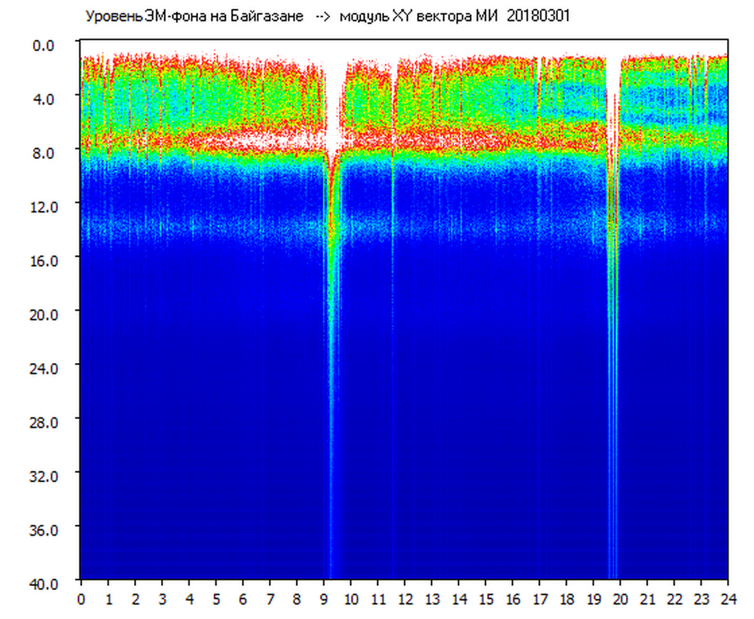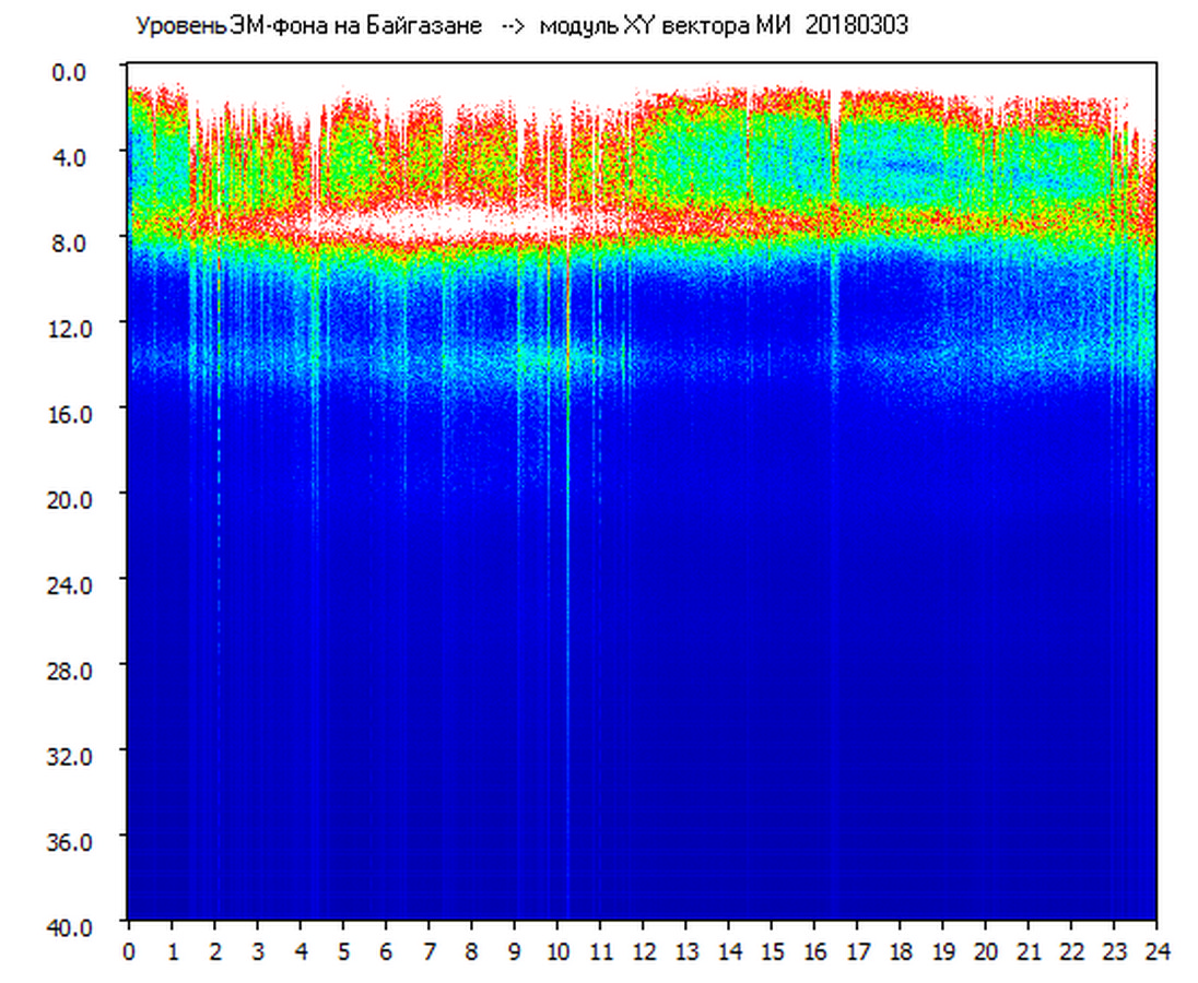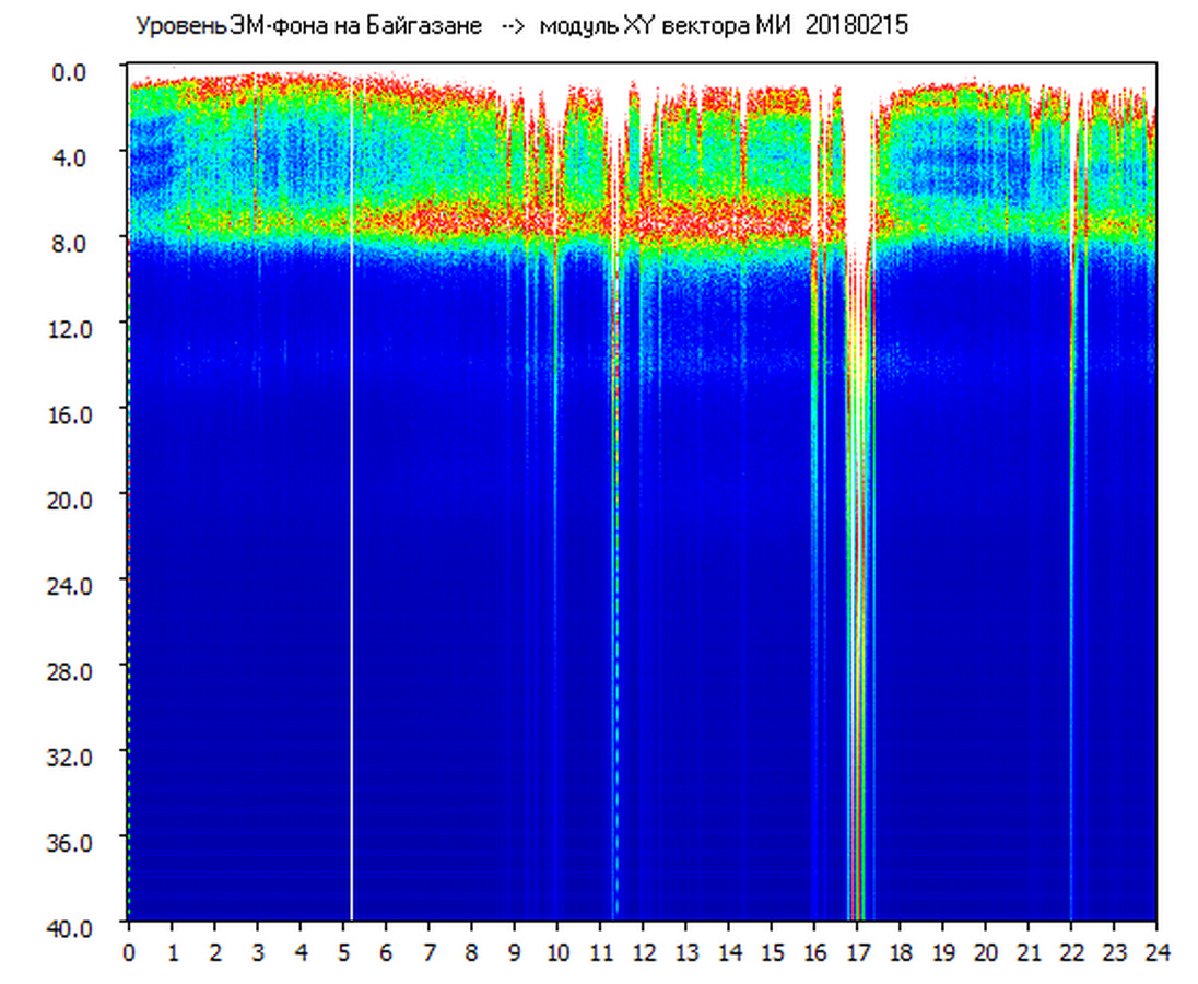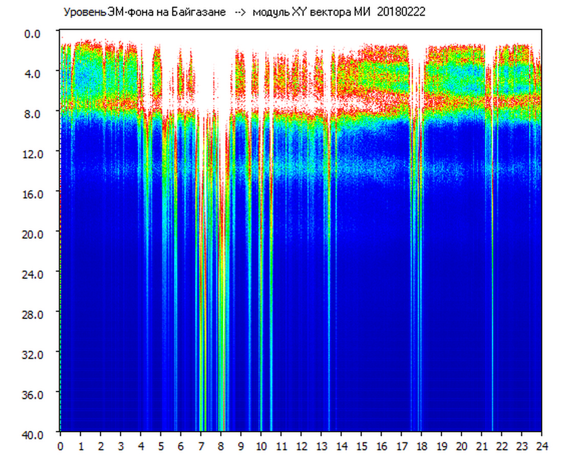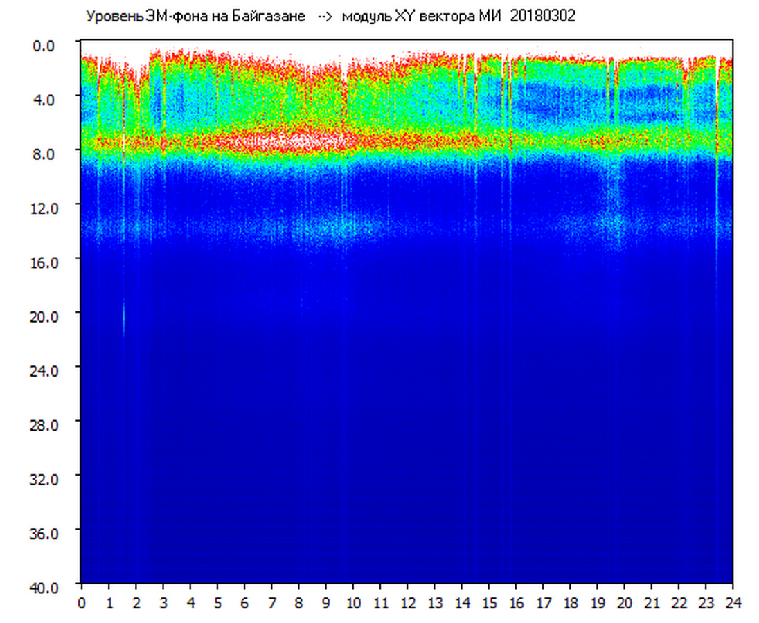 Динамические спектры электромагнитного фона в полосе частот 0 – 40 Гц (Шумановские резонансы)