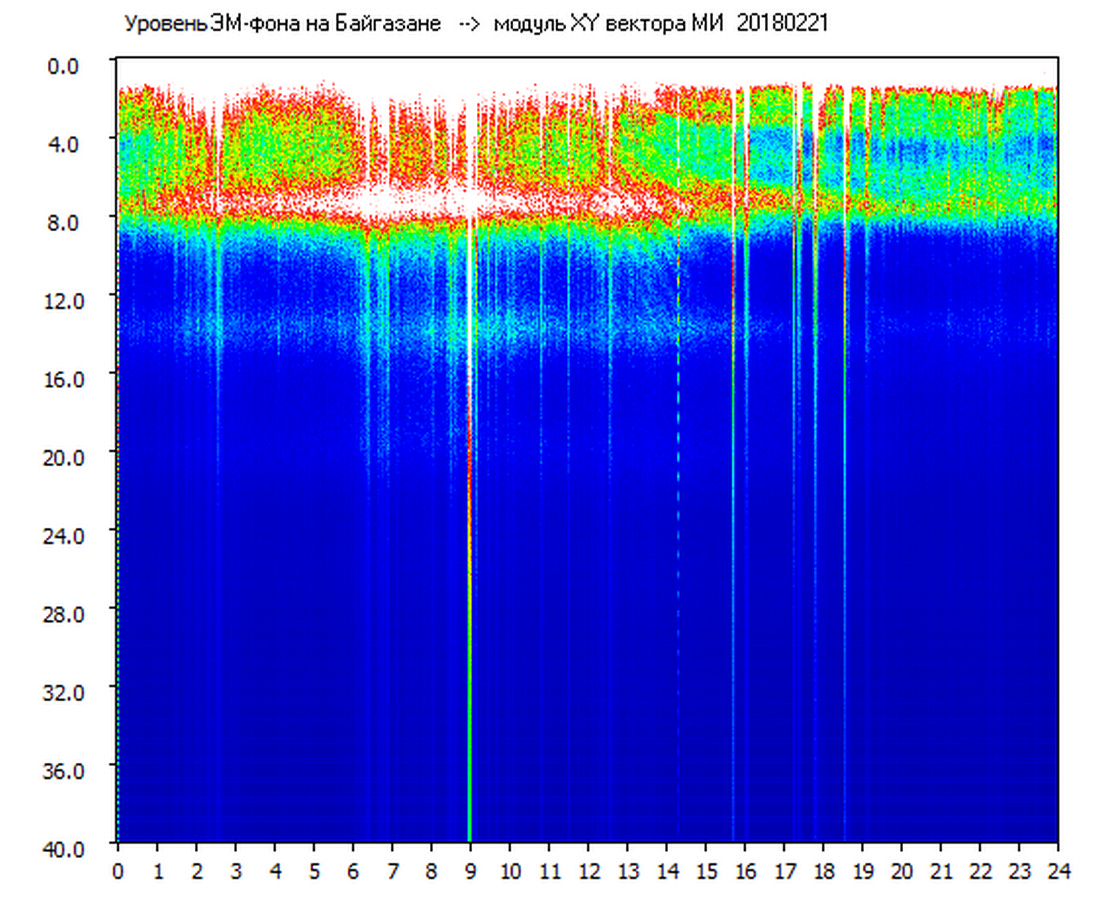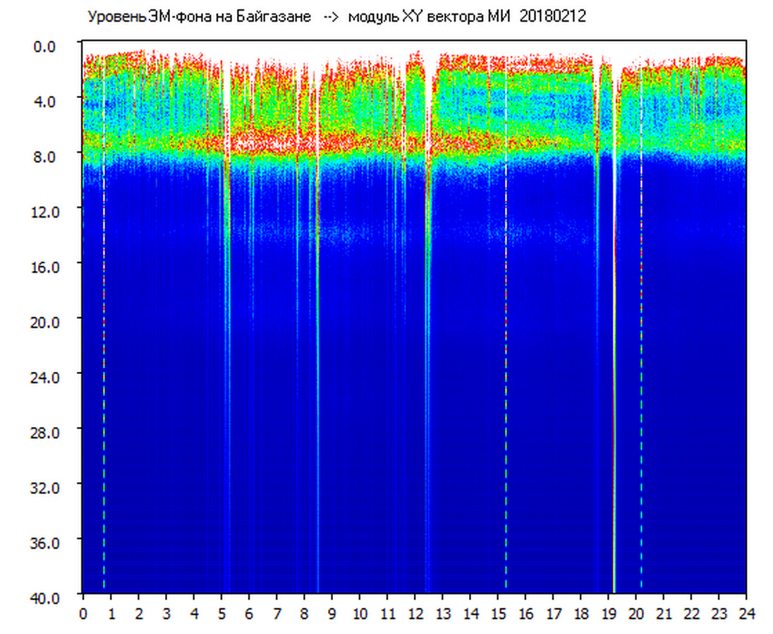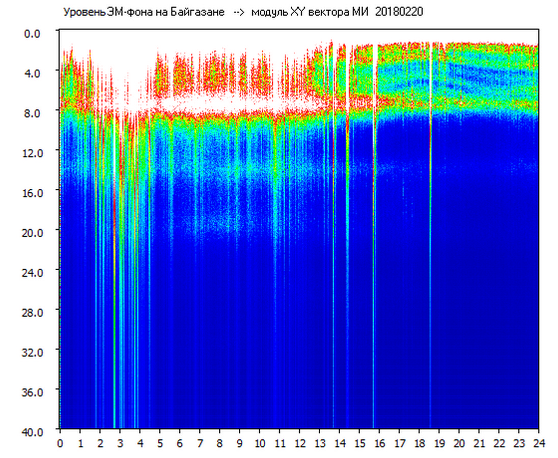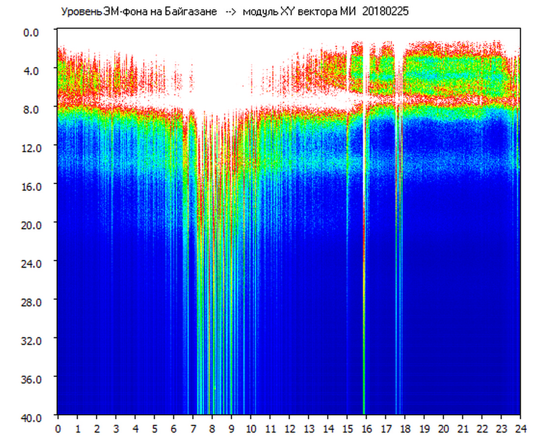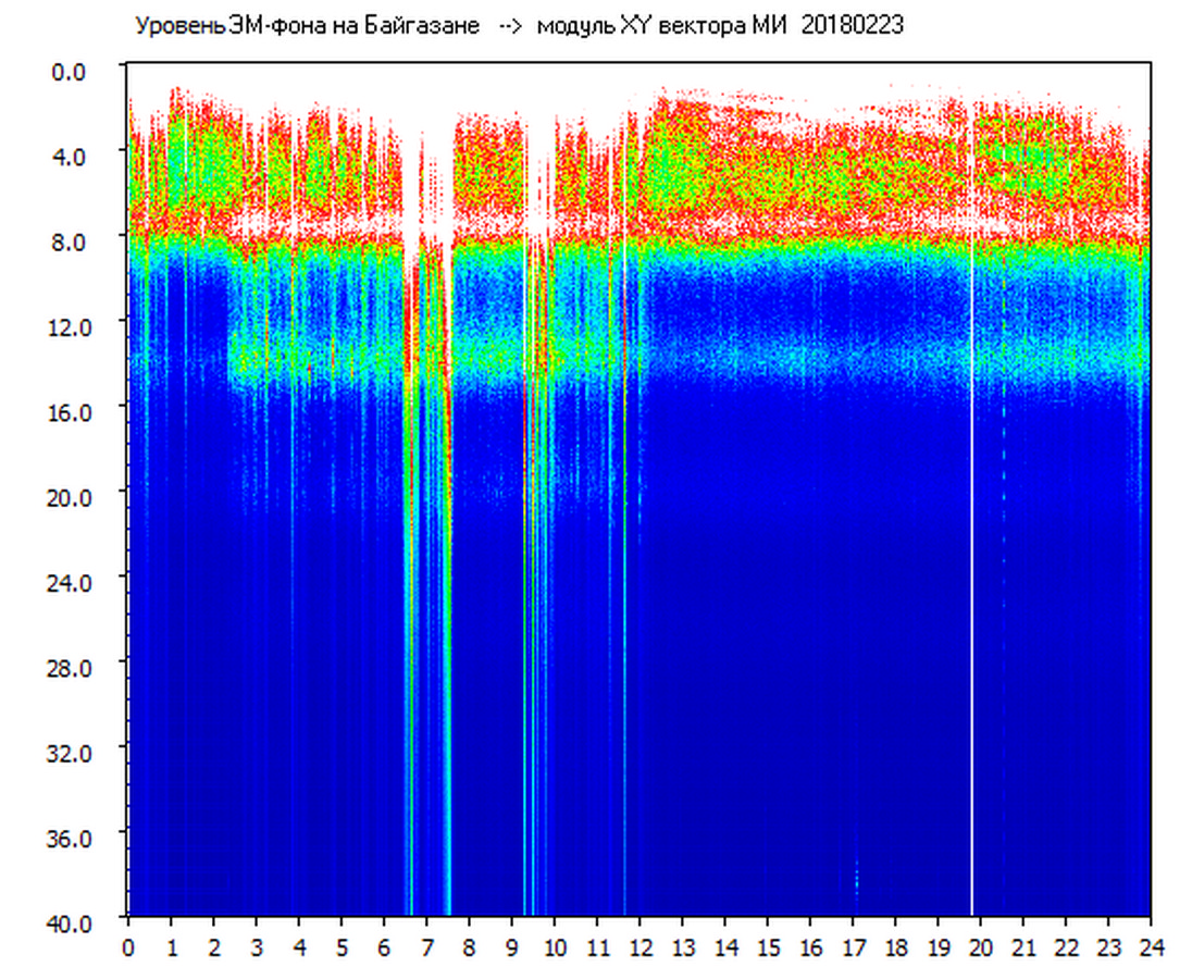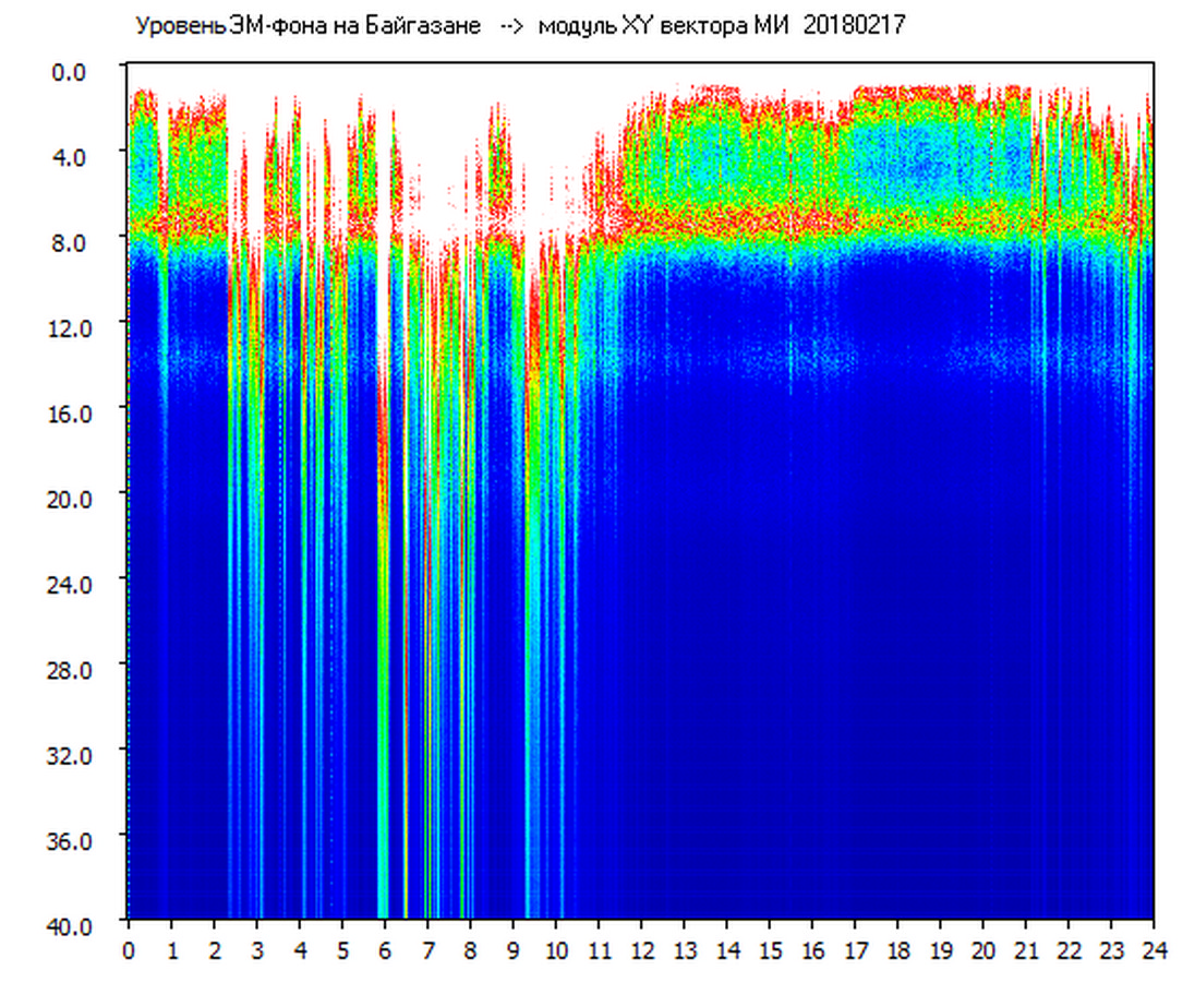 Динамические спектры электромагнитного фона в полосе частот 0 – 40 Гц (Шумановские резонансы)