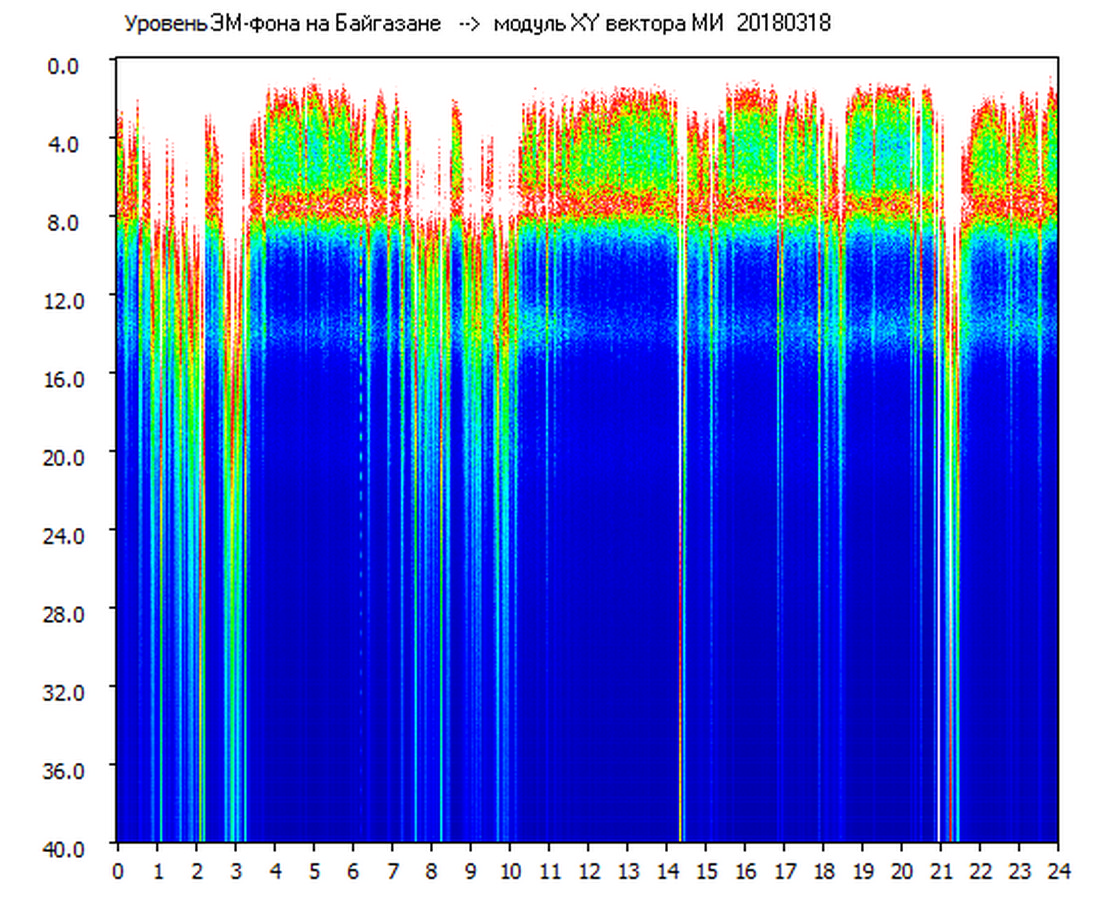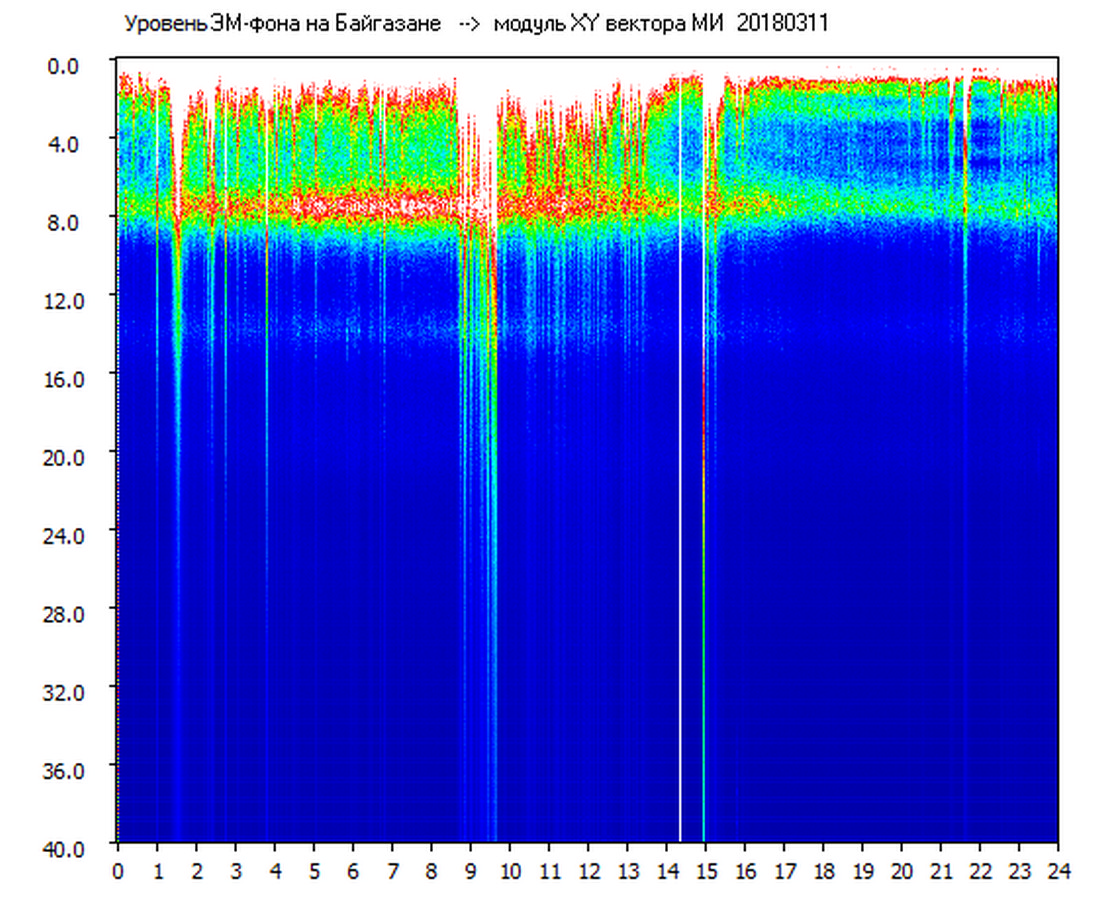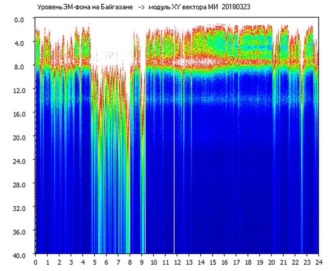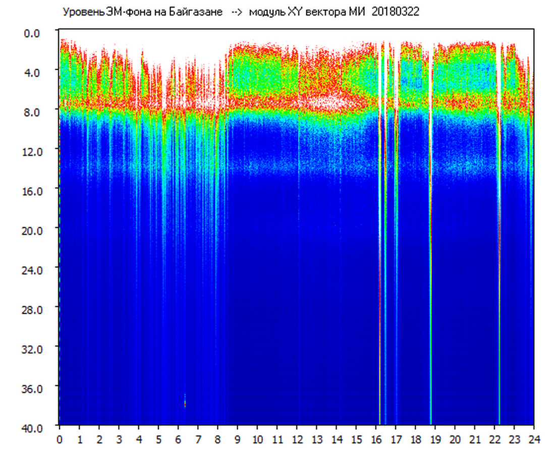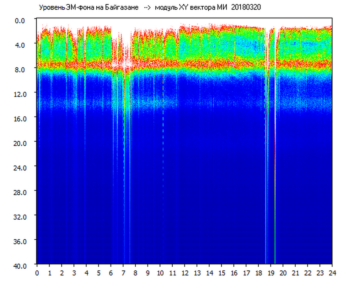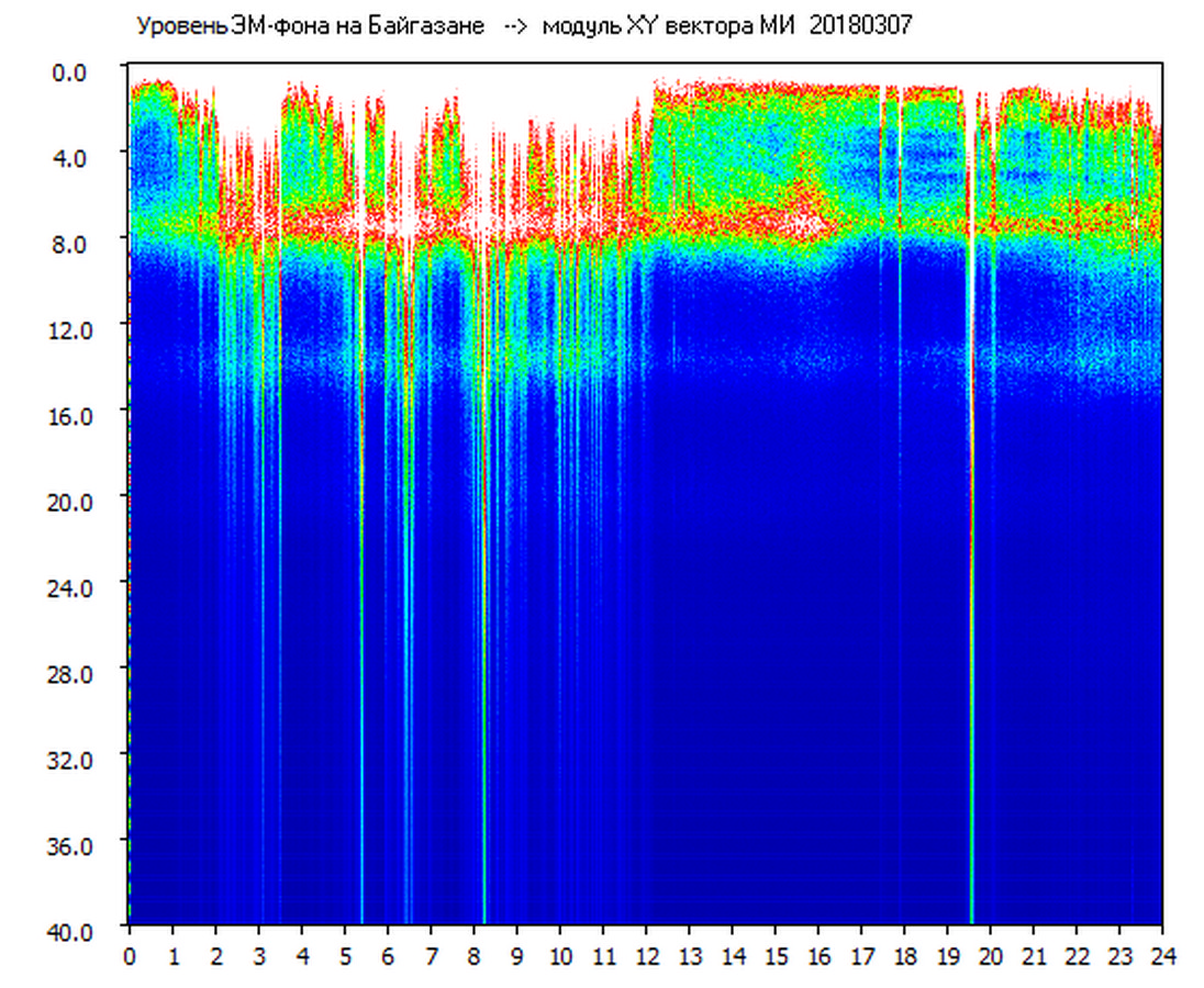 Динамические спектры электромагнитного фона в полосе частот 0 – 40 Гц (Шумановские резонансы)