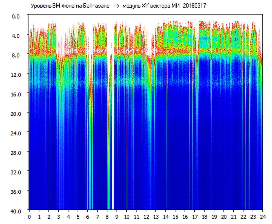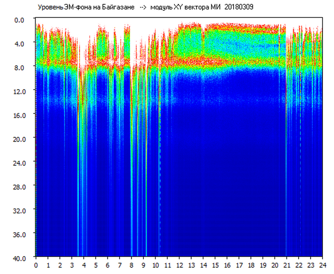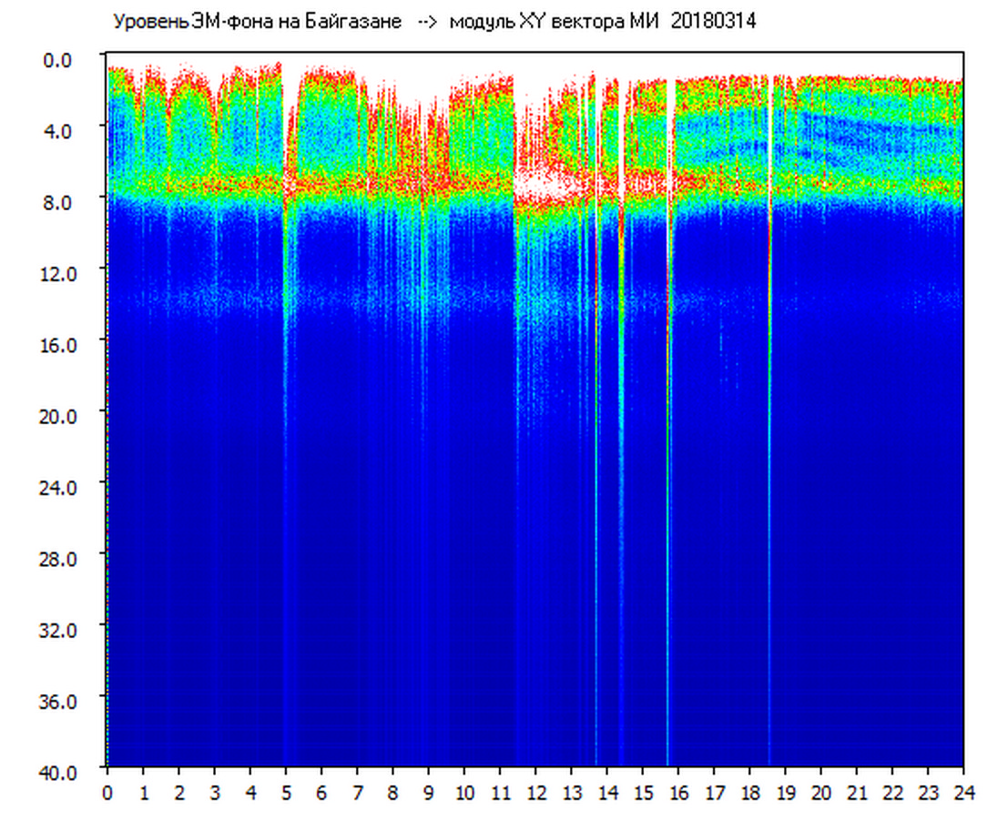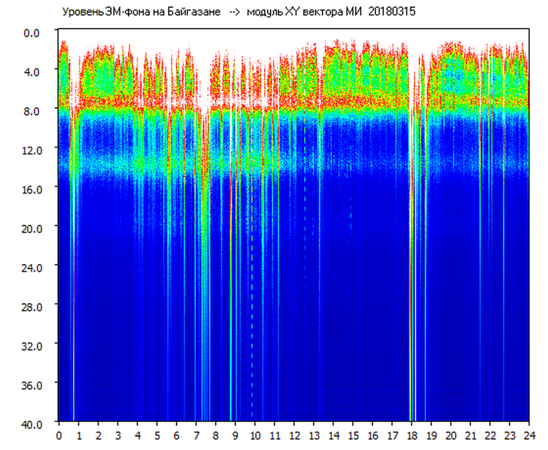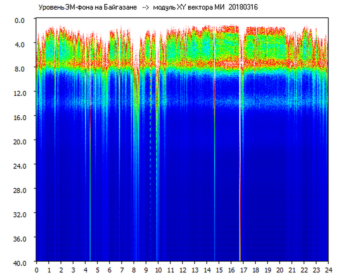 Динамические спектры электромагнитного фона в полосе частот 0 – 40 Гц (Шумановские резонансы)