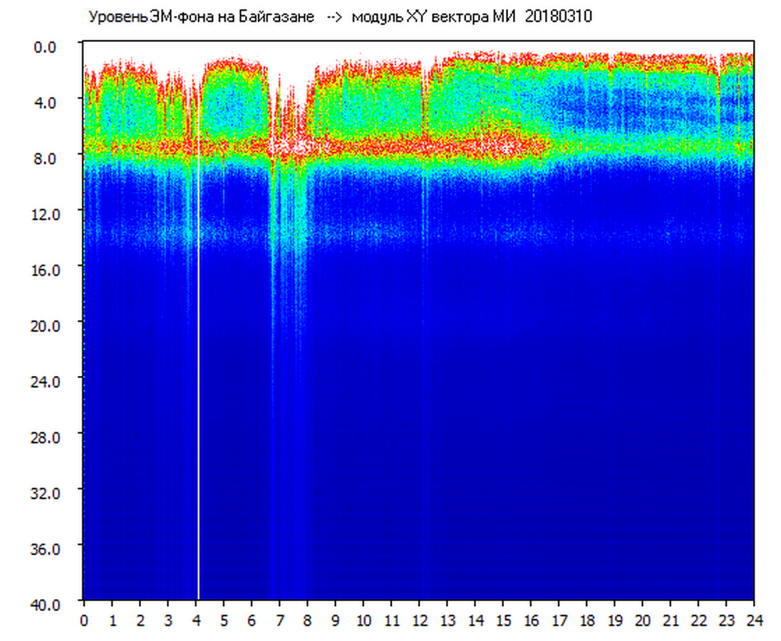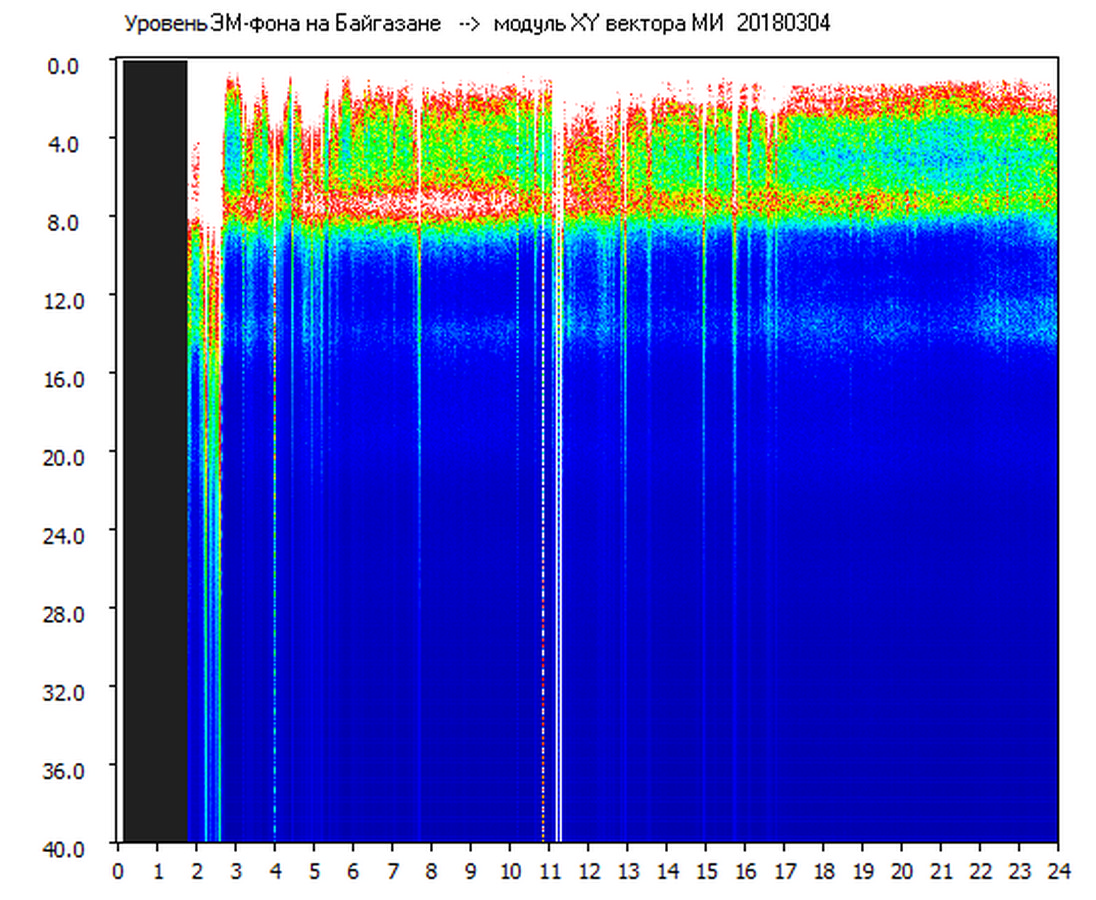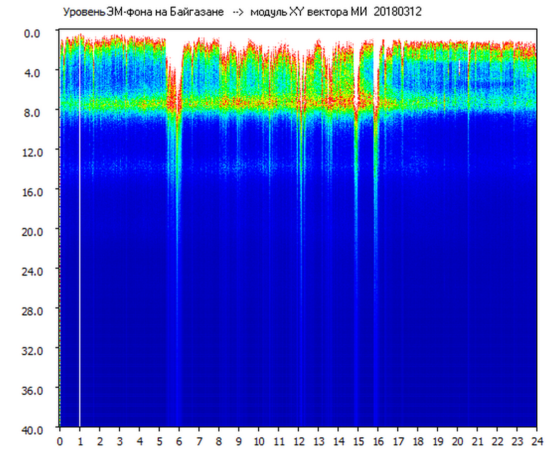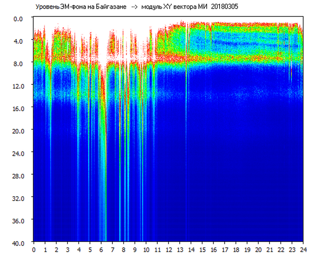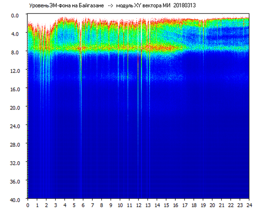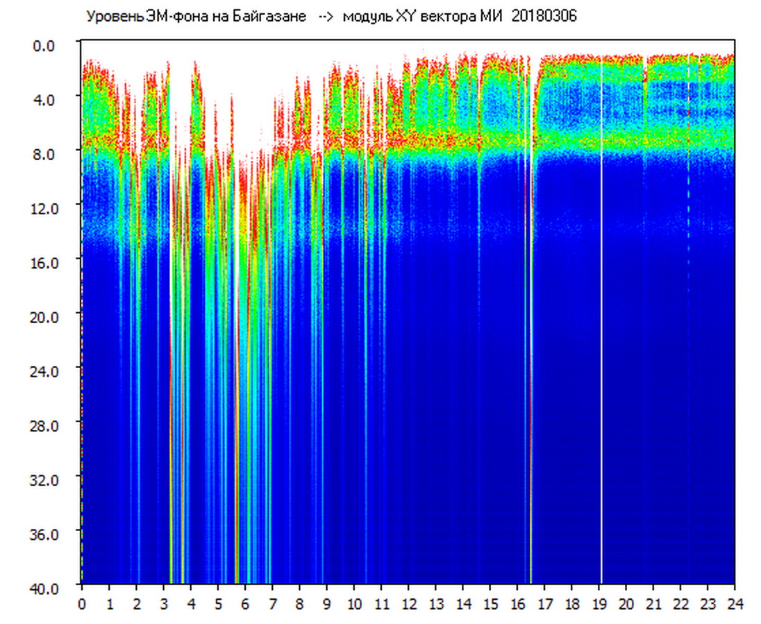 Динамические спектры электромагнитного фона в полосе частот 0 – 40 Гц (Шумановские резонансы)