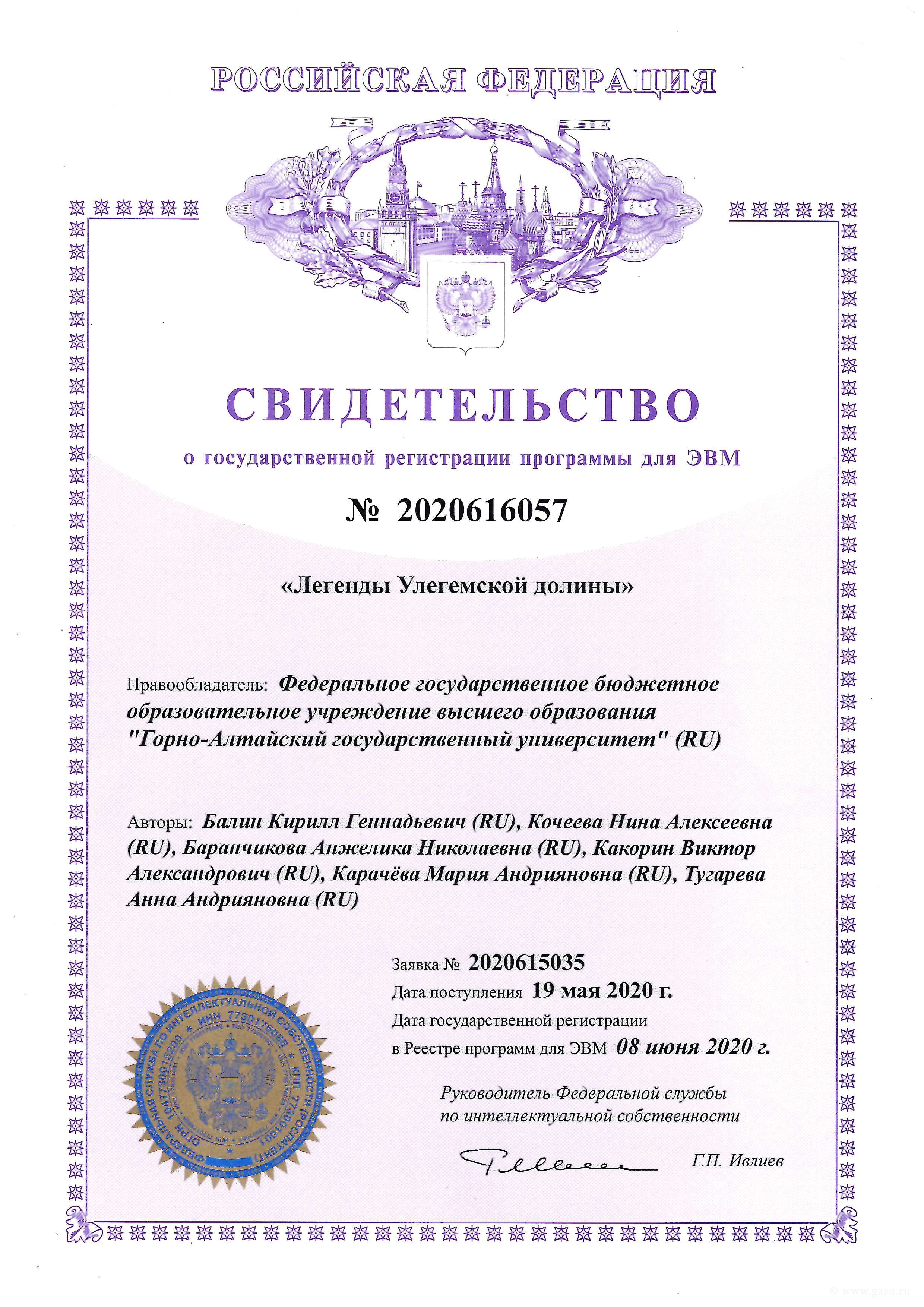 Госрегистрация программы для ЭВМ «Легенды Улегемской долины»...
