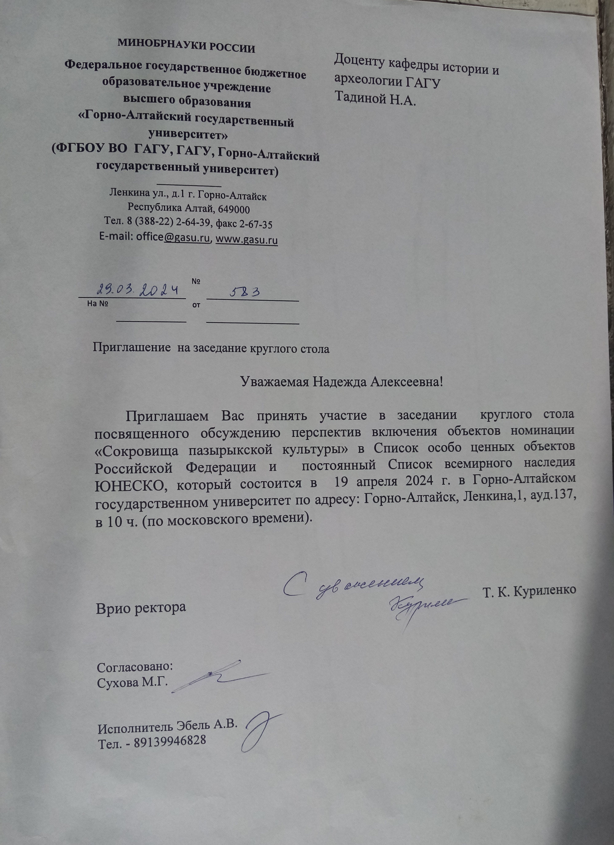 2024 г., 19 апреля, ГАГУ, круглый стол «Сокровища пазырыкско...